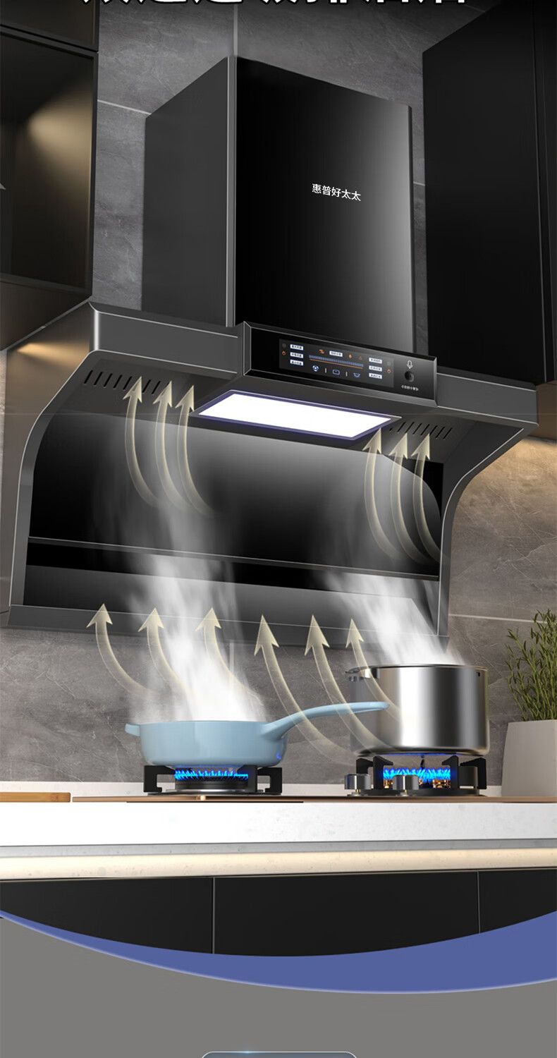 HP Good Mrs. range hood gas stove home kitchen range hood top side double-suction range hood 7-shaped range hood smoke stove set five-button body-sensing hood + Yuanyang timer stove | natural gas | free installation