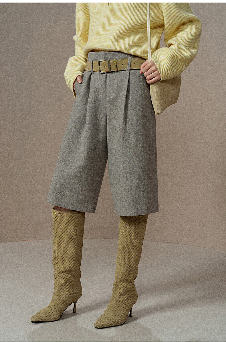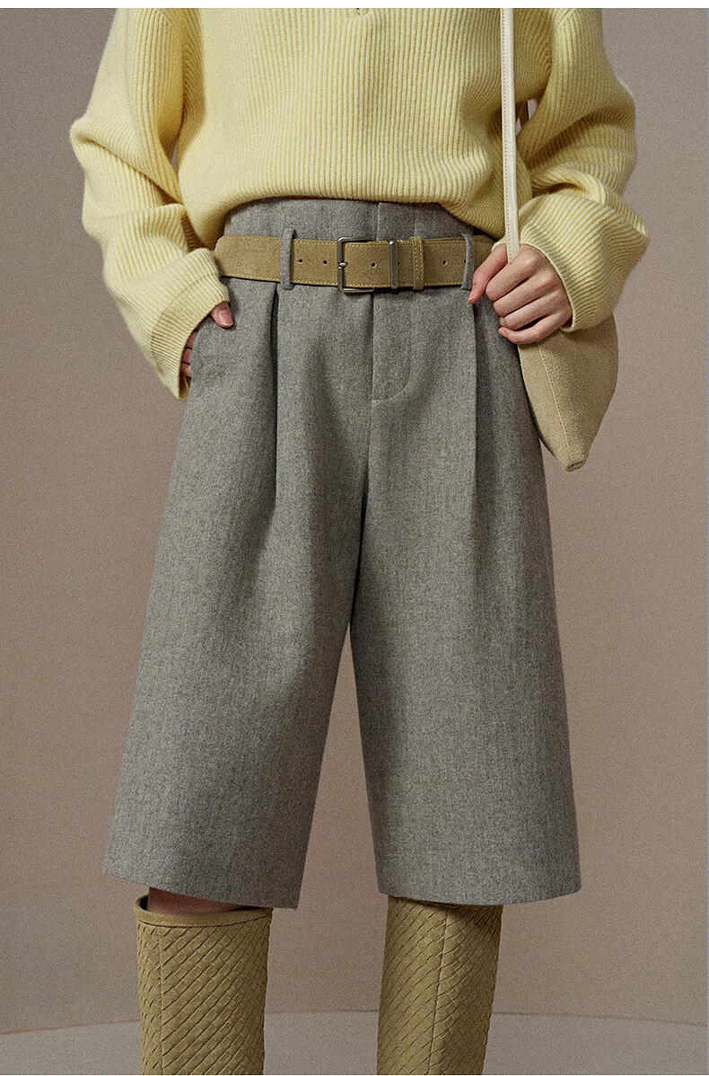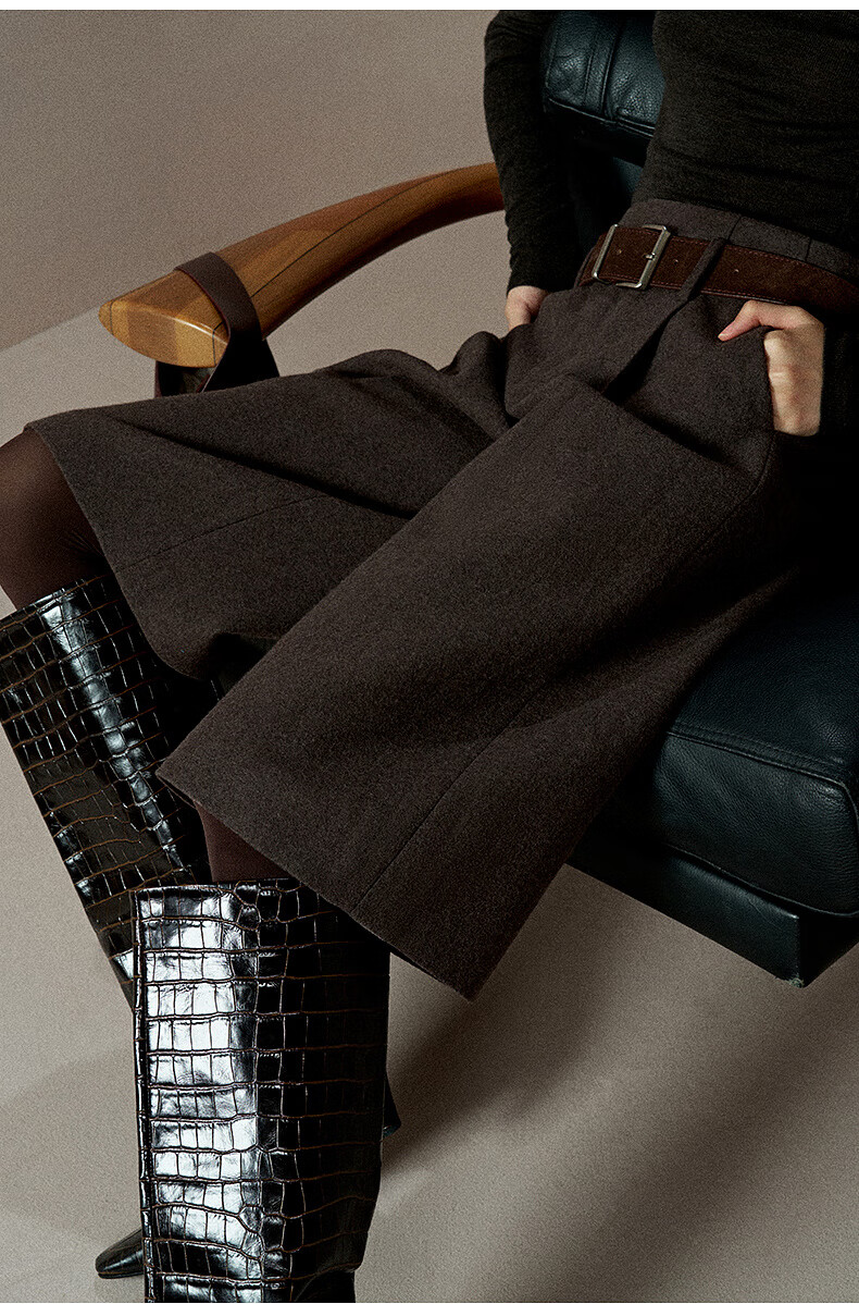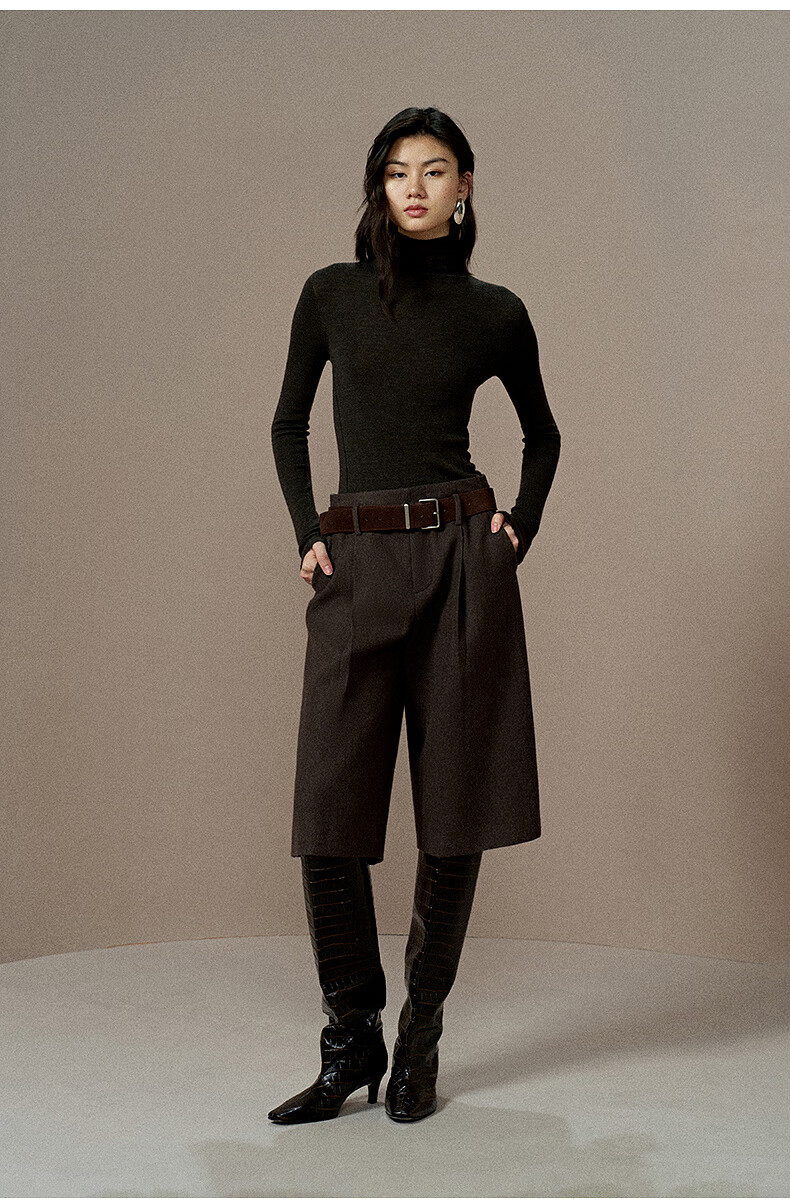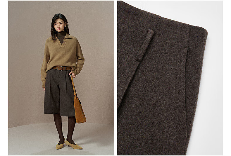 ZHIZHI Siguile all-wool six-point wide-leg shorts retro versatile 25 winter new model Nutshell Brown XS