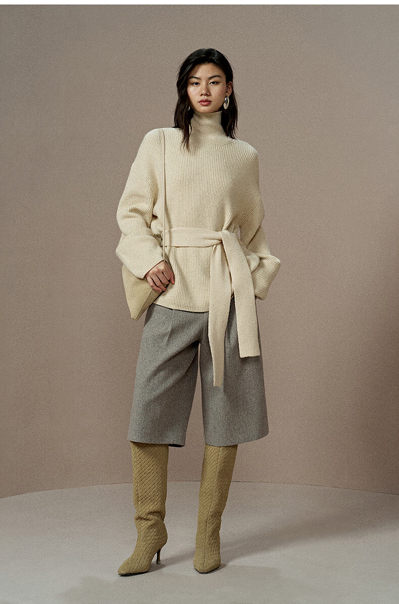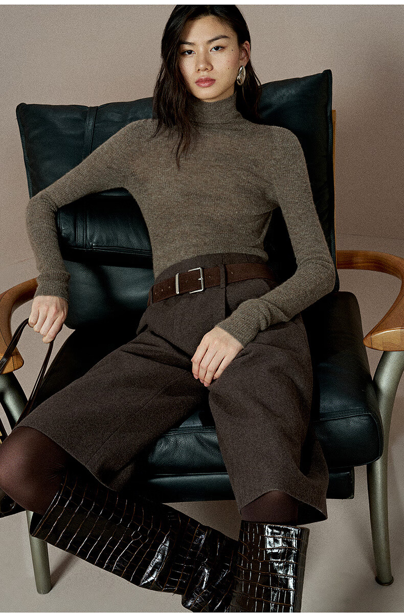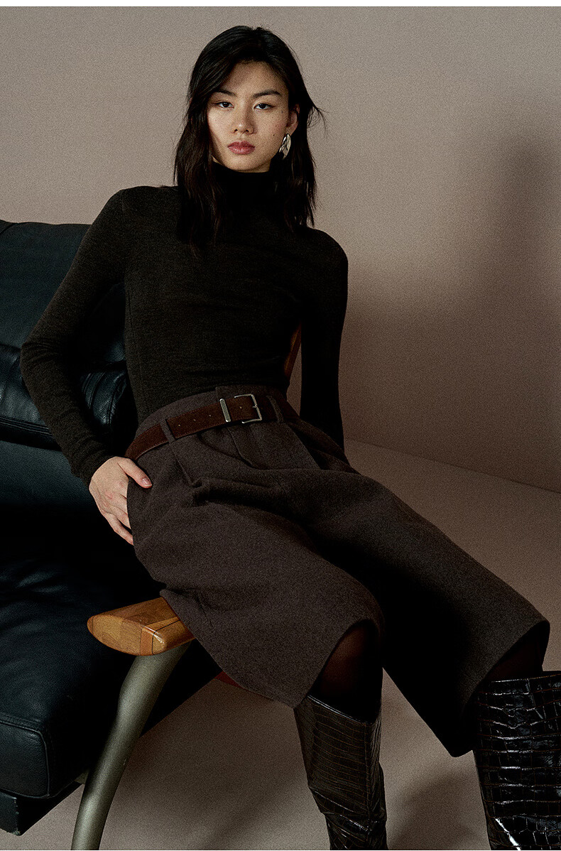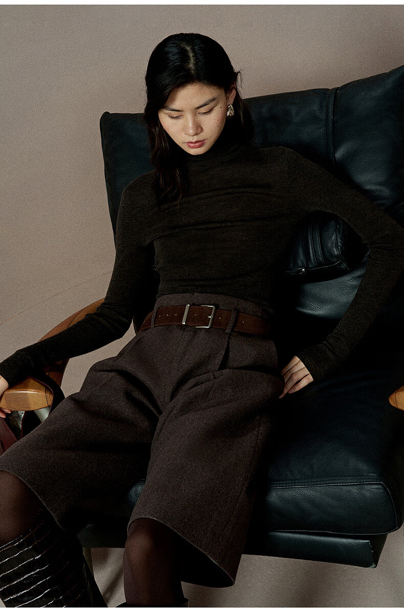 ZHIZHI Siguile all-wool six-point wide-leg shorts retro versatile 25 winter new model Nutshell Brown XS