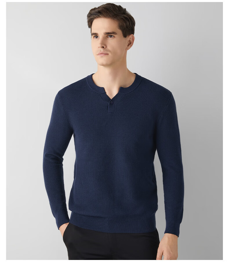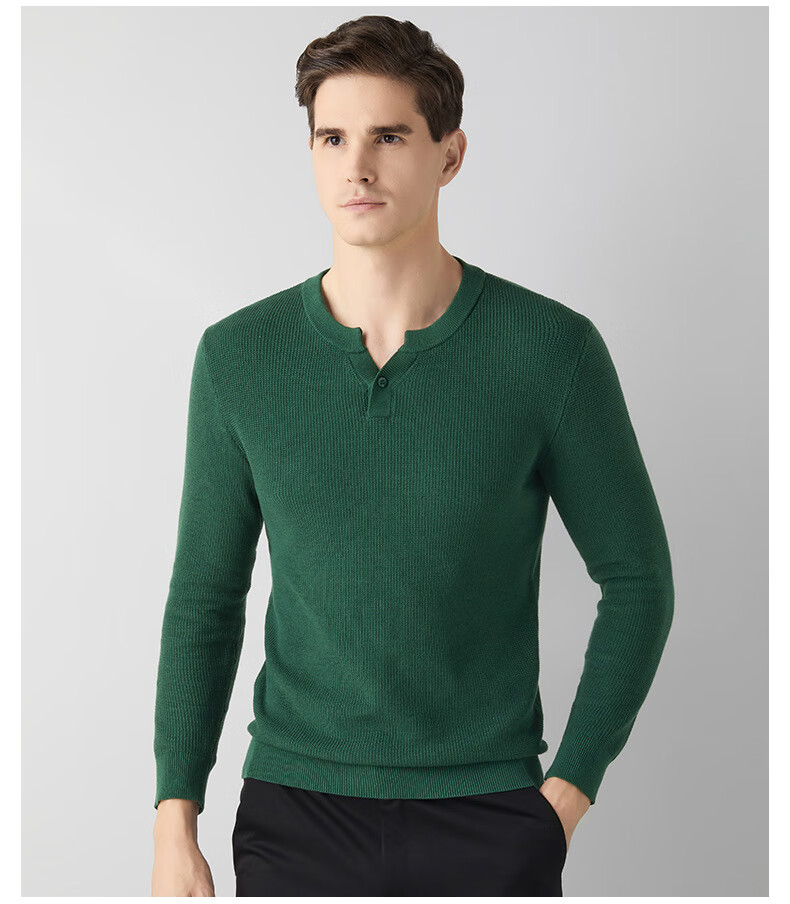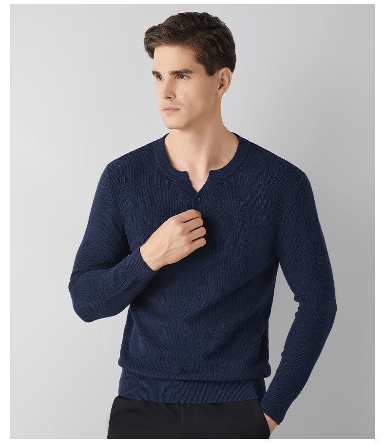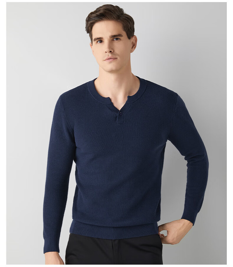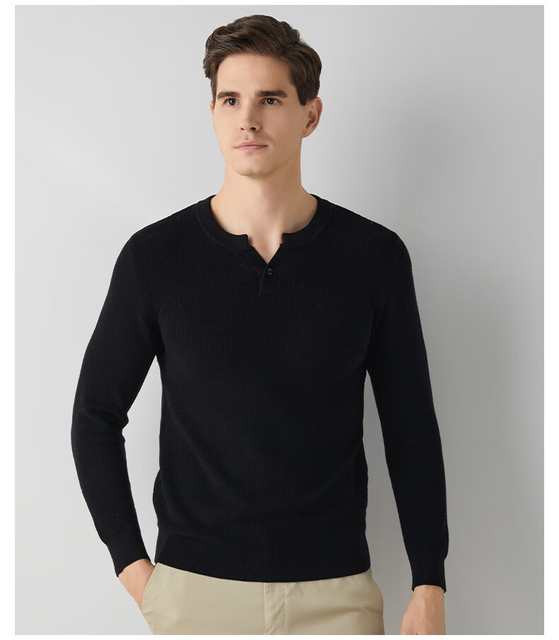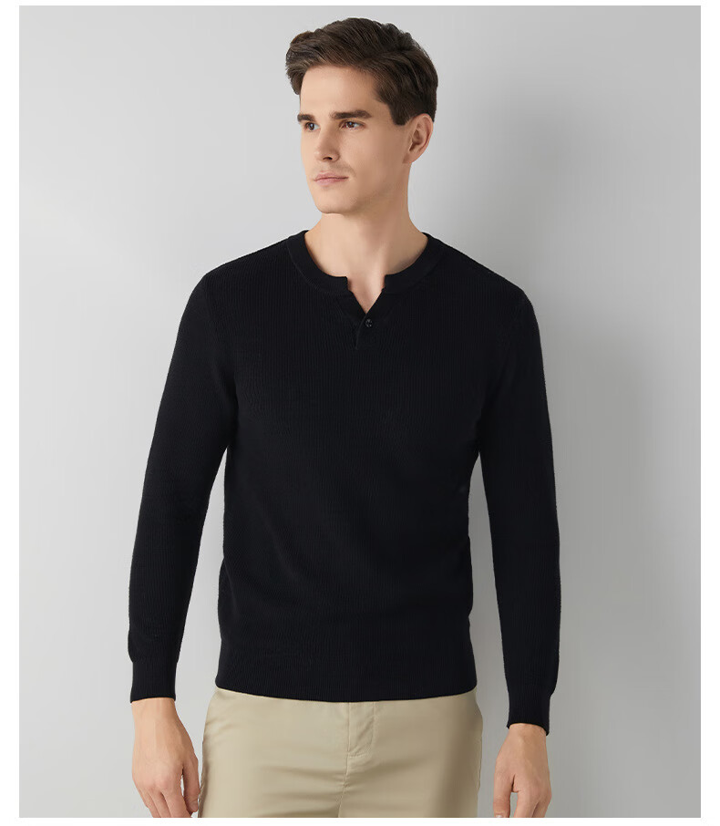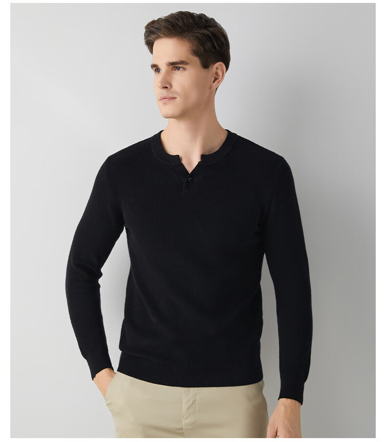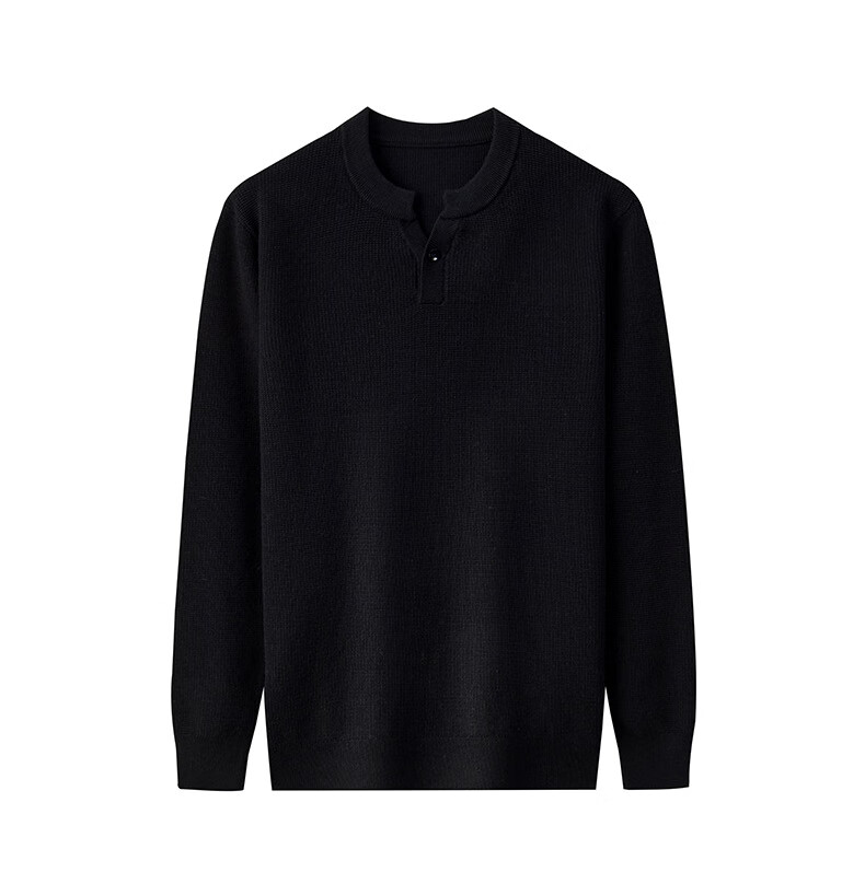 Western Camel (VANCAMEL) high-end pure cotton Henry collar men's sweater thickened autumn and winter new solid color anti-pilling pullover bottoming trendy long-sleeved black 4XL