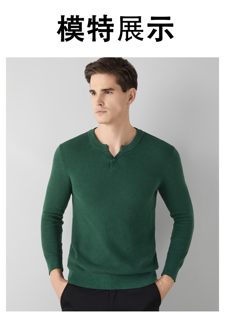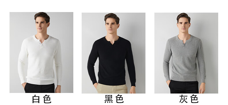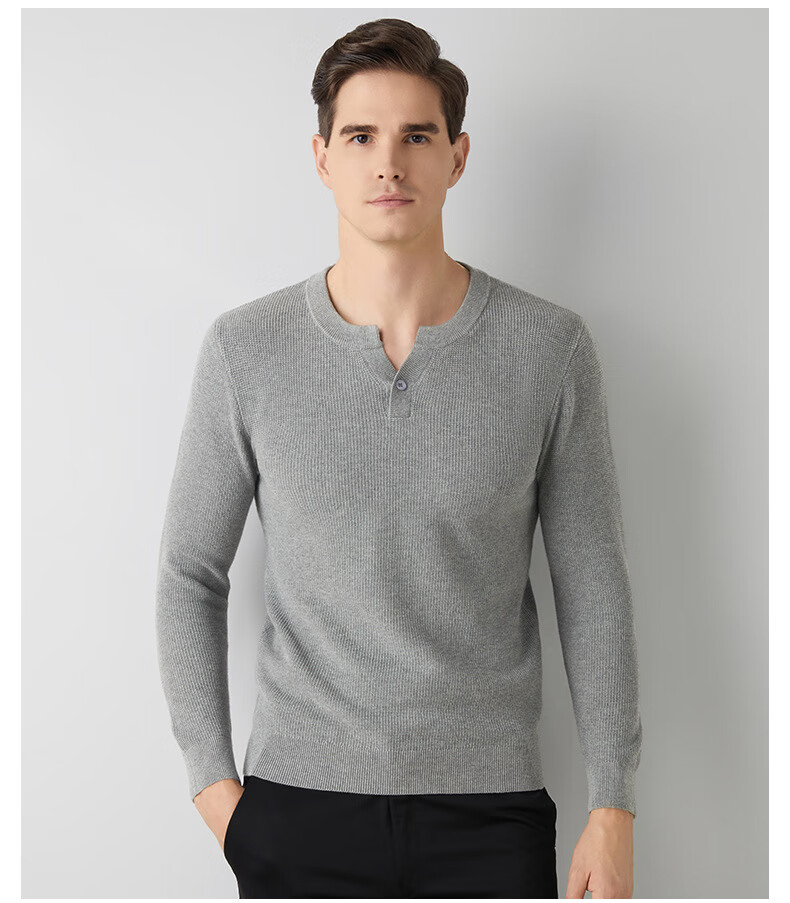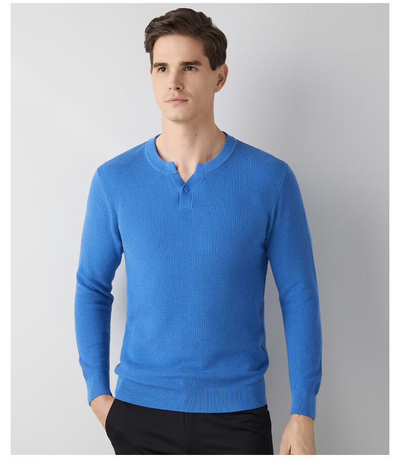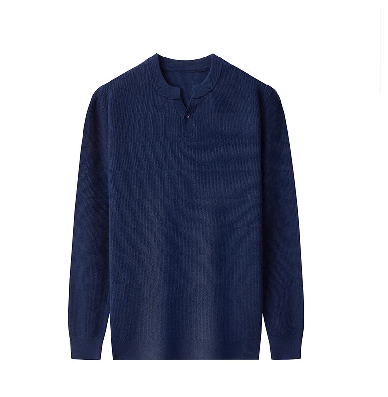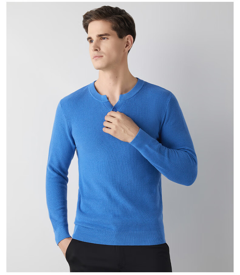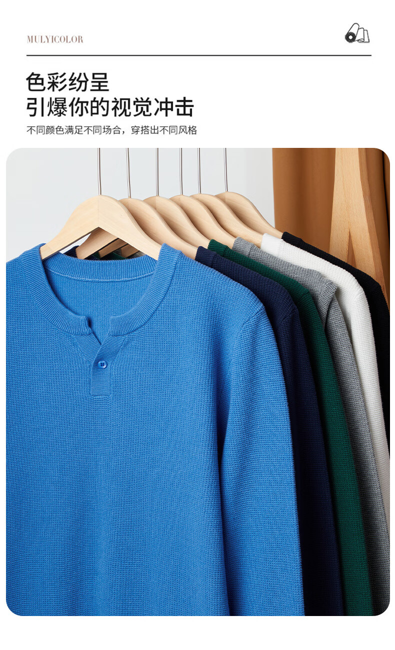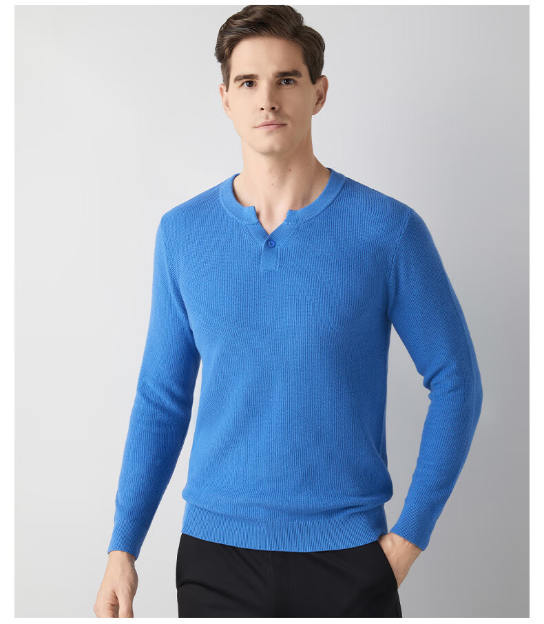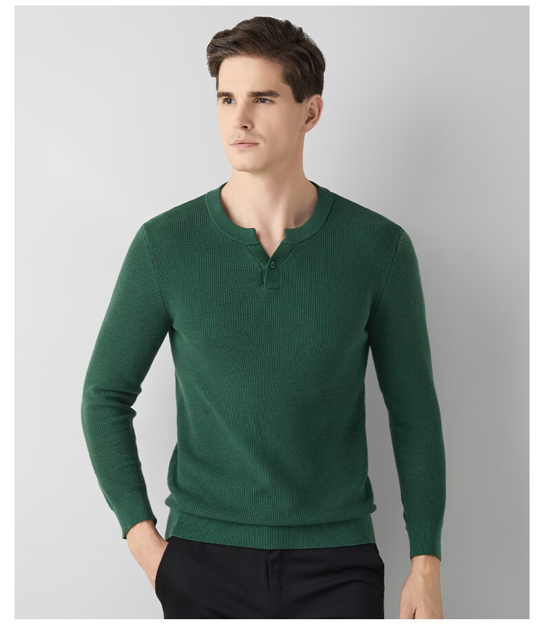 Western Camel (VANCAMEL) high-end pure cotton Henry collar men's sweater thickened autumn and winter new solid color anti-pilling pullover bottoming trendy long-sleeved black 4XL