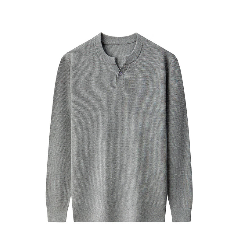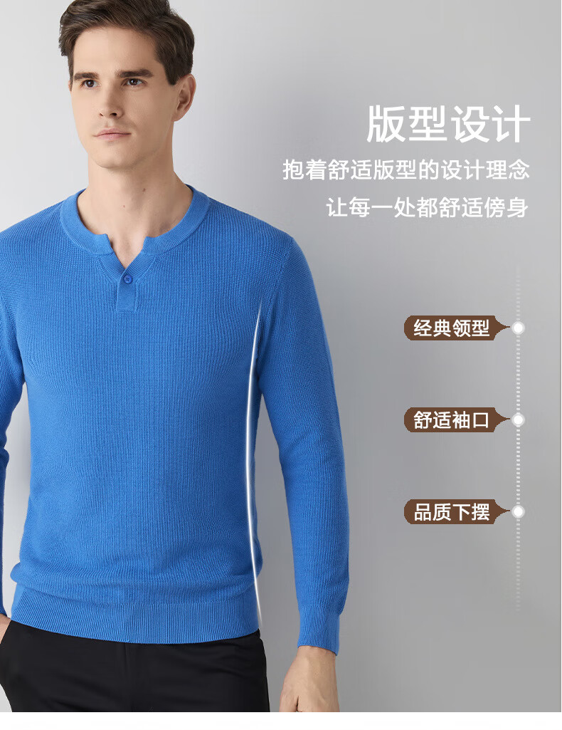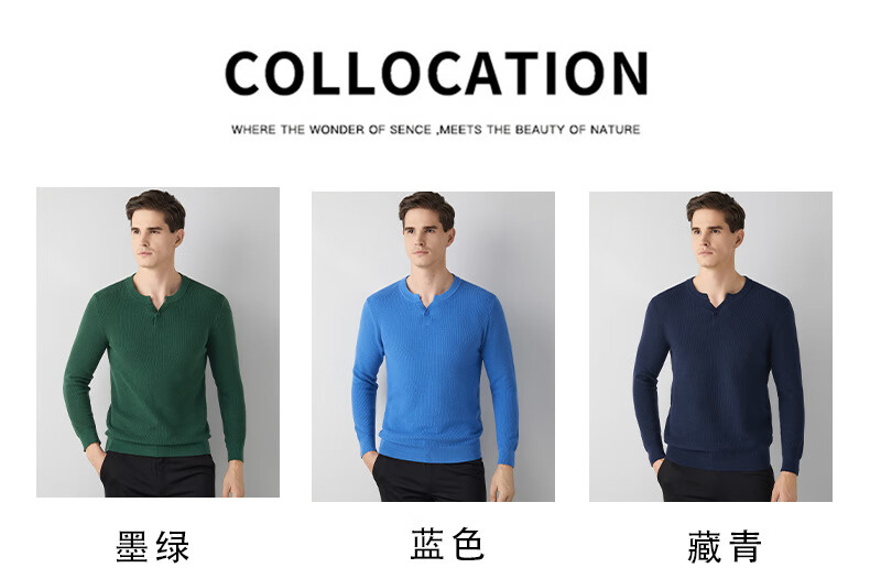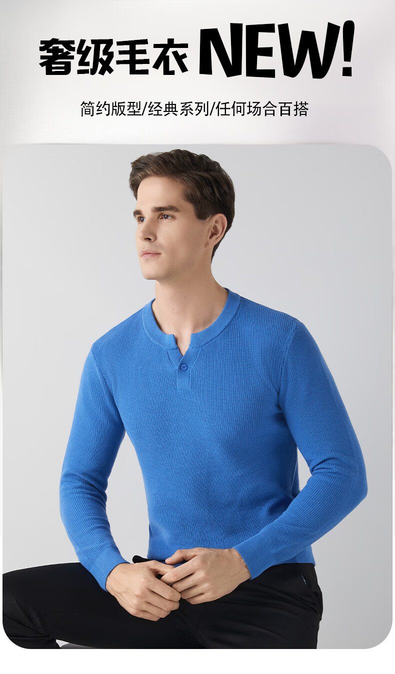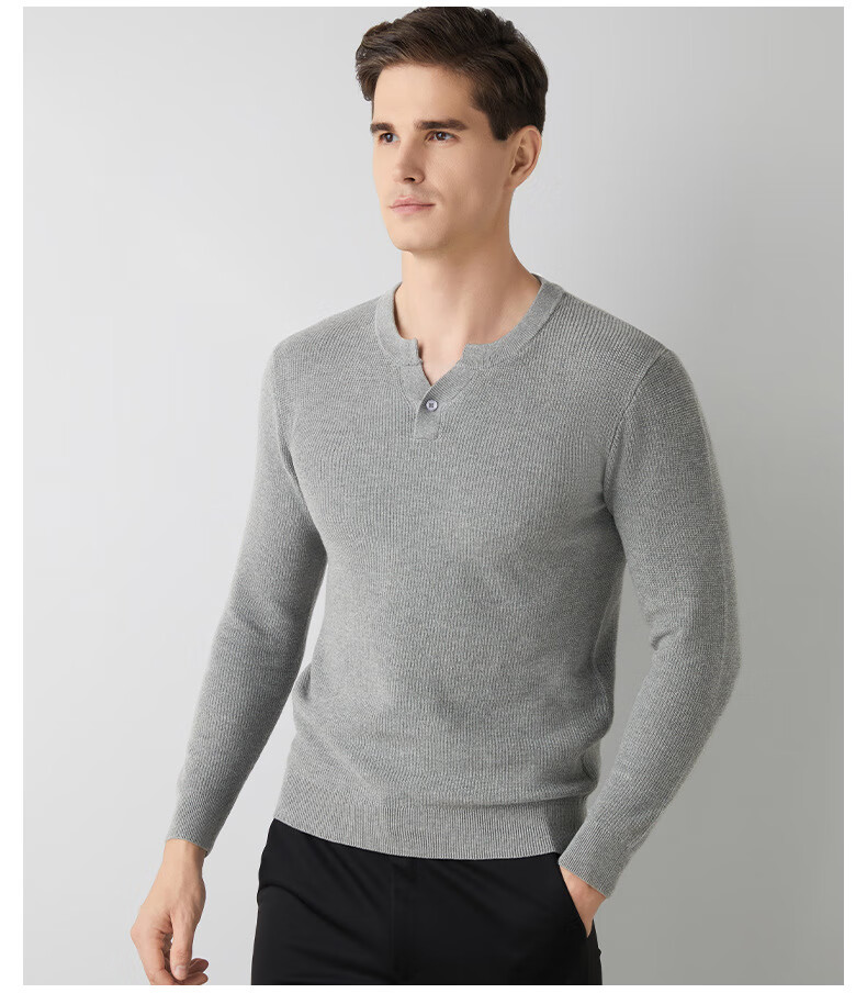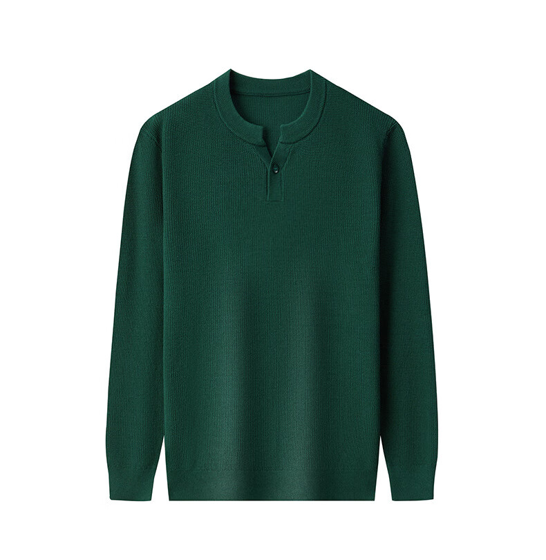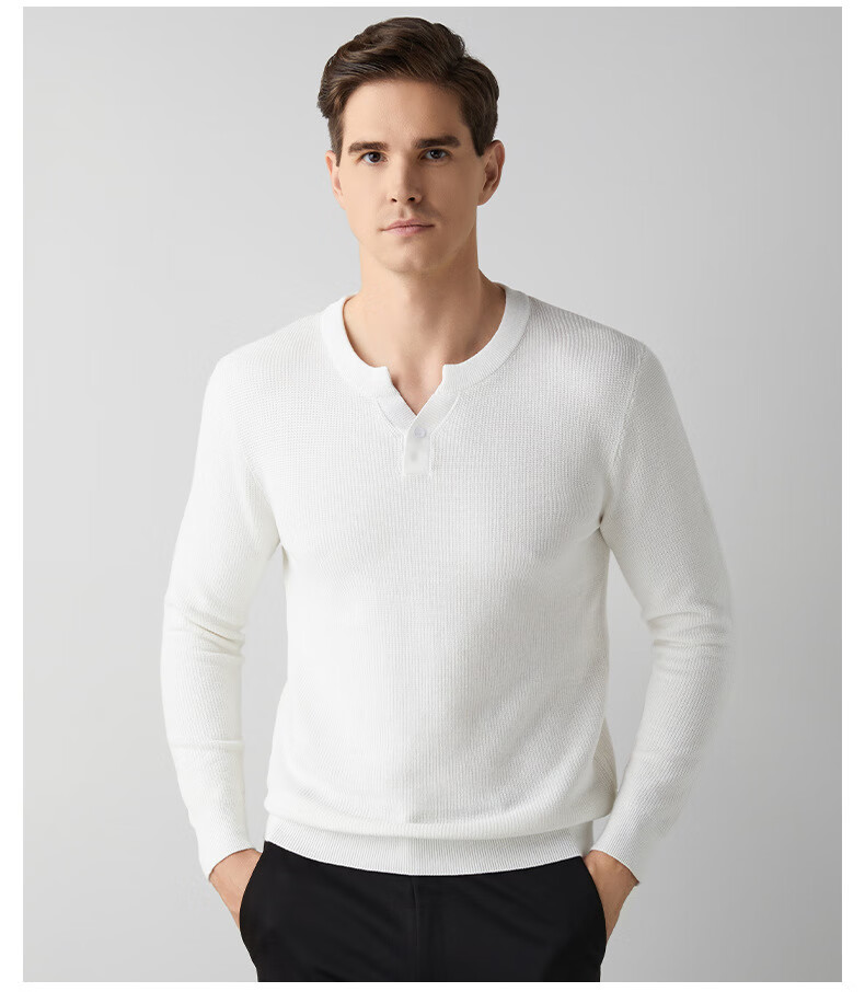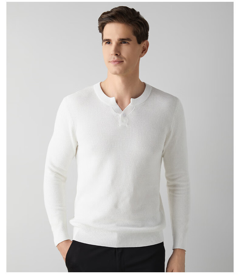 Western Camel (VANCAMEL) high-end pure cotton Henry collar men's sweater thickened autumn and winter new solid color anti-pilling pullover bottoming trendy long-sleeved black 4XL