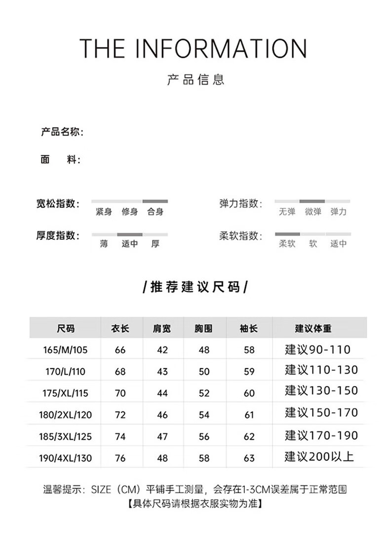 China (cm) 165 / 88-90 170 / 96-98 175 / 108-110 180 / 118-122 185 / 126-130