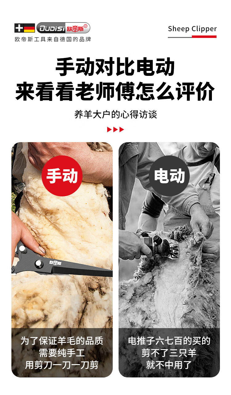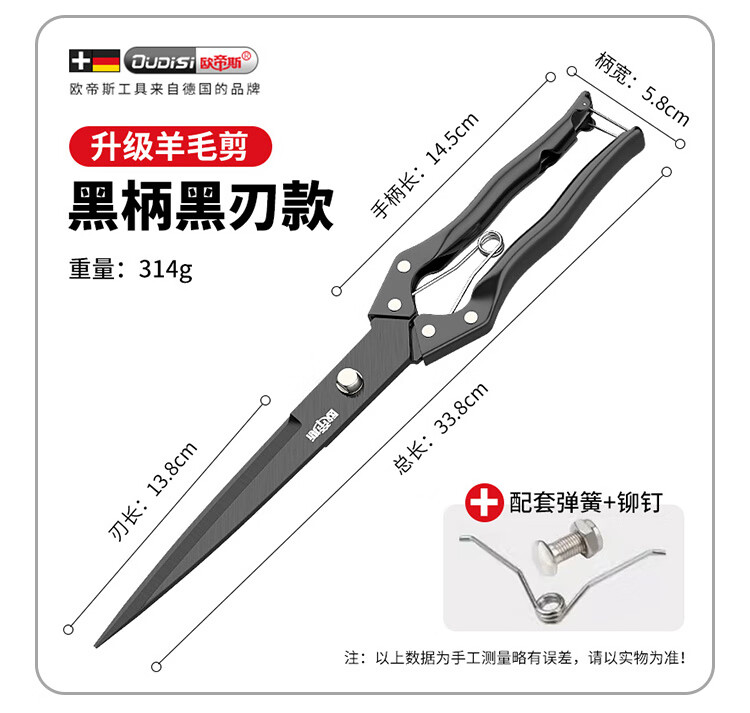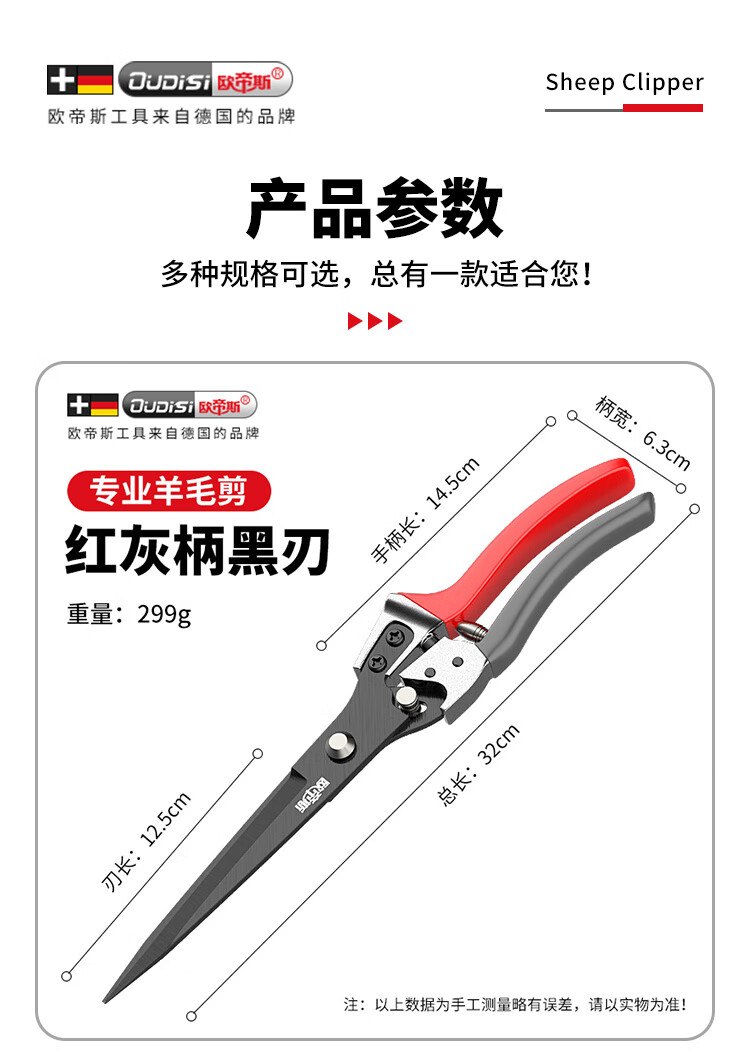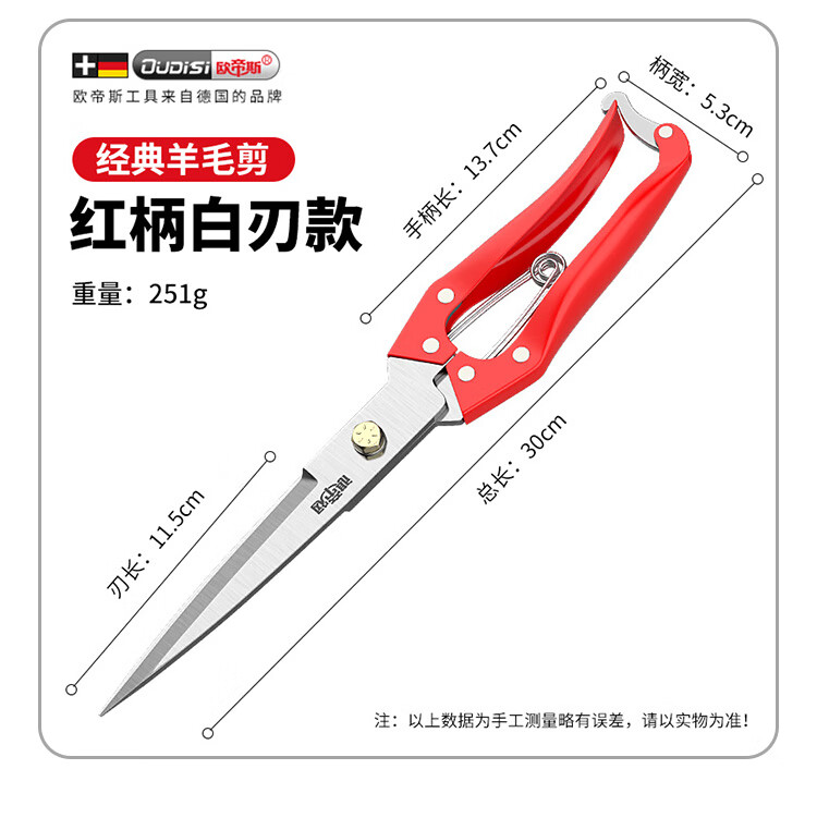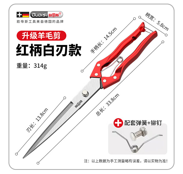 Otis wool scissors, household manual sheep shearing shears, rabbit and dog hair shears, large household hair trimmer, large red handle (total length 340mm)