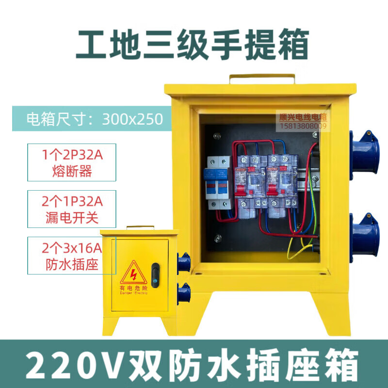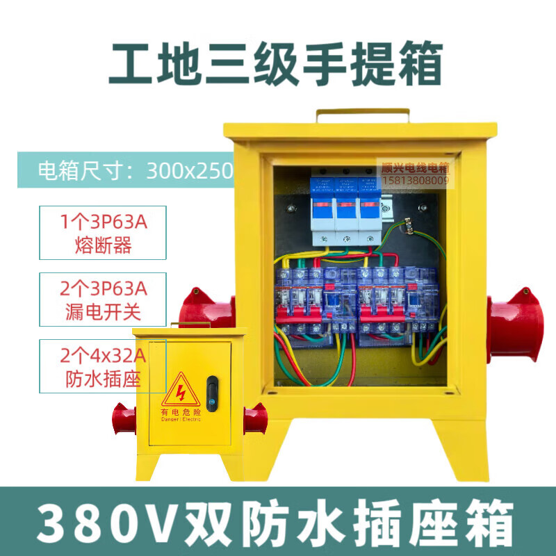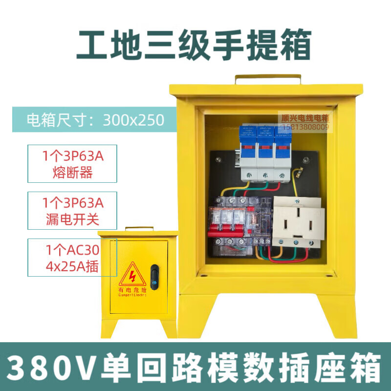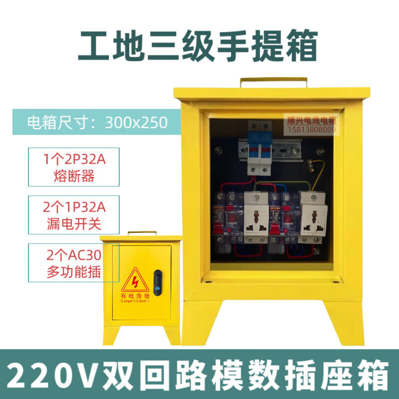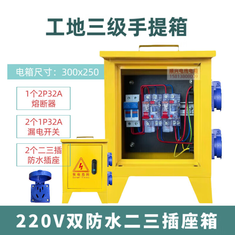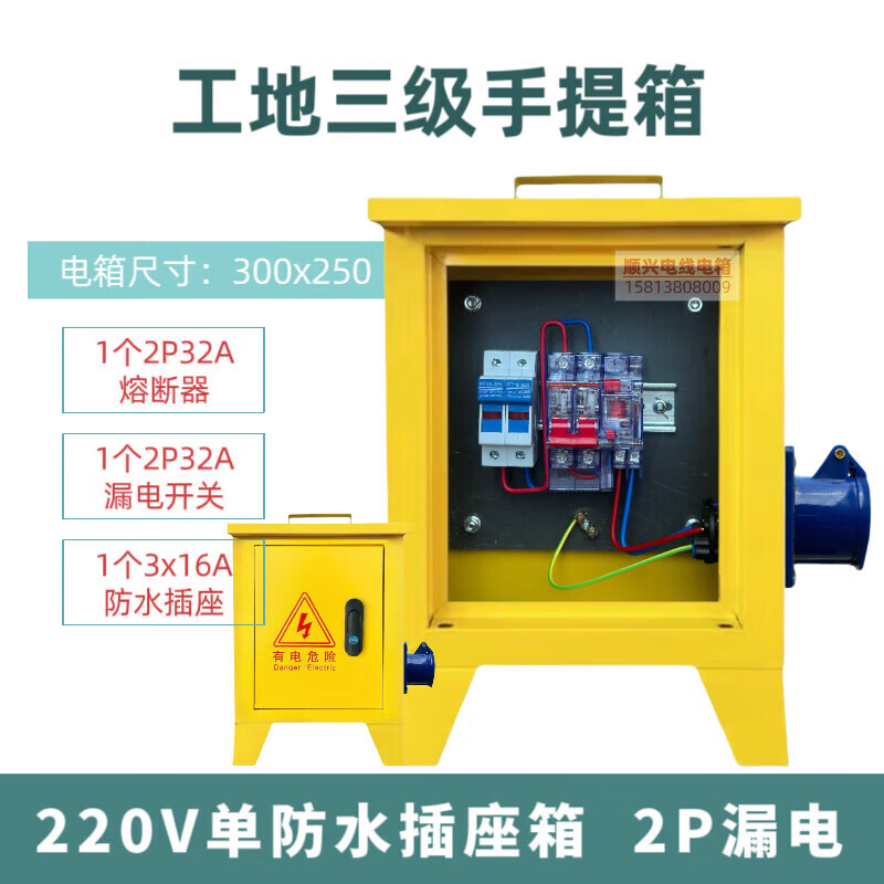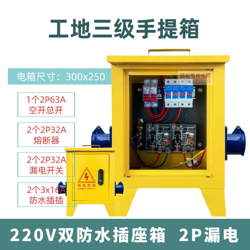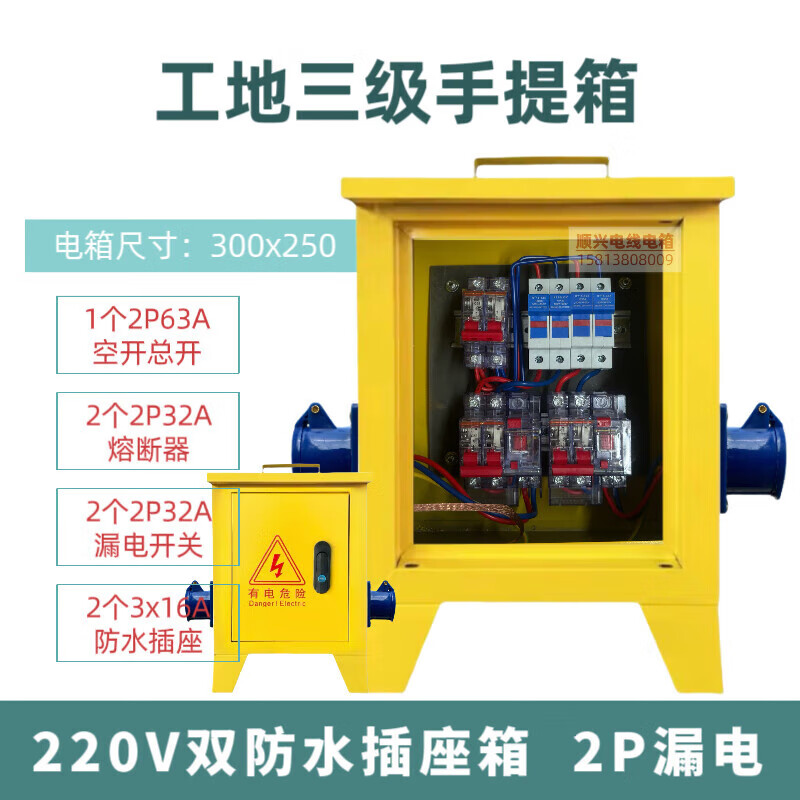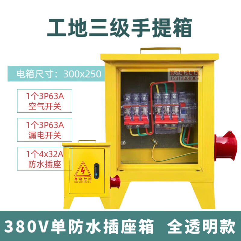 Construction site three-level electrical box suitcase 220v380v building decoration construction temporary distribution box one machine and one gate 1220v single waterproof socket box