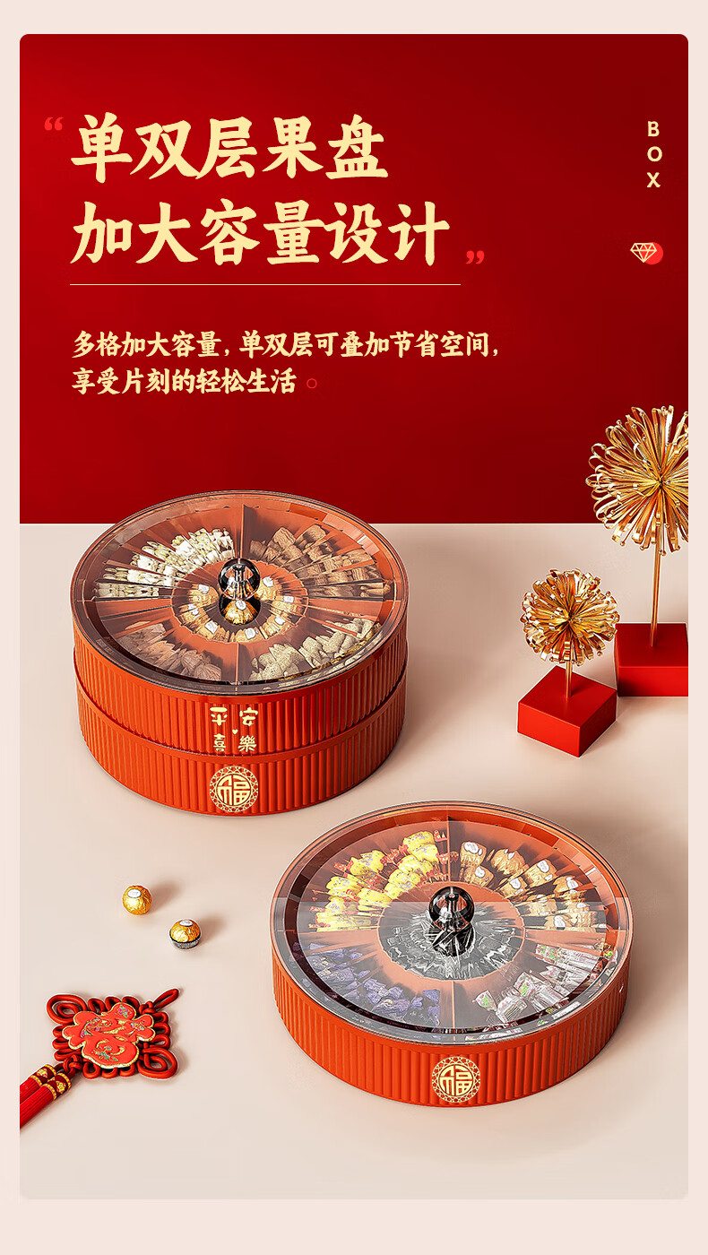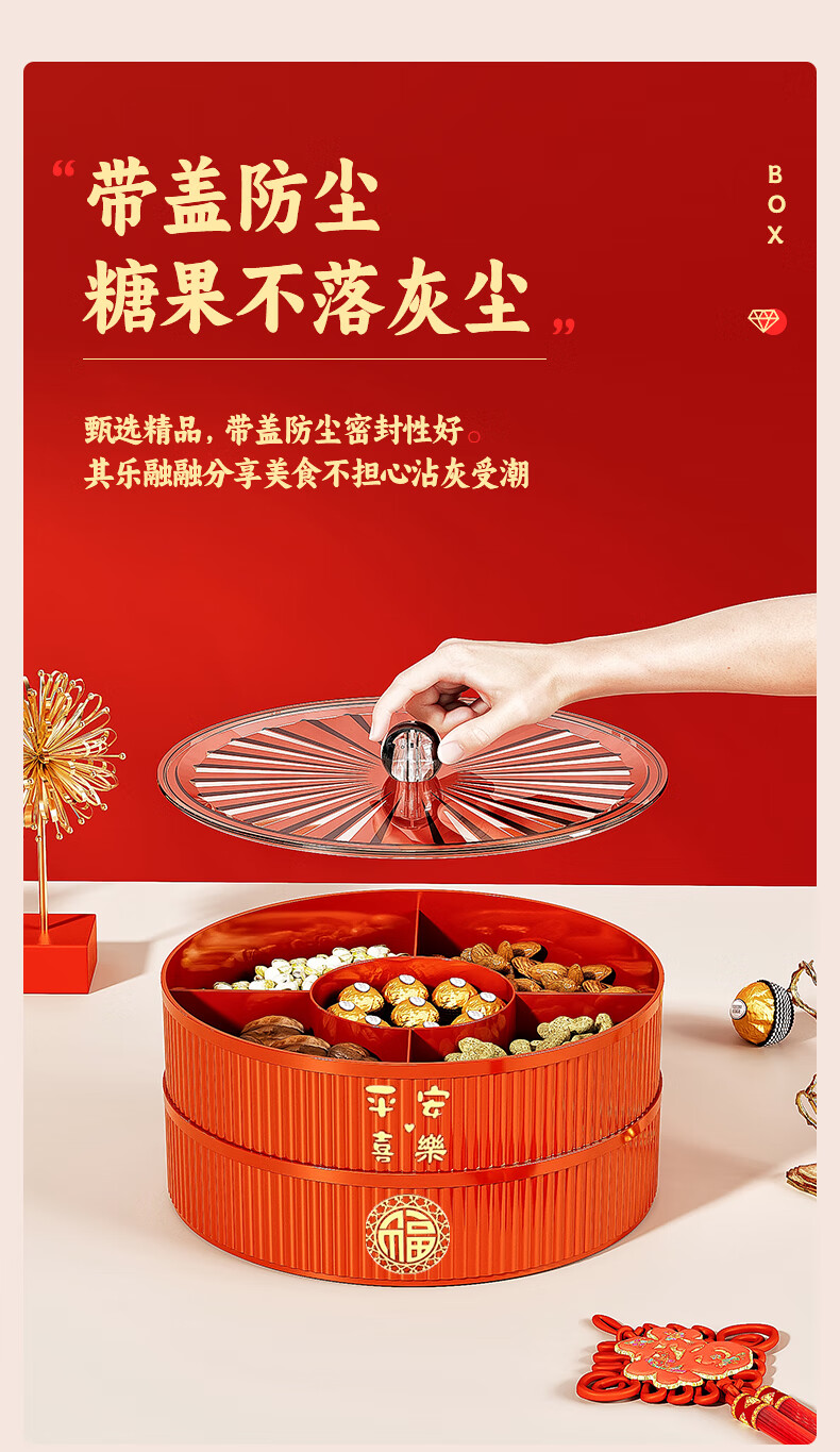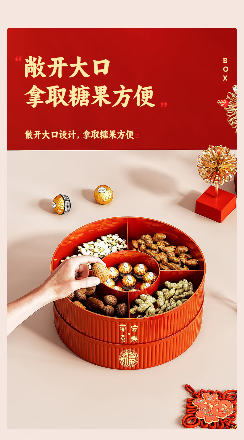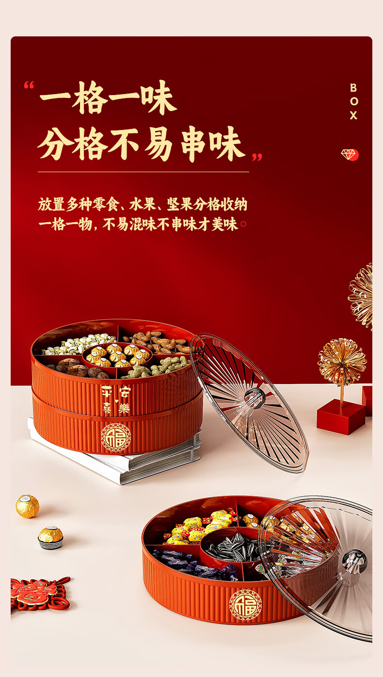 Fruit plate Chinese New Year wedding home candy box living room coffee table dried fruit snack plate high-end melon seeds peanut box Chinese red one-story candy box