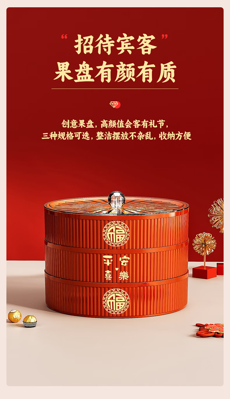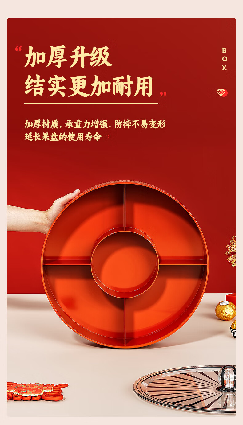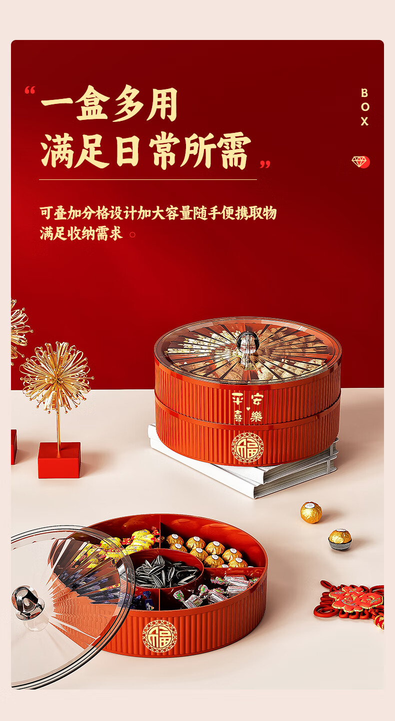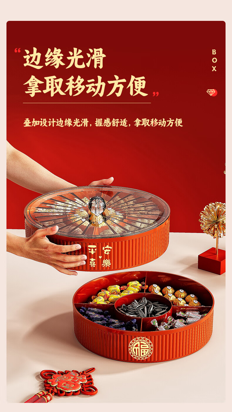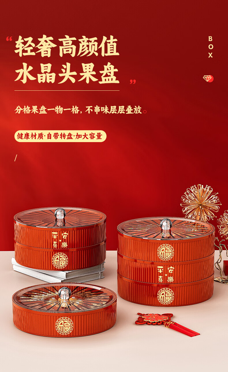 Fruit plate Chinese New Year wedding home candy box living room coffee table dried fruit snack plate high-end melon seeds peanut box Chinese red one-story candy box