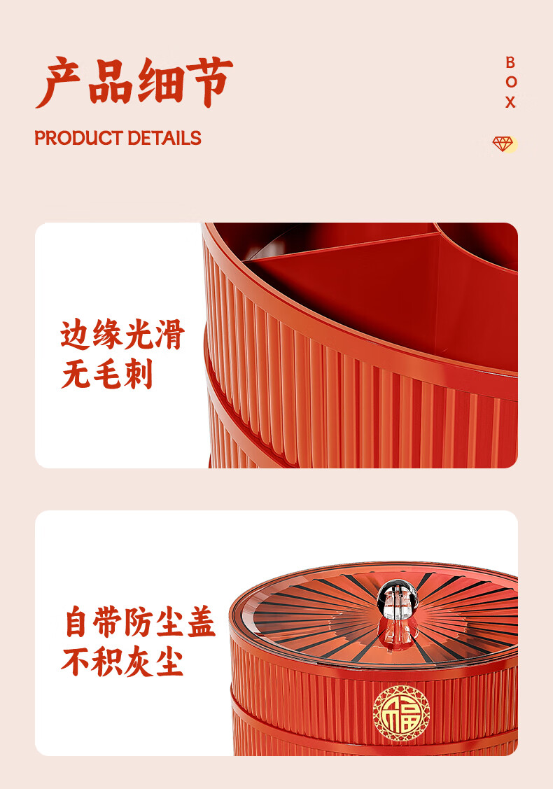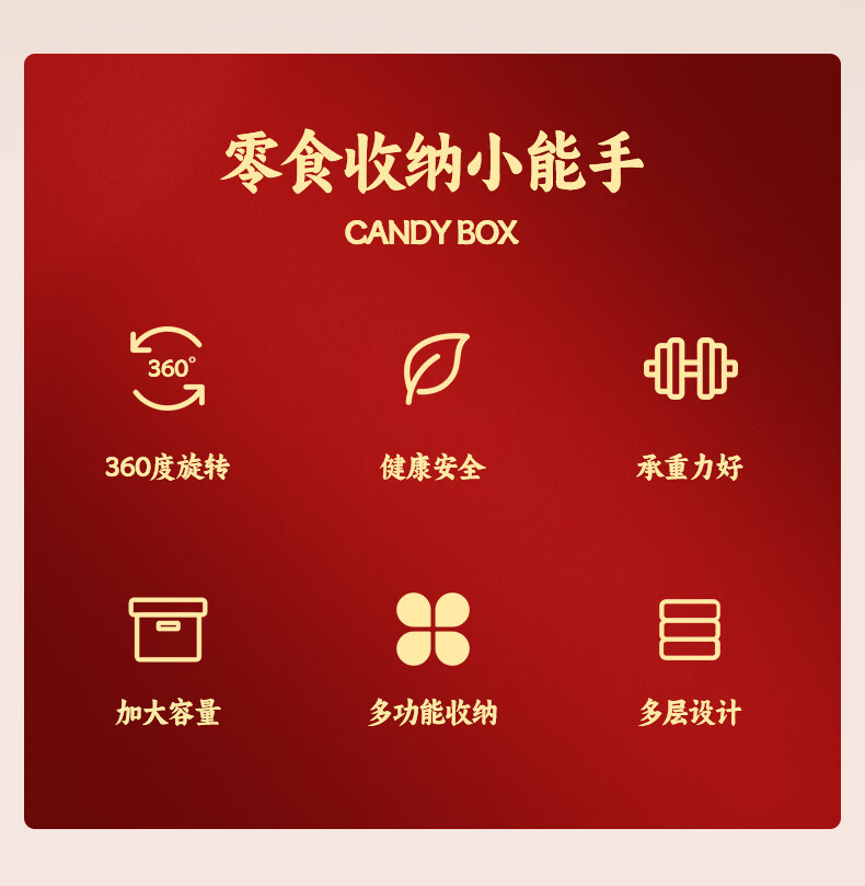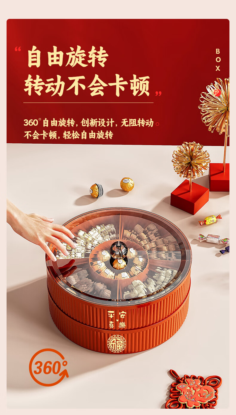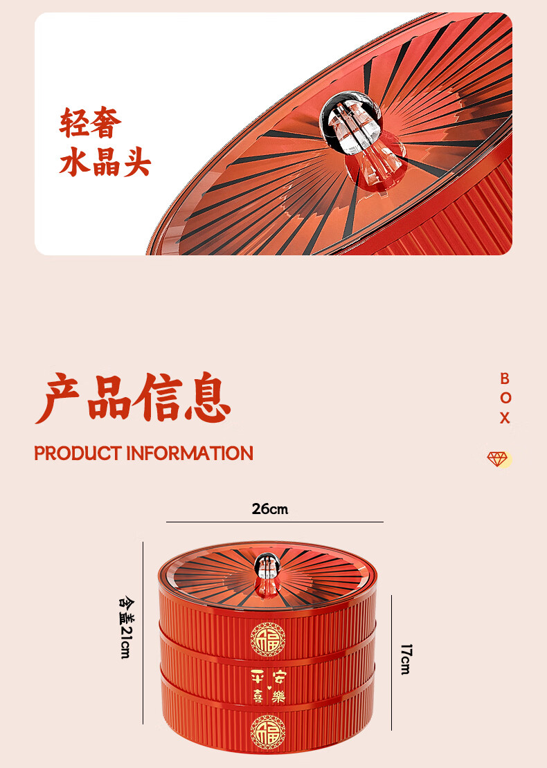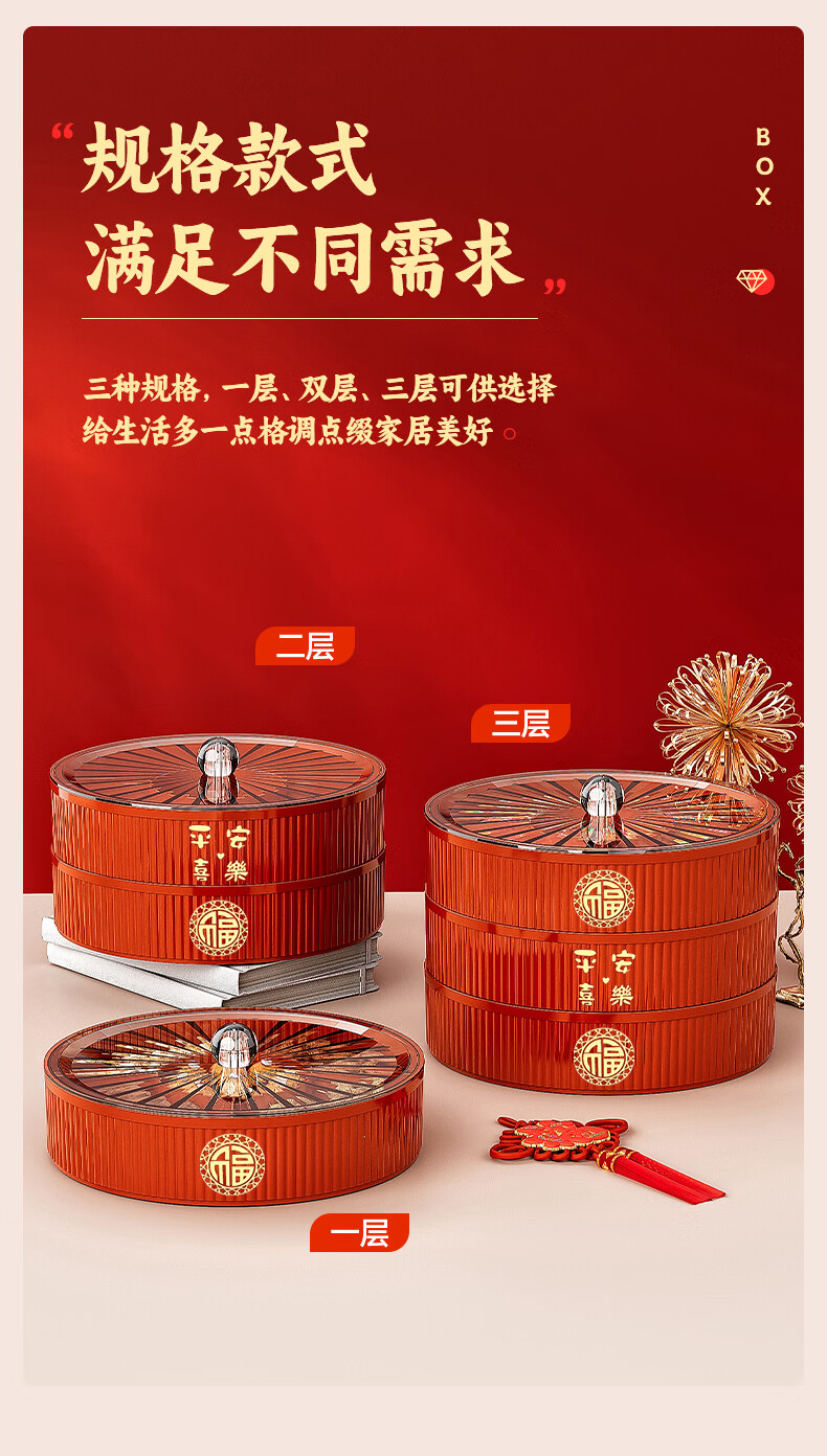 Fruit plate Chinese New Year wedding home candy box living room coffee table dried fruit snack plate high-end melon seeds peanut box Chinese red one-story candy box