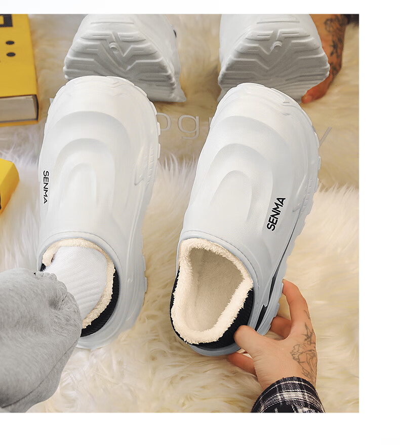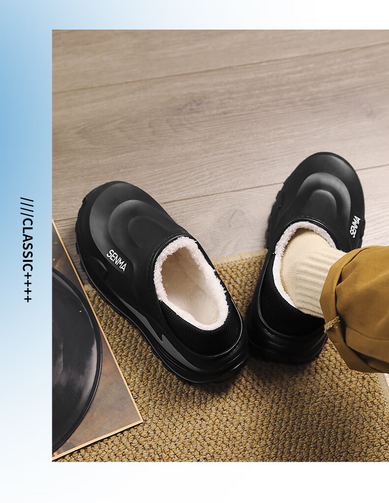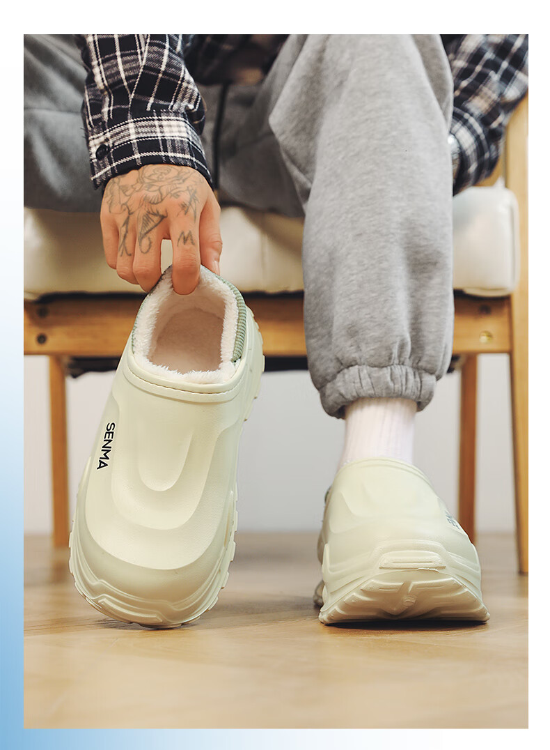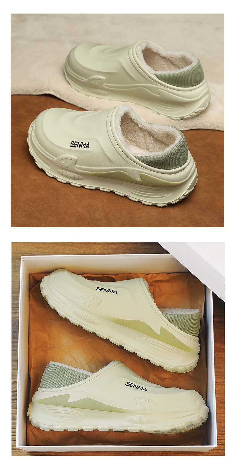 Semir children's cotton slippers winter boys outer wear waterproof soft sole non-slip parent-child home indoor warm cotton shoes for middle and large children rice olive green basic model 35