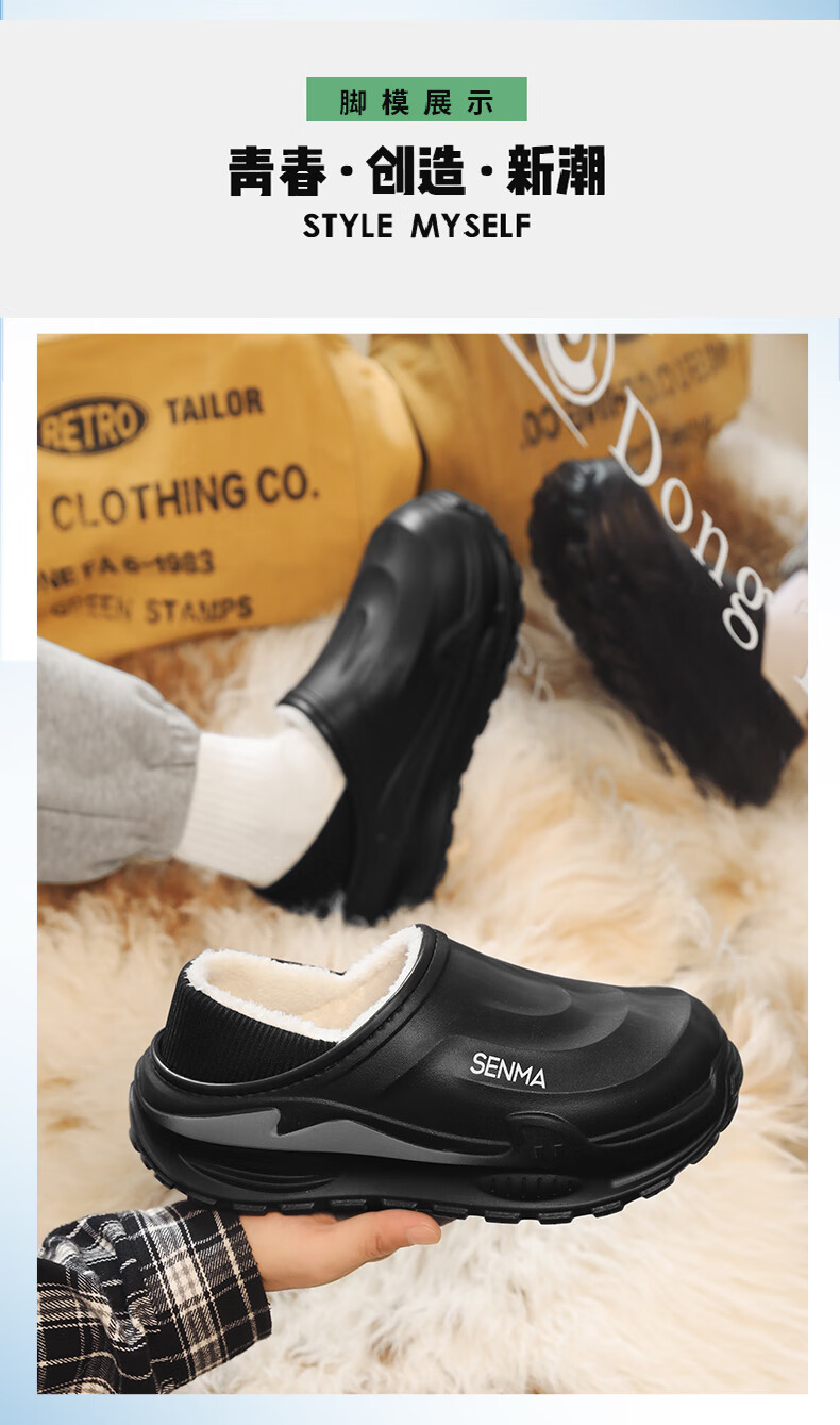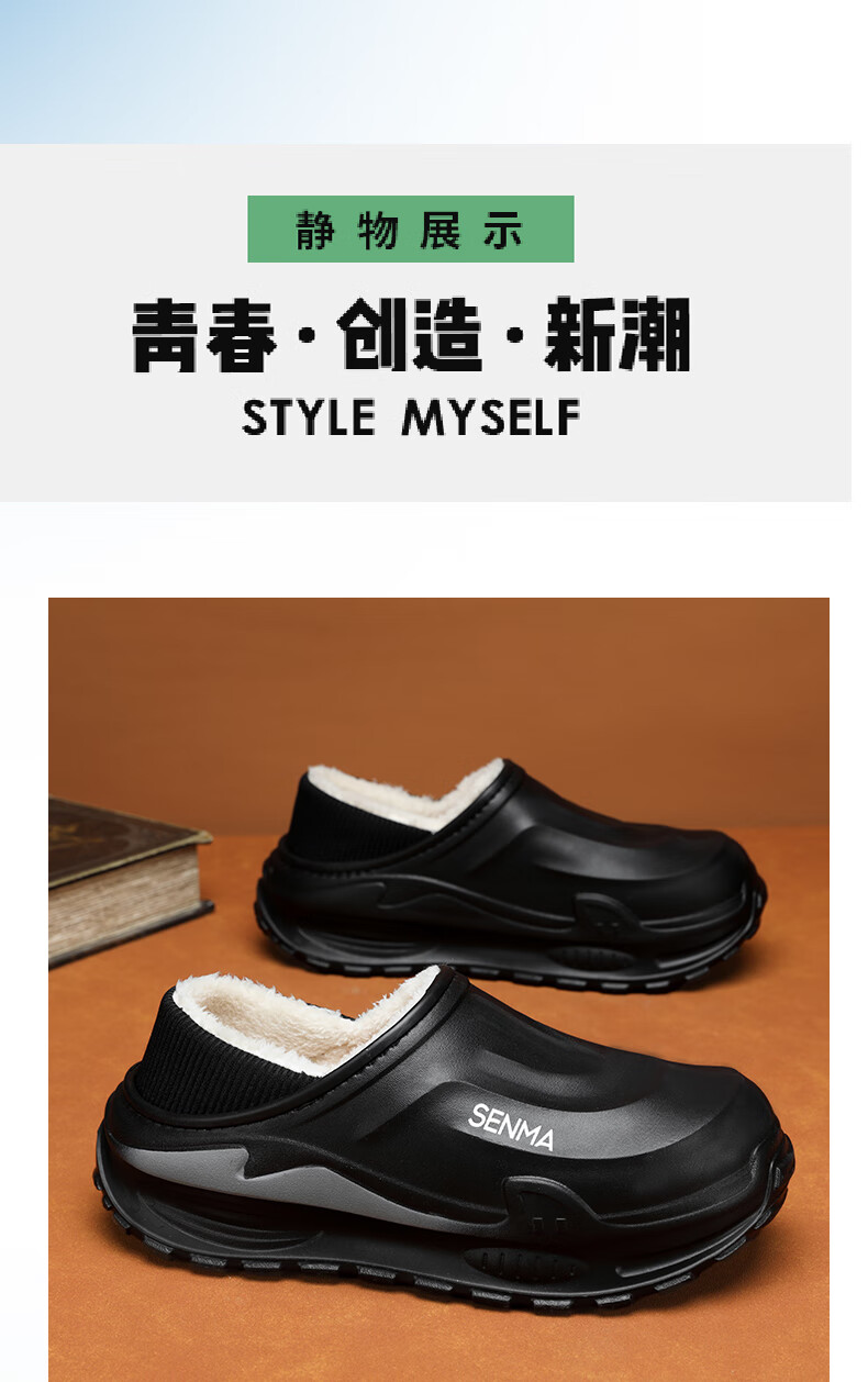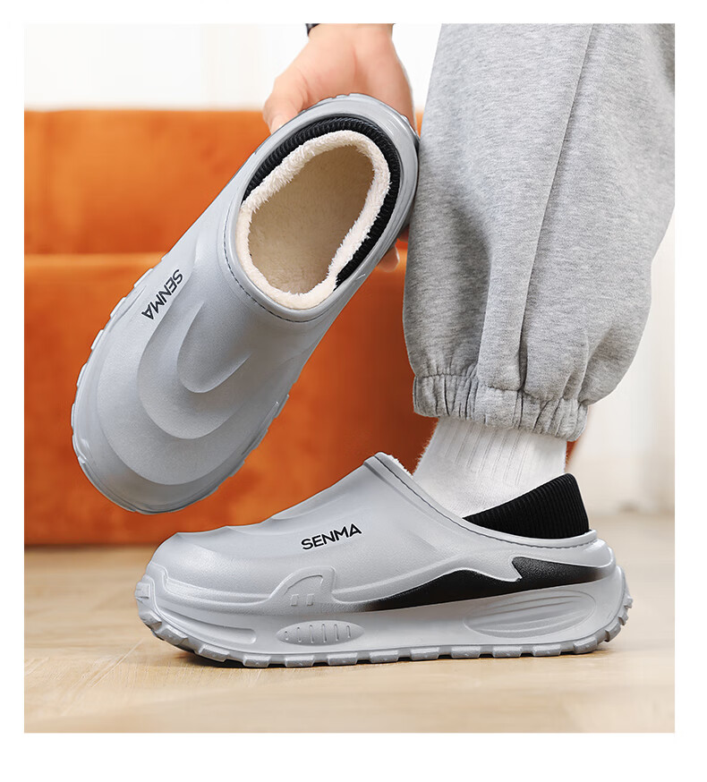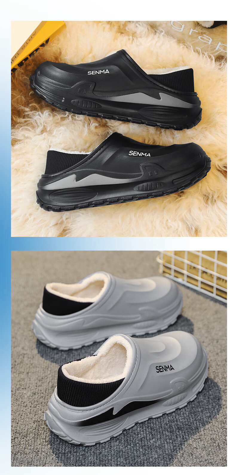 Semir children's cotton slippers winter boys outer wear waterproof soft sole non-slip parent-child home indoor warm cotton shoes for middle and large children rice olive green basic model 35