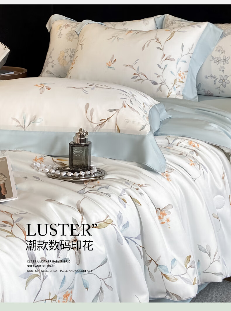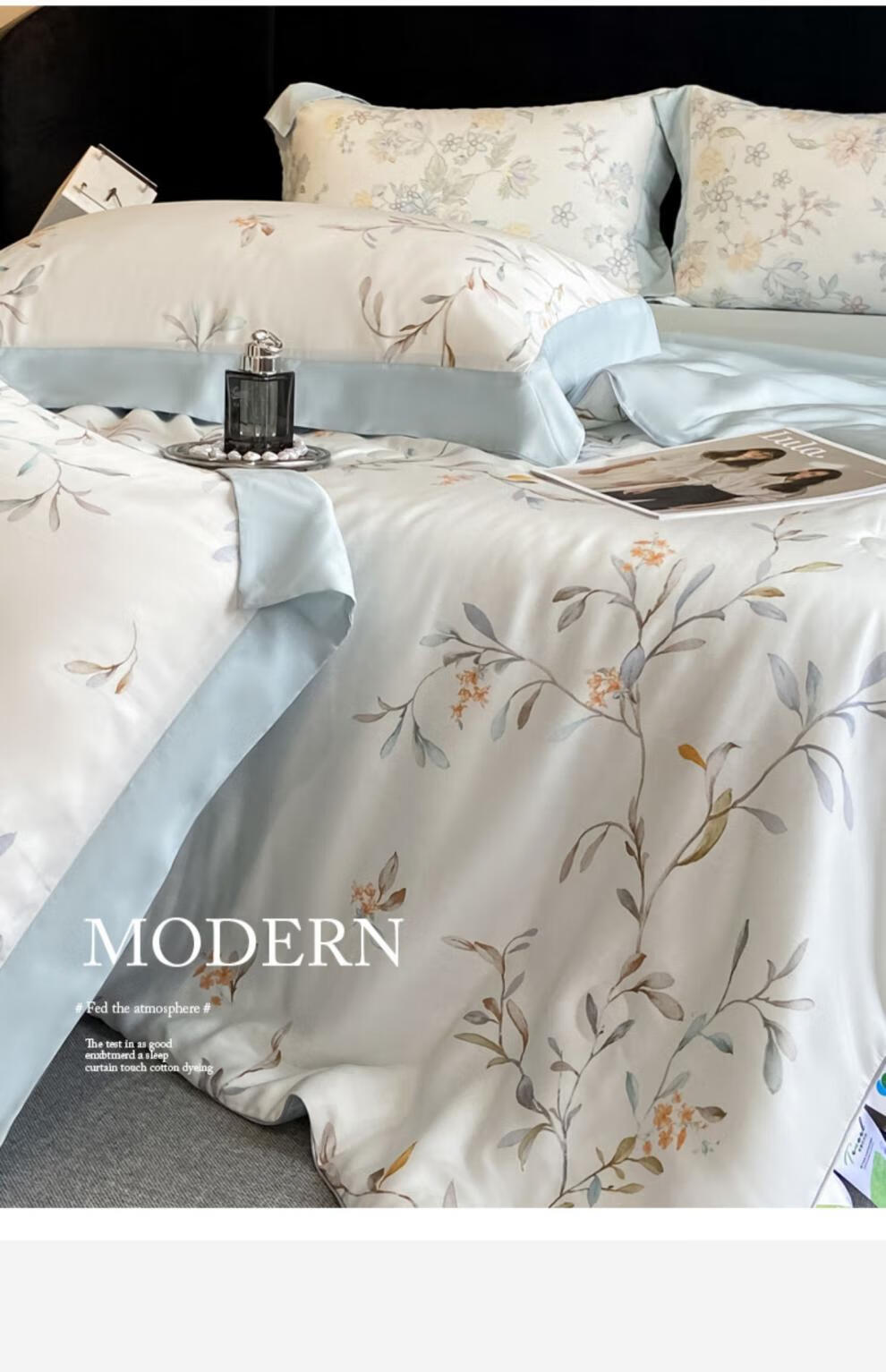 RSRDDY high-end Sam Tencel Lyocell four-piece set A 100-count summer quilt double-sided ice silk cool summer quilt Qingyi Class A baby grade machine washable summer quilt sheet type sheet type 2.0 m four-piece summer quilt set 220