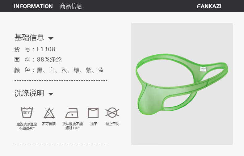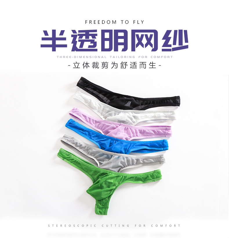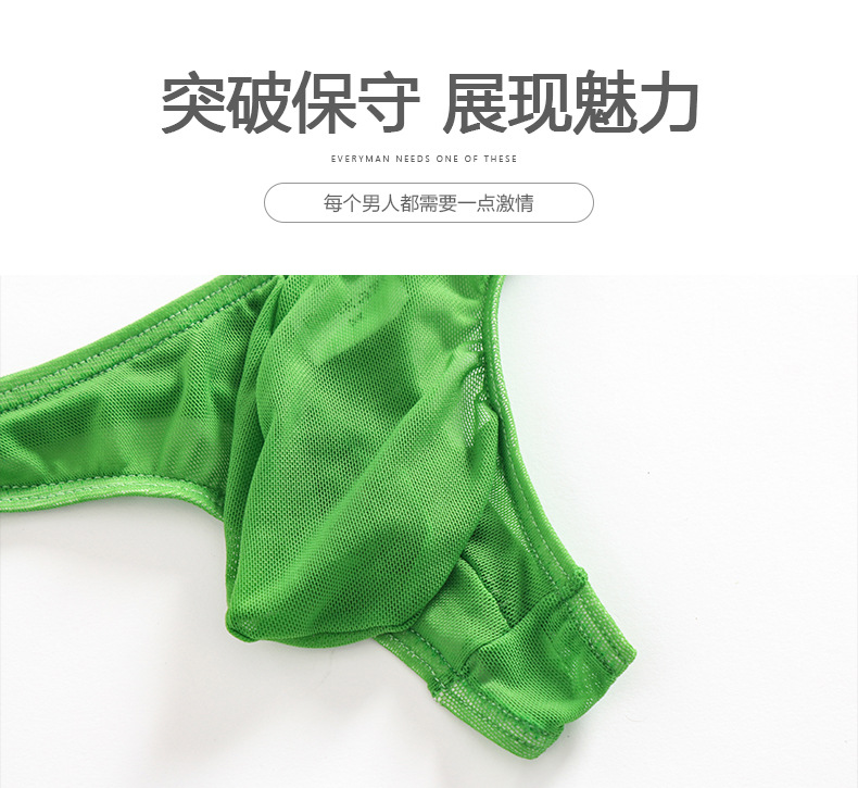 Please confidential delivery sexy mesh men's thong seductive fashion translucent U convex large bag g S green