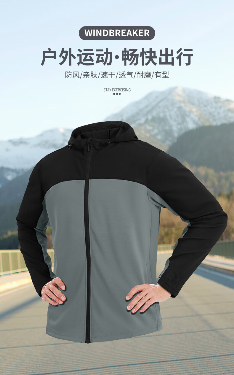 Sports windbreaker men's autumn running quick-drying jacket new outdoor windproof mountaineering cycling training clothing top jacket dark gray XL