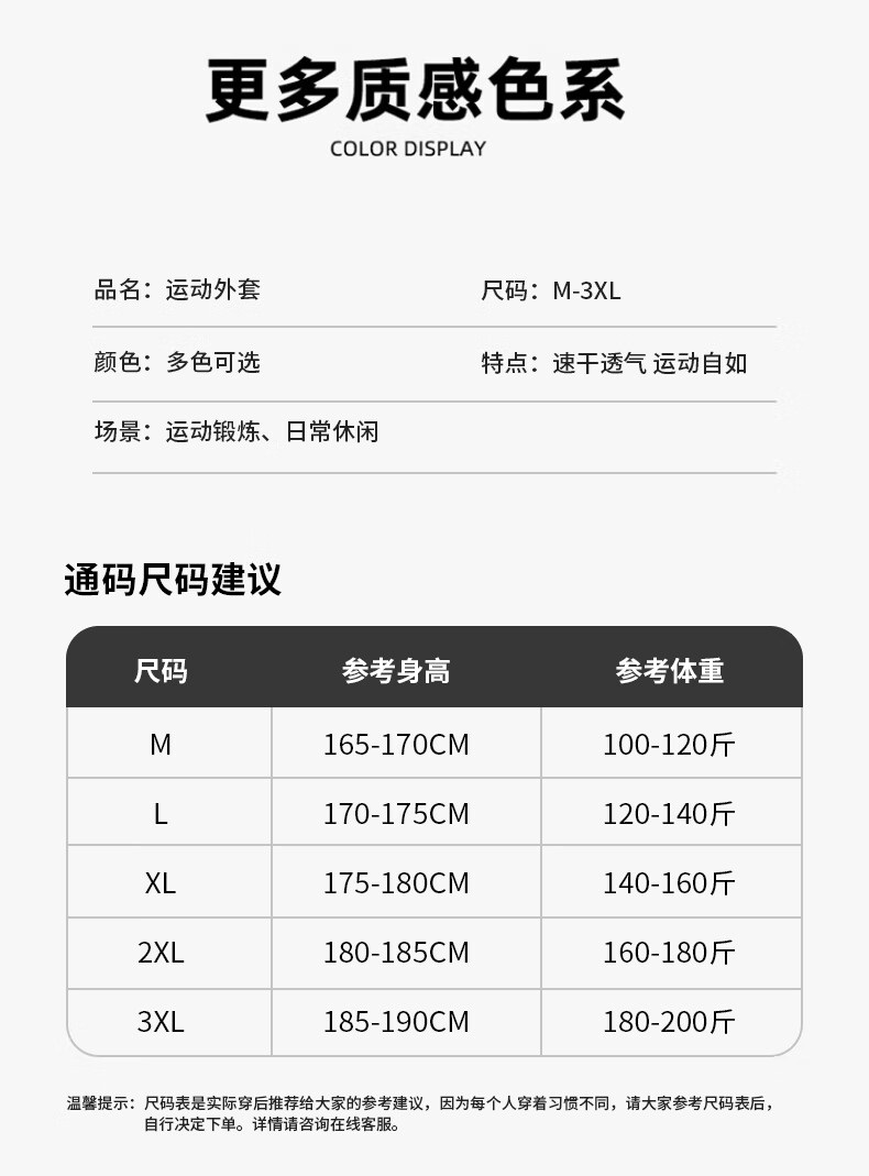 China (cm) 165 / 88-90 170 / 96-98 175 / 108-110 180 / 118-122 185 / 126-130