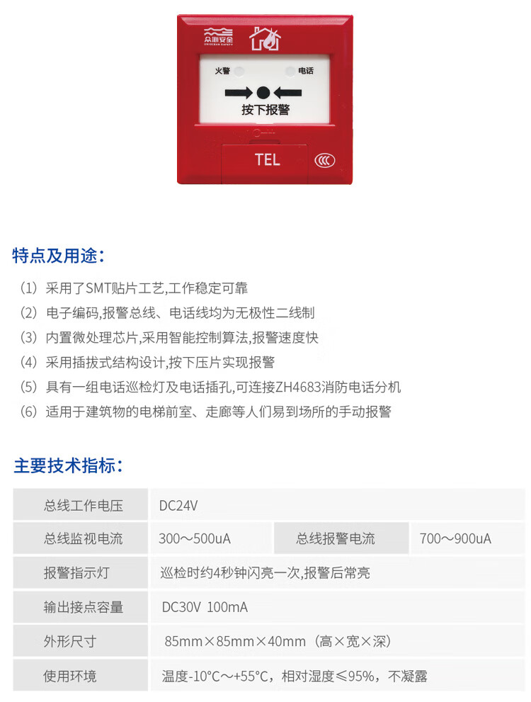 Shandong Zhonghaishoubao ZH7521 replaces the fire alarm button universal manual alarm button