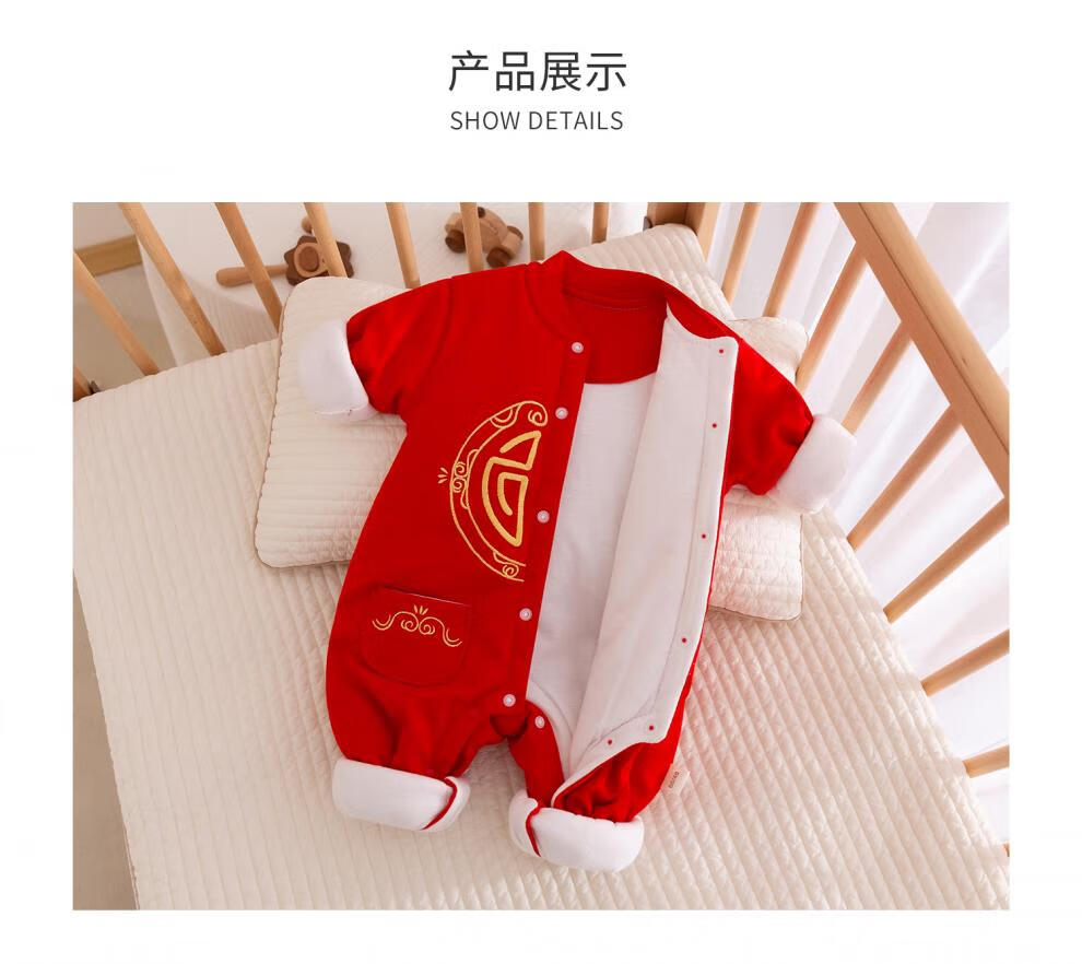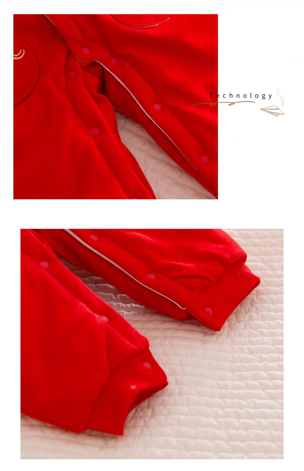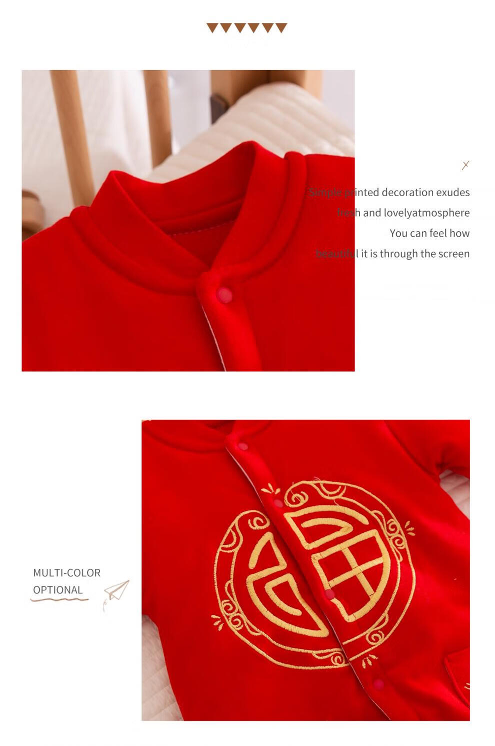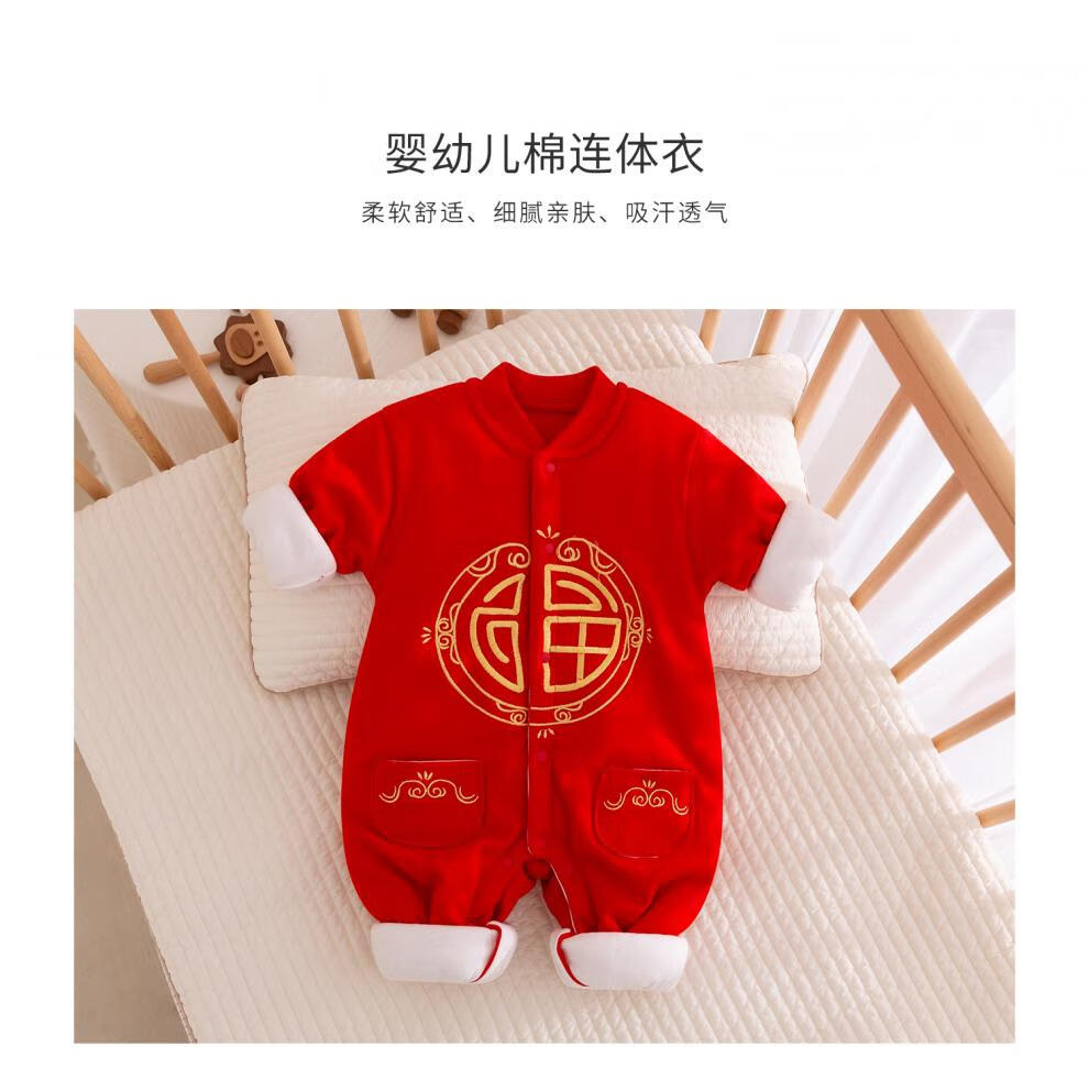 Fat Donglai baby New Year's greeting clothes baby autumn and winter quilted jumpsuit Chinese style same style big red gold ingot 66cm