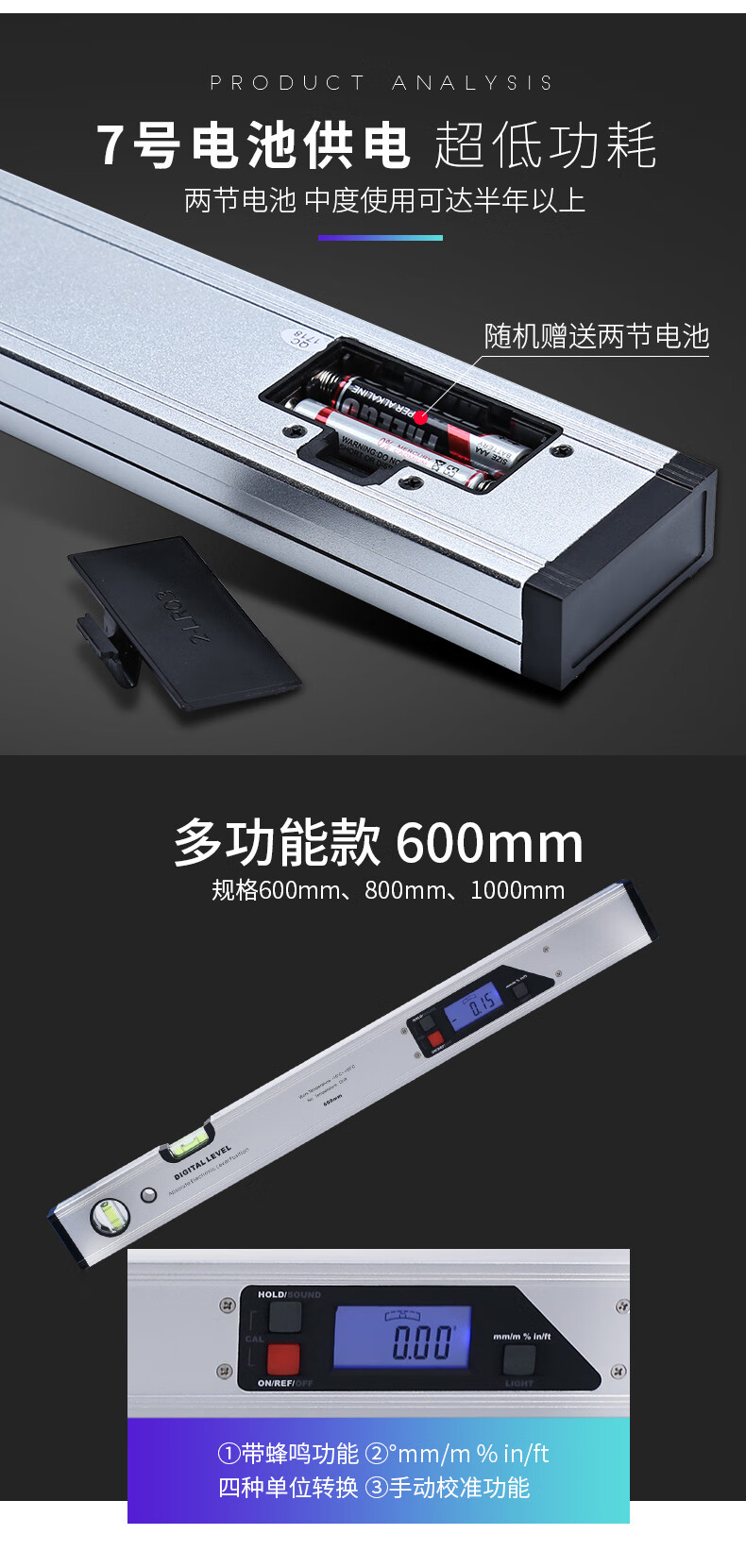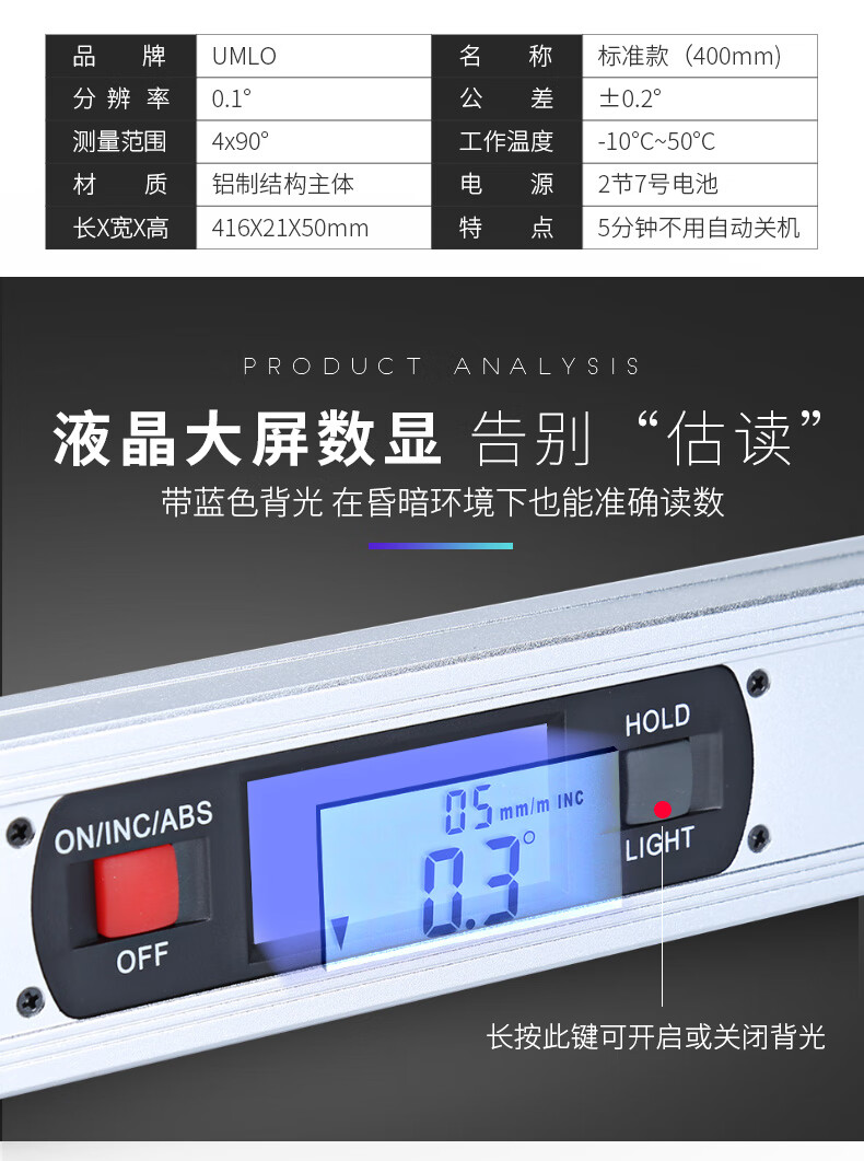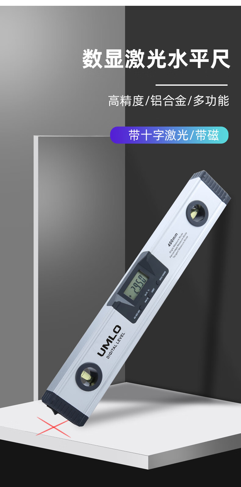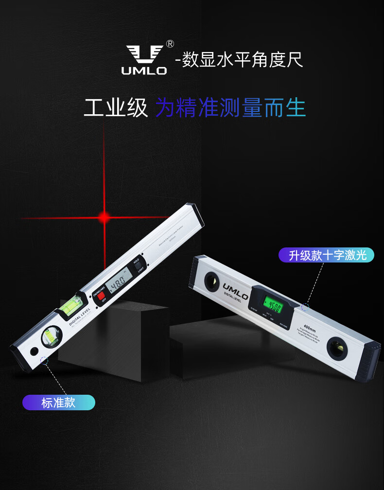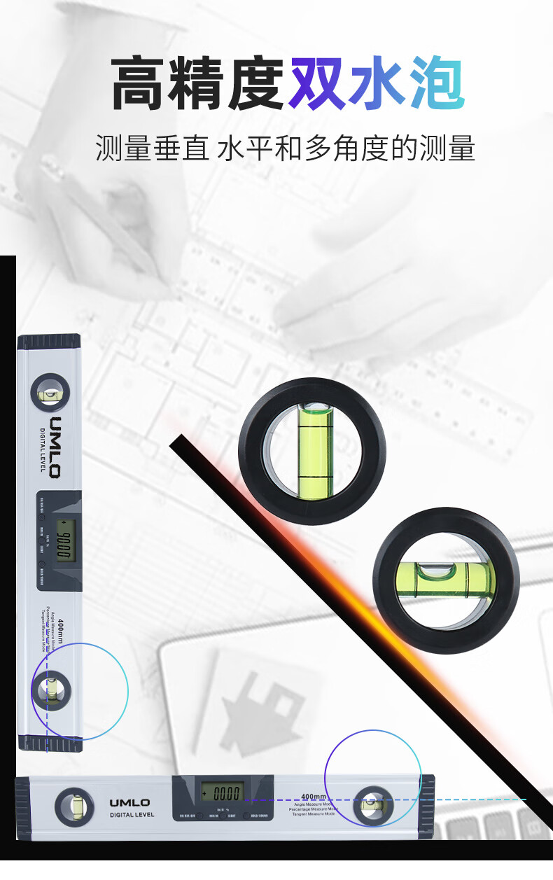 UMLO high-precision digital display level with laser strong magnetic angle meter aluminum alloy balance level measuring angle 225mm waterproof digital display level without laser