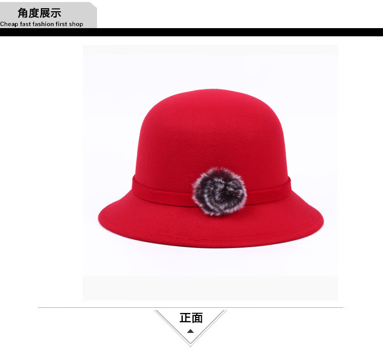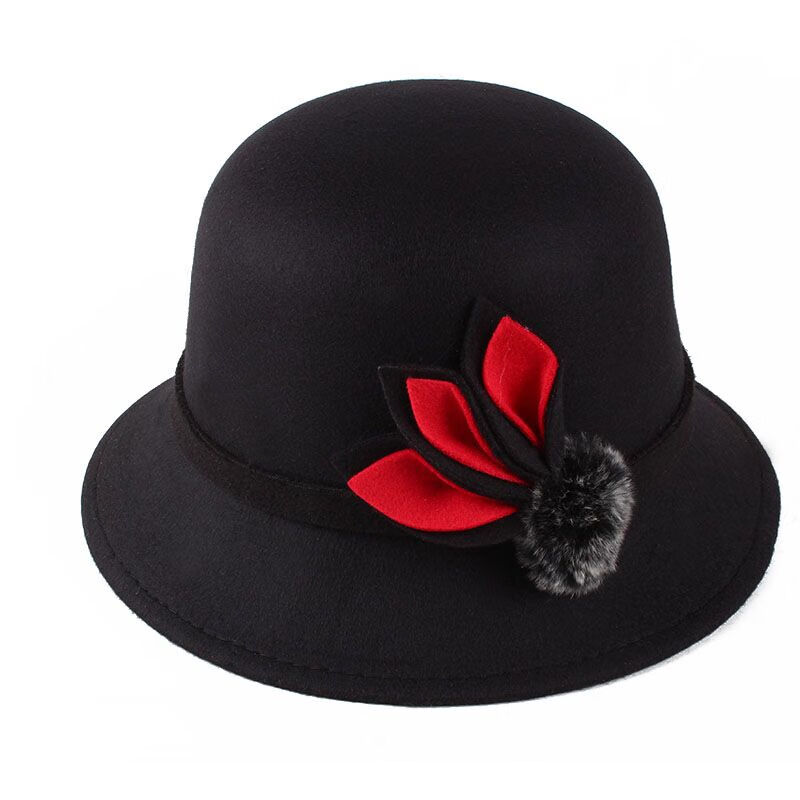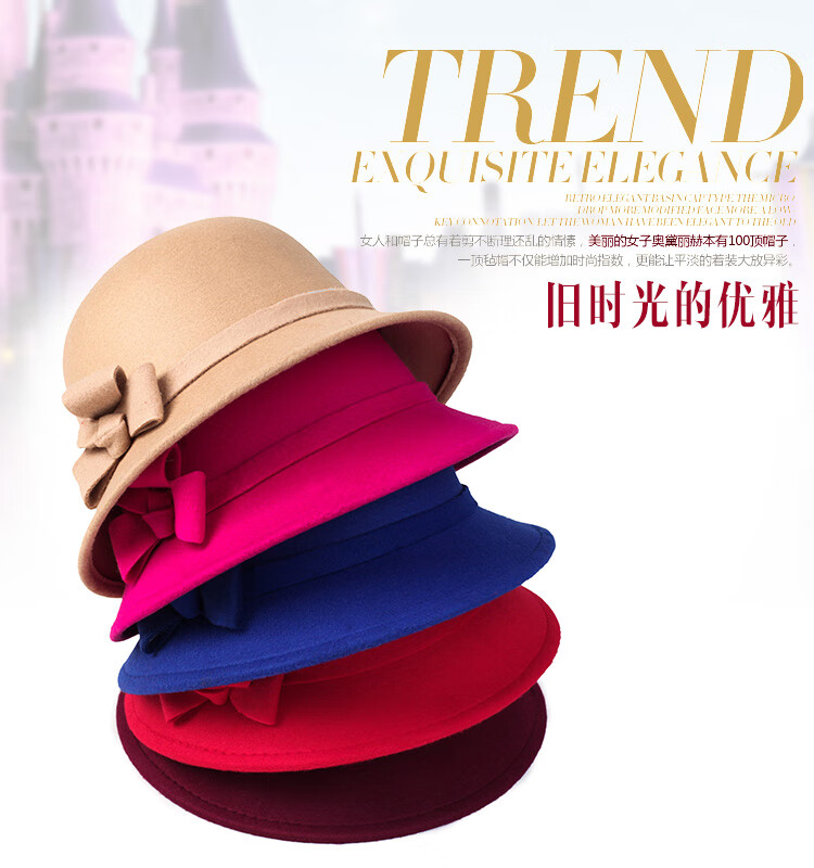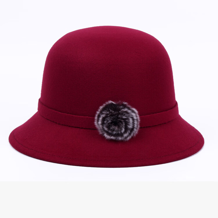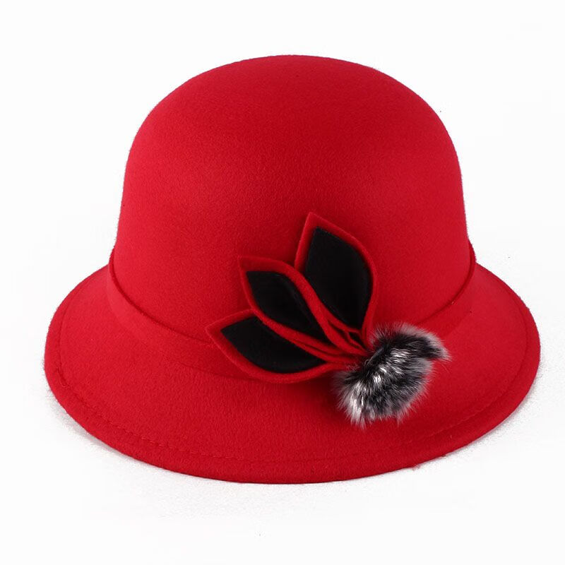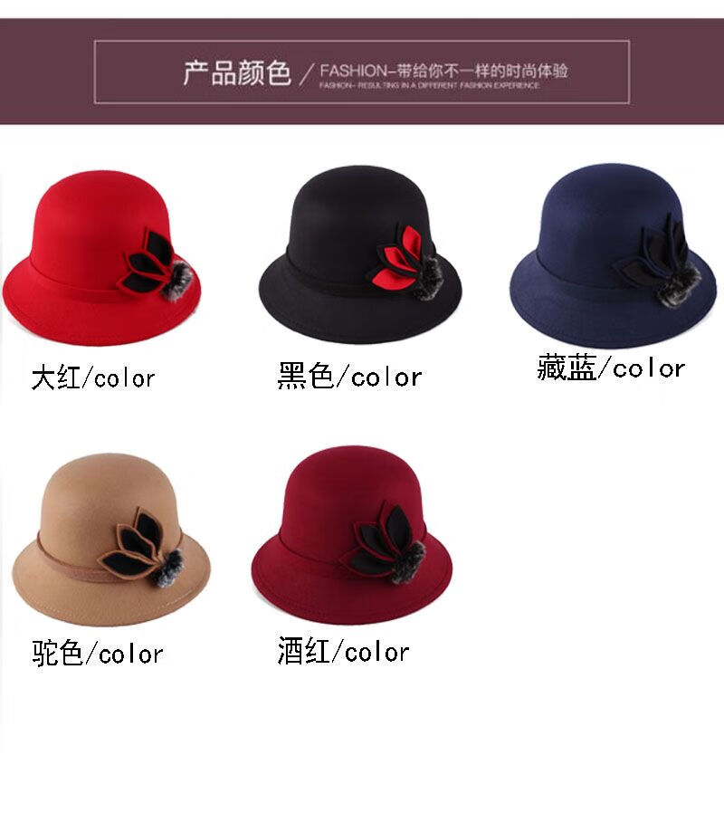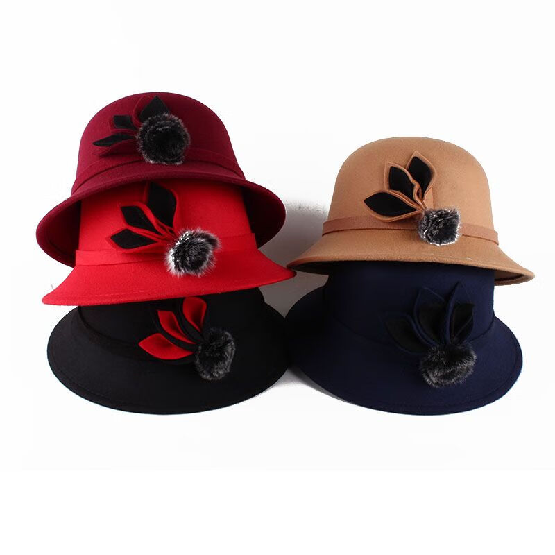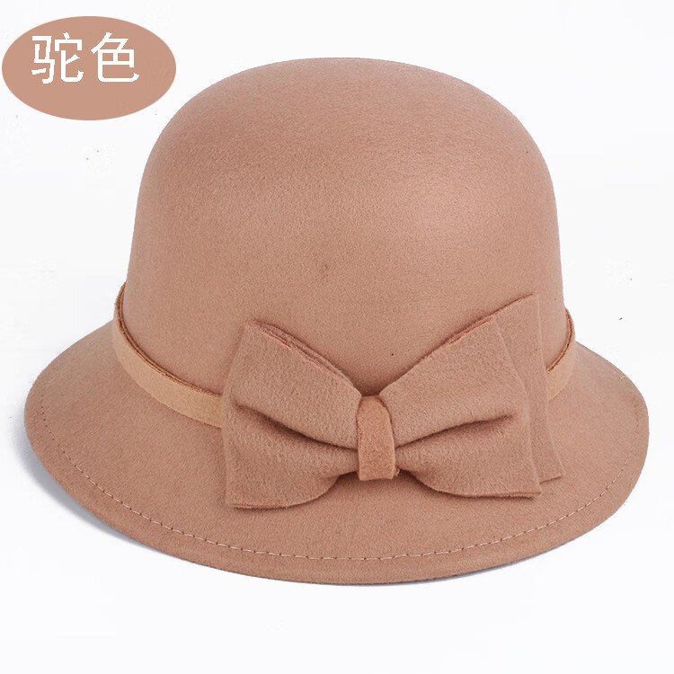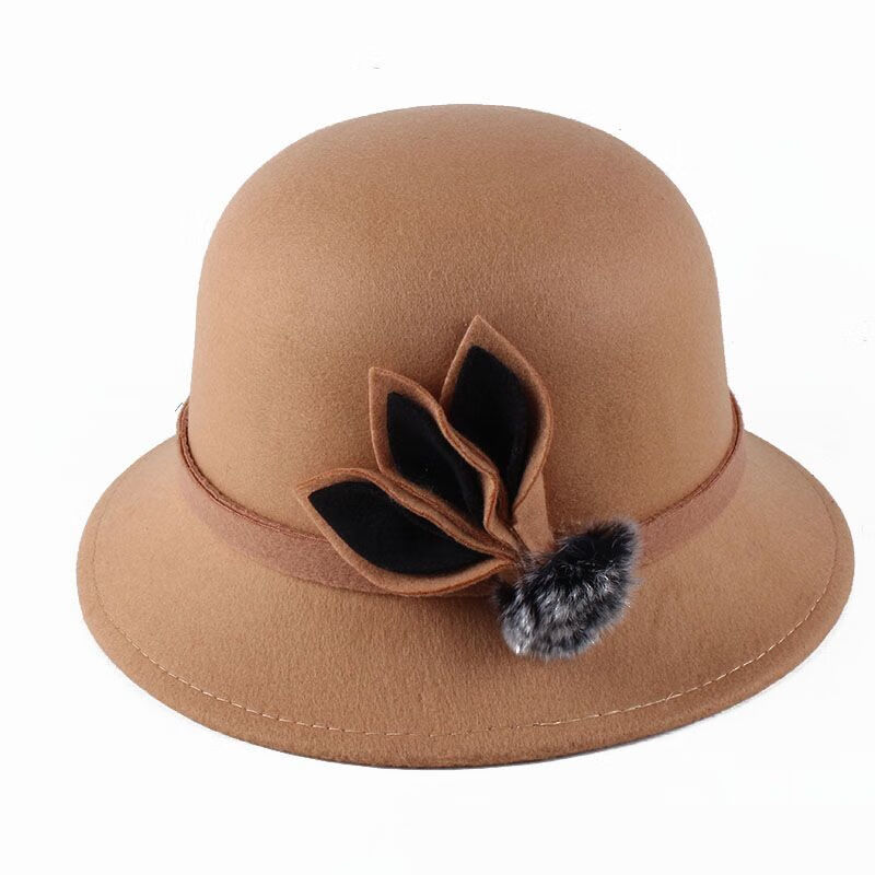 Pierre Cardin (Pierre Cardin) French imported quality autumn and winter women's hats bowler hat woolen women's basin hat fashion hat round hat winter women's hair ball three-leaf camel color adjustable