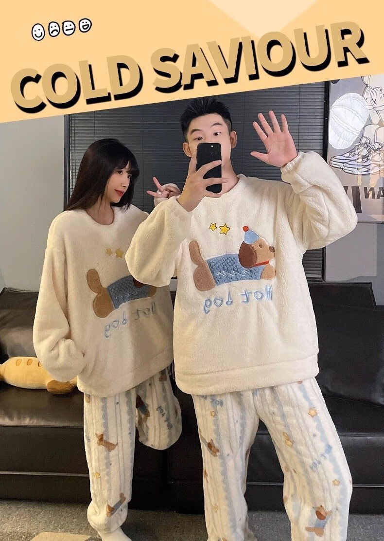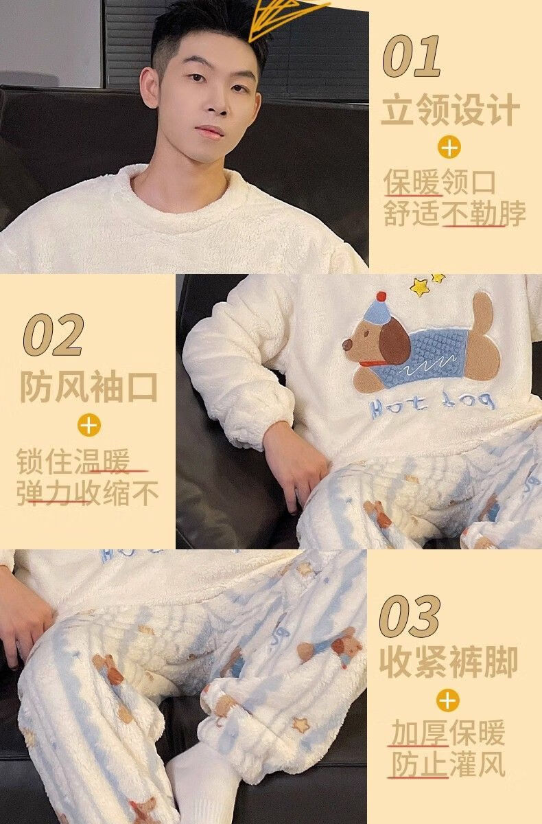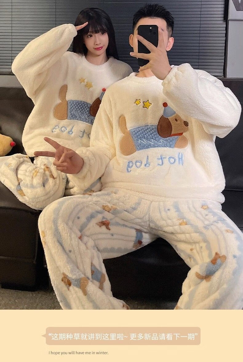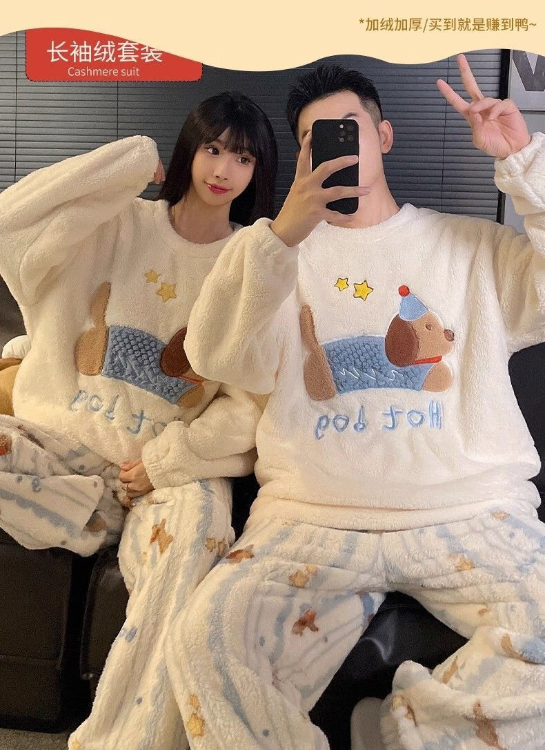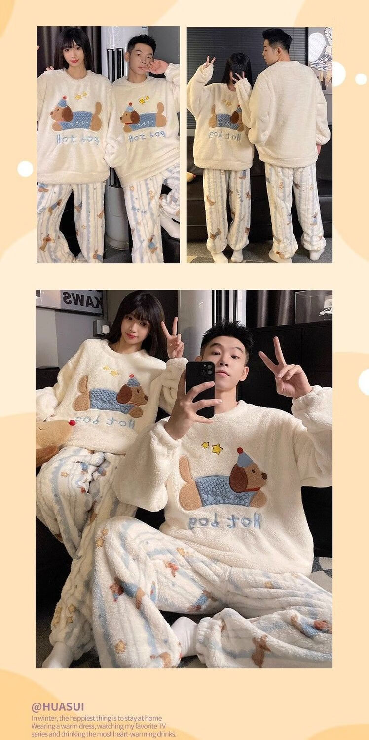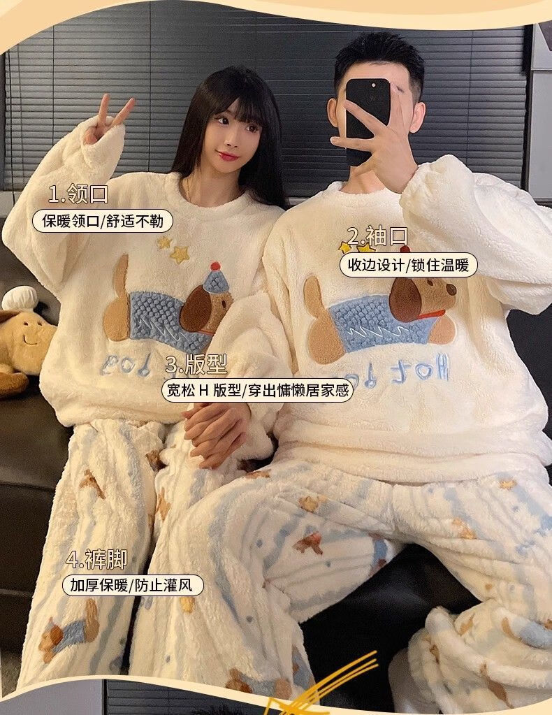 Gongdie Dachshund Couple Pajamas Autumn and Winter Coral Velvet Thickened Plus Velvet Men and Women Cute Cartoon Home Clothing Set H9991 2XL Women's Size Recommended Weight 140-160Jin Jin is equal to 0.5 kg