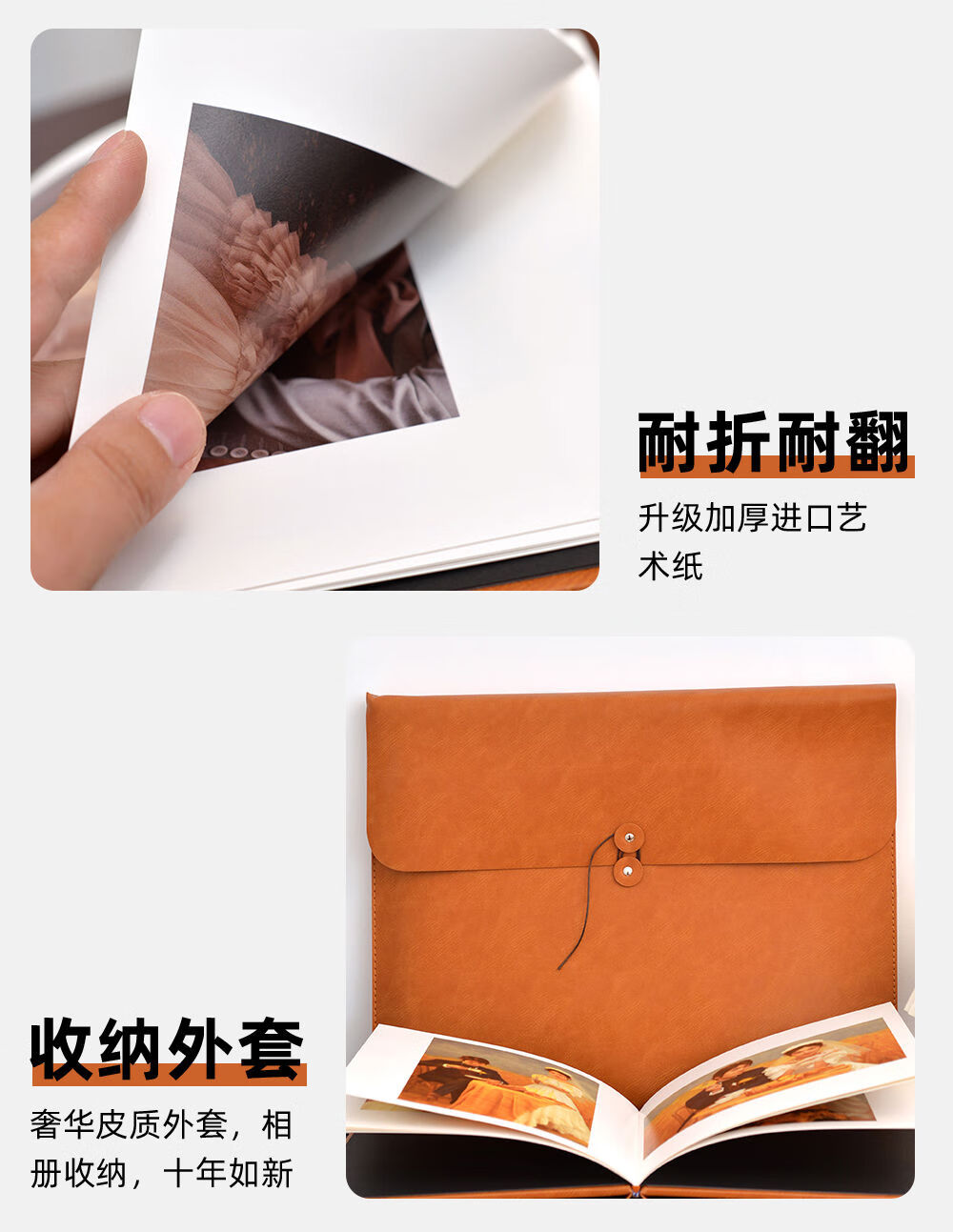 Yusenyi high-end photo album, leather photo album, commemorative album, photo album, print photos to make photo book, couple wedding photos, 22 pages can hold 28-32 photos, Hetty-brown square-art paper double