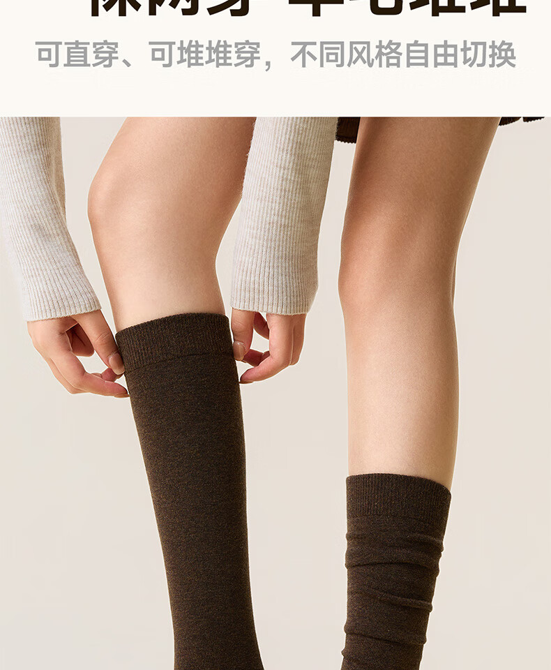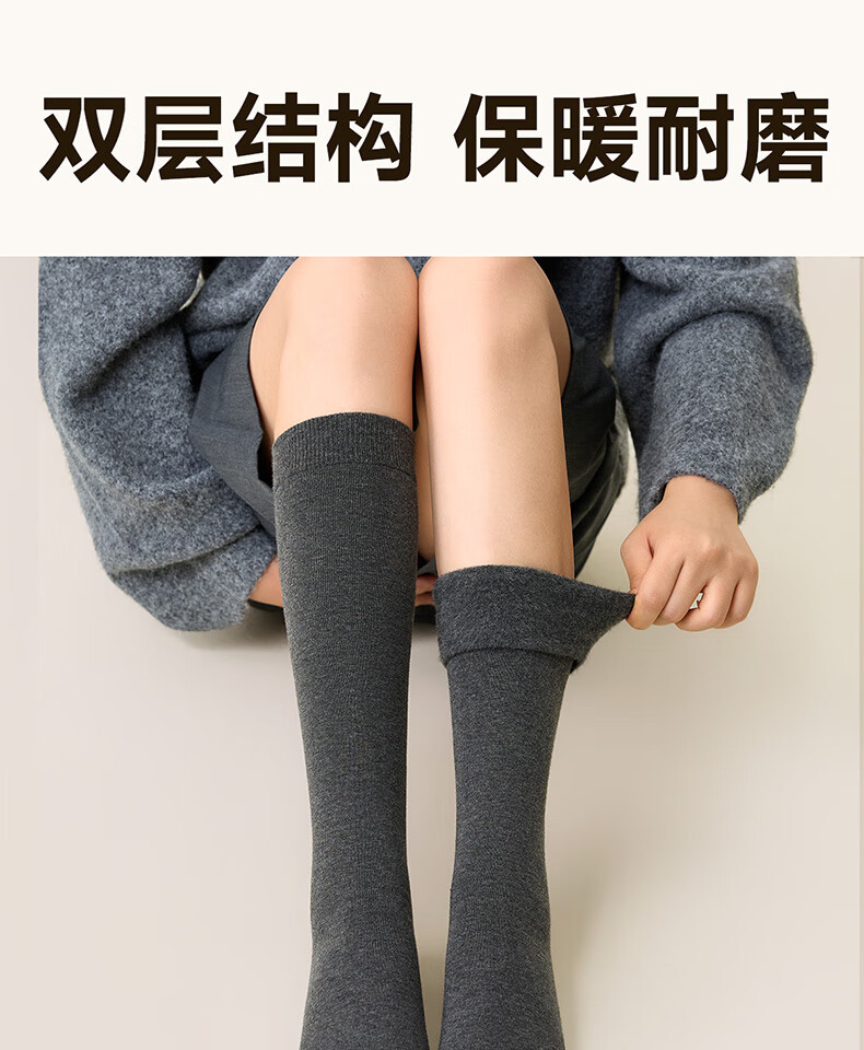 Mianzhuwu wool calf socks for women, winter plus velvet and thickened merino warm, matching small leather shoes, long cotton socks, combination 1 (dark linen gray + black), one size fits all, 35-39 outer cotton and inner wool_warmth and temperature locking_non-falling free shipping insurance