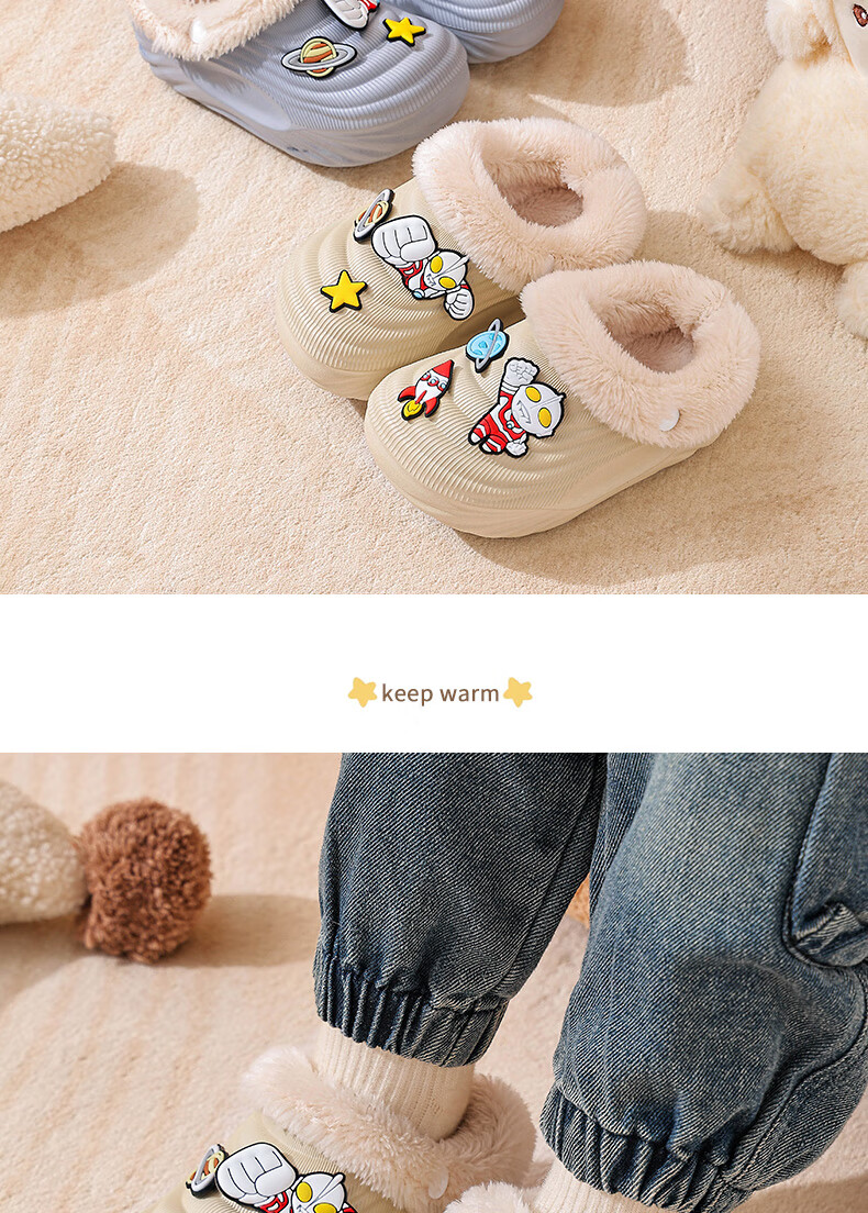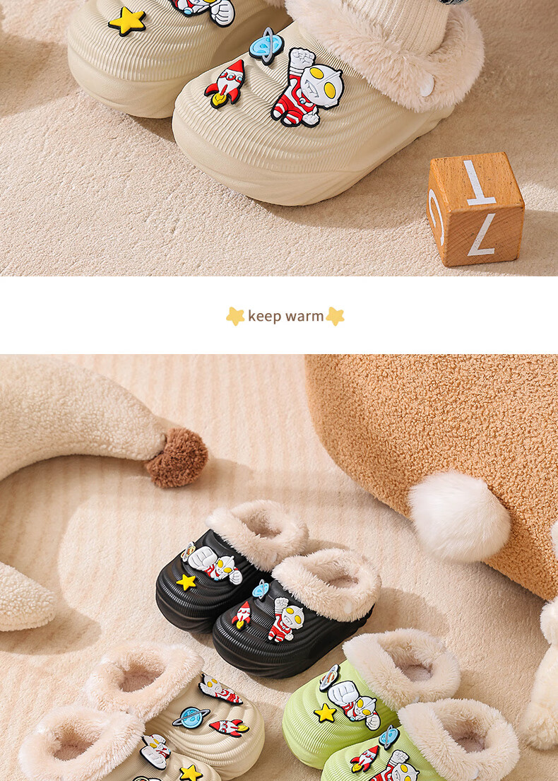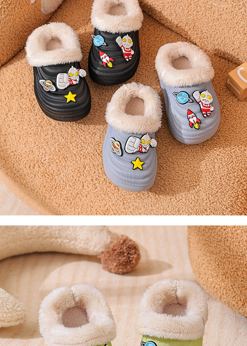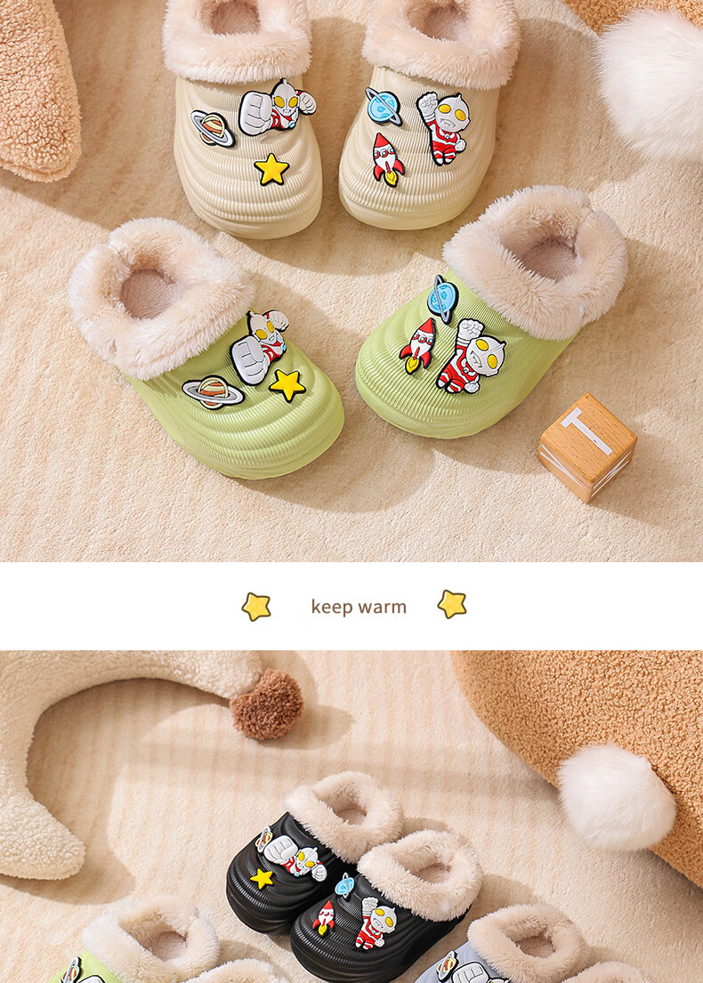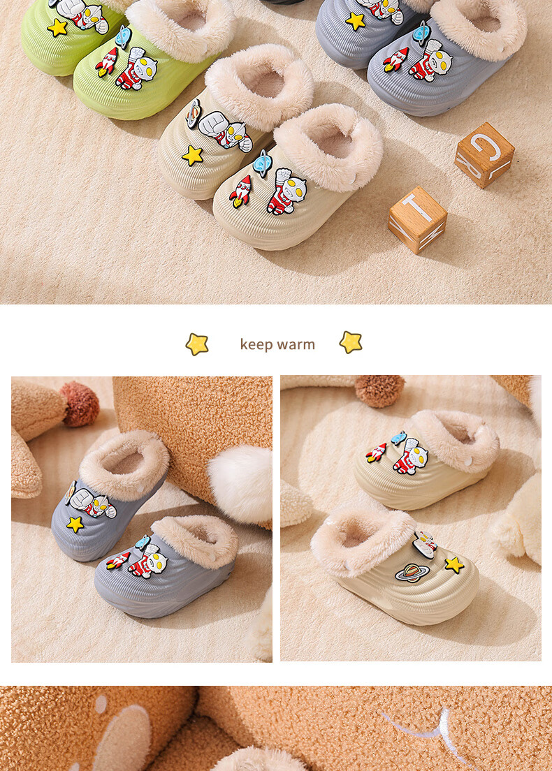EVA children's cotton slippers Ultraman winter cartoon cute anti-slip plus velvet warm waterproof parent-child cotton shoes EVA warm anti-slip upgraded version green 30 inner length 17-17.5cm