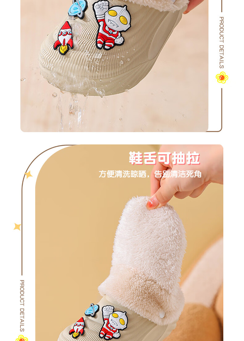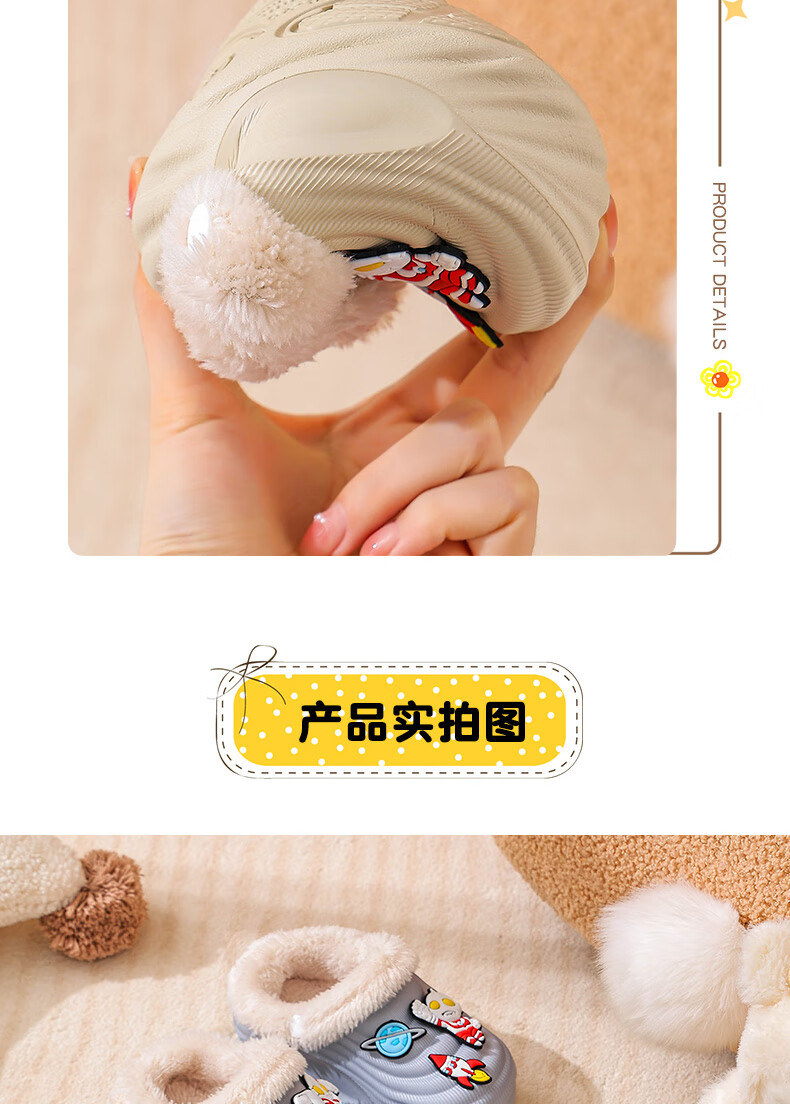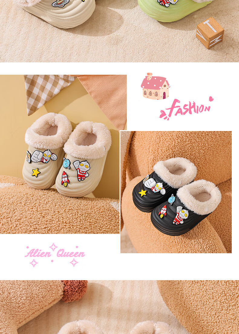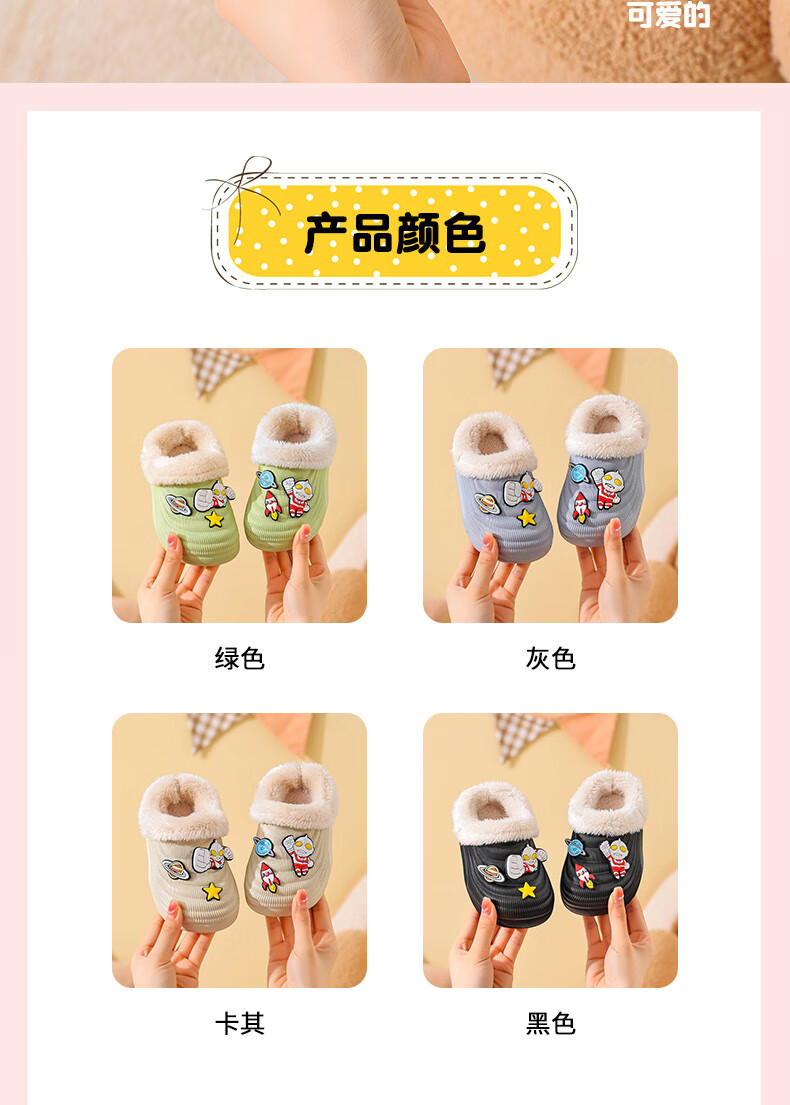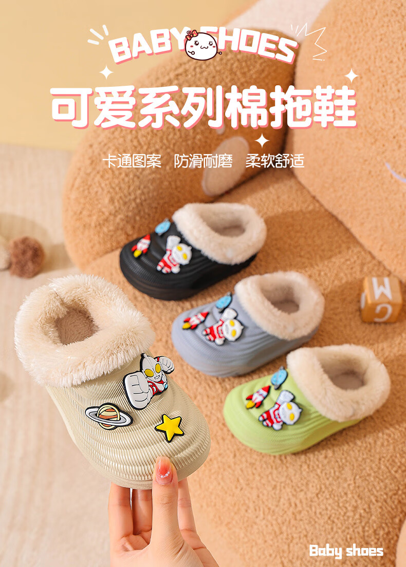 EVA children's cotton slippers Ultraman winter cartoon cute anti-slip plus velvet warm waterproof parent-child cotton shoes EVA warm anti-slip upgraded version green 30 inner length 17-17.5cm