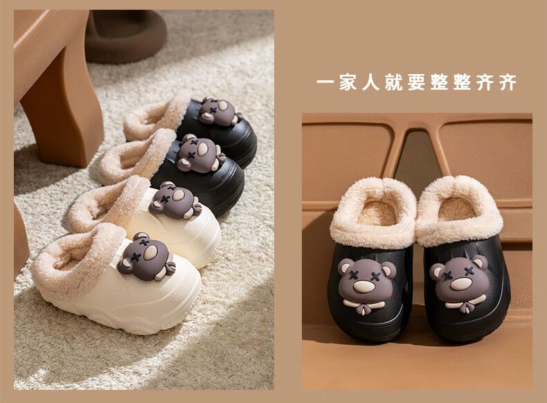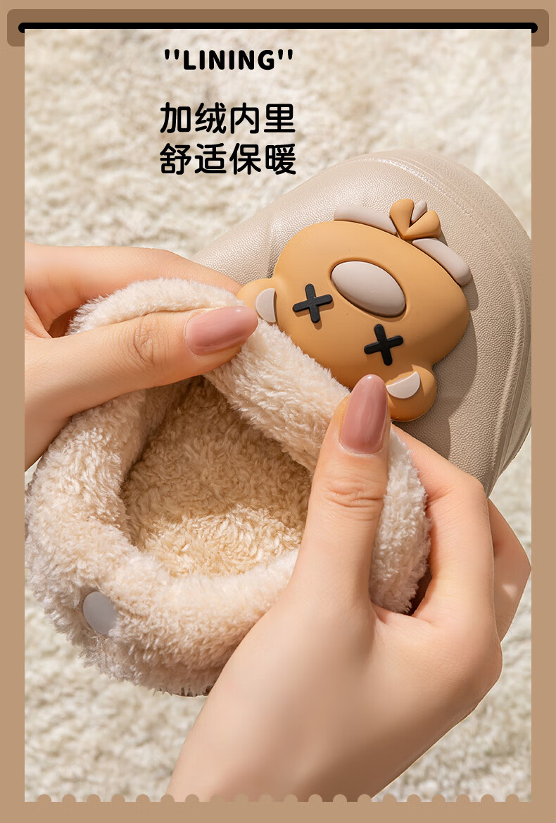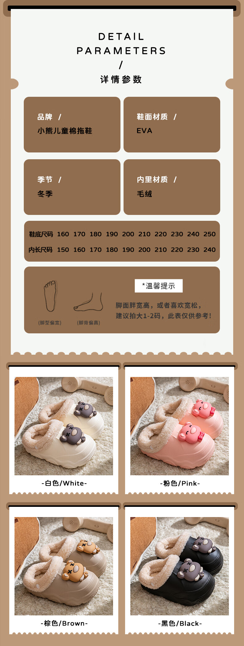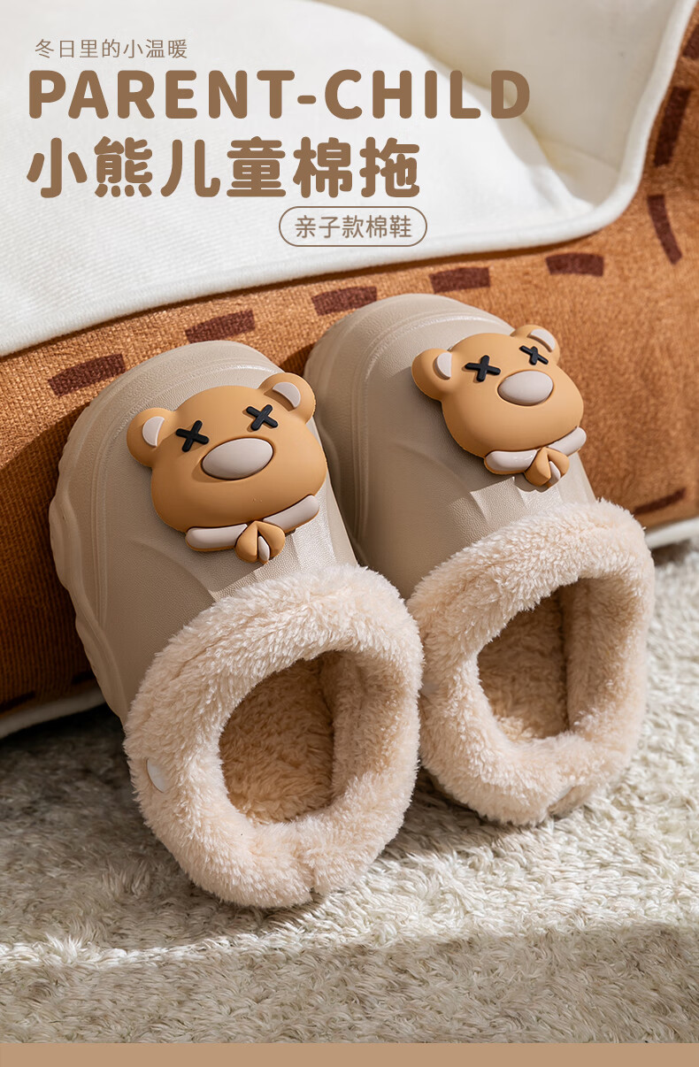EVA children's cotton slippers with velvet for warmth in winter, cute cartoon removable anti-slip parent-child cotton slippers for boys and girls EVA anti-slip and warm upgraded version pink 35 inner length 20.5-21cm 220MM