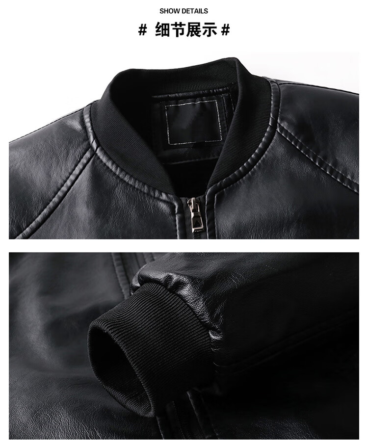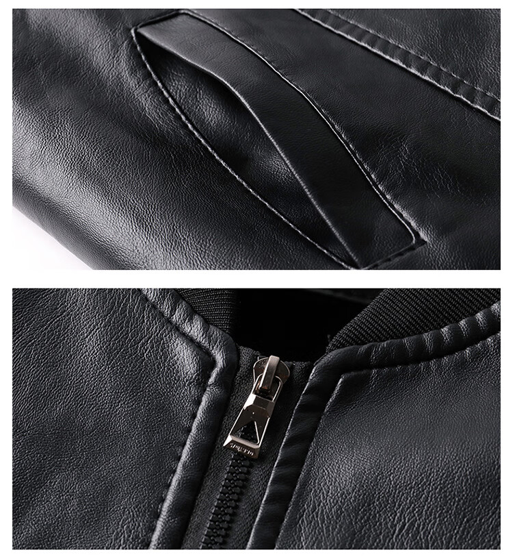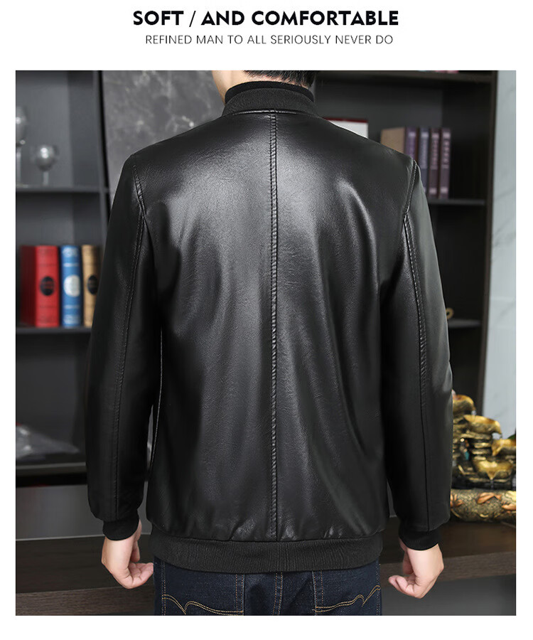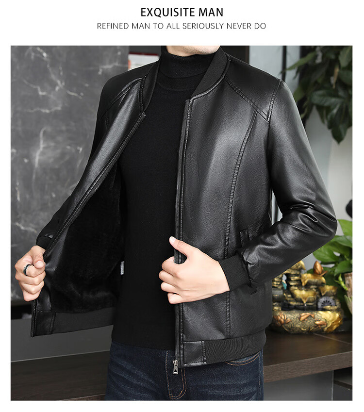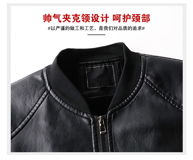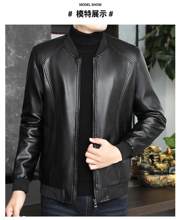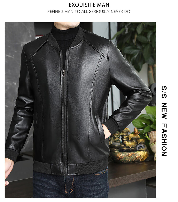 Baseball collar leather jacket men's autumn and winter stand-up collar jacket Korean style slim casual middle-aged and elderly youth flight jacket pu motorcycle suit black spring and autumn thin L 52 (100-120Jin Jin equals 0.5 kg)
