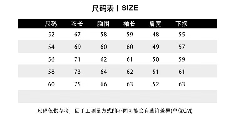 Size (cm) 42 44 46 48 50