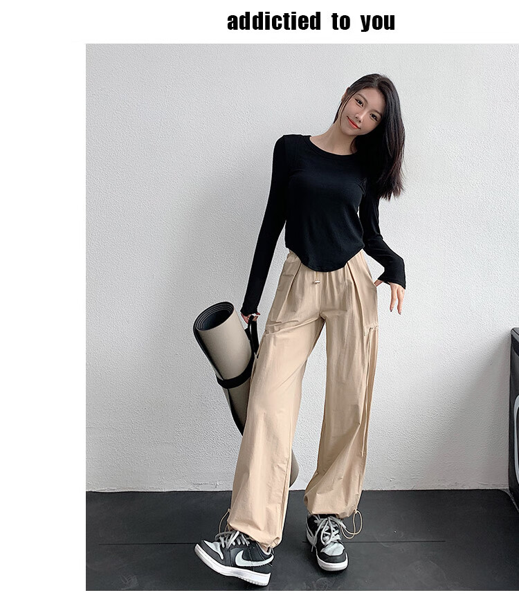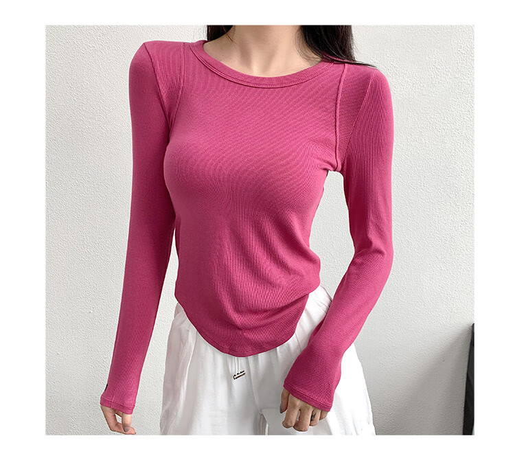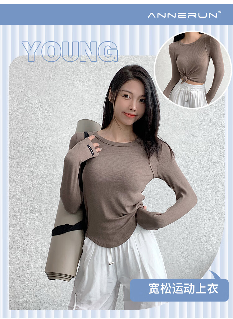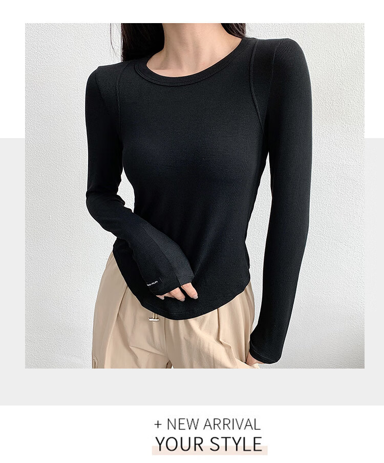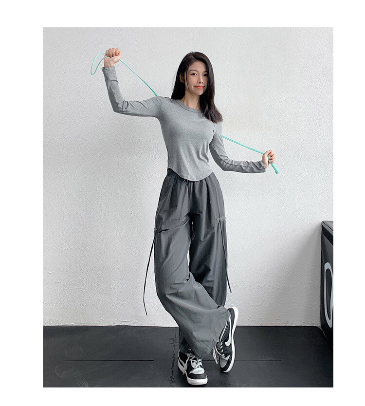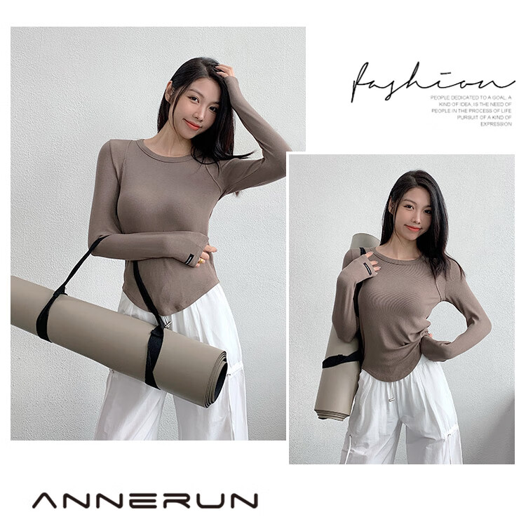 KEJIMITAO European and American ins sports long-sleeved T-shirt women's round neck yoga clothes slim fit breathable fitness Pilates quick-drying top hemp gray S recommended (85-98Jin Jin equals 0.5 kg)