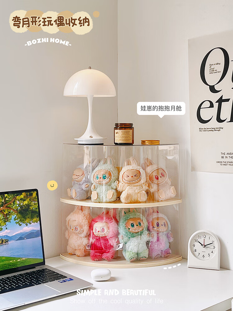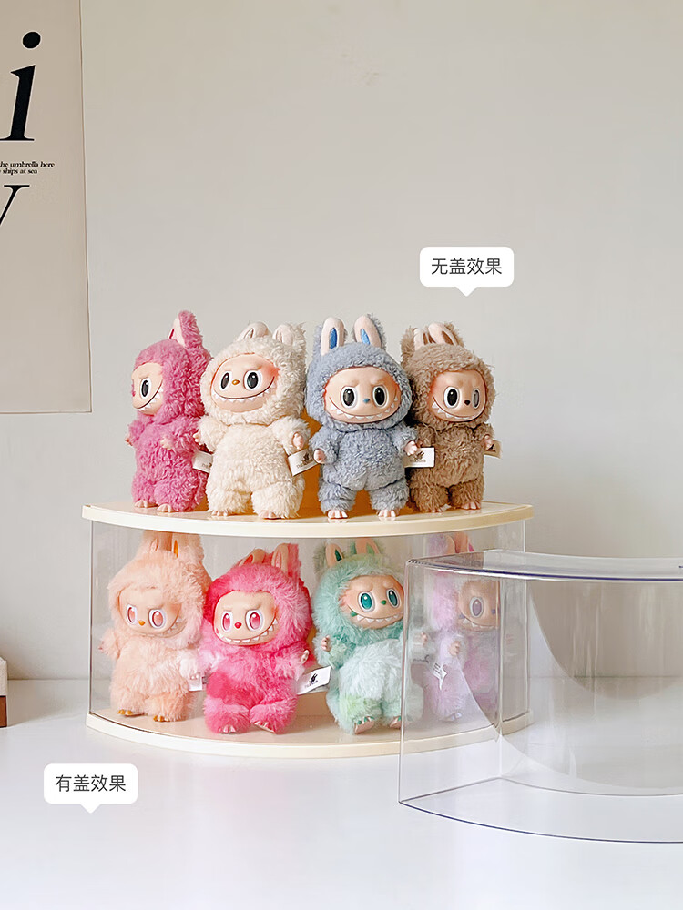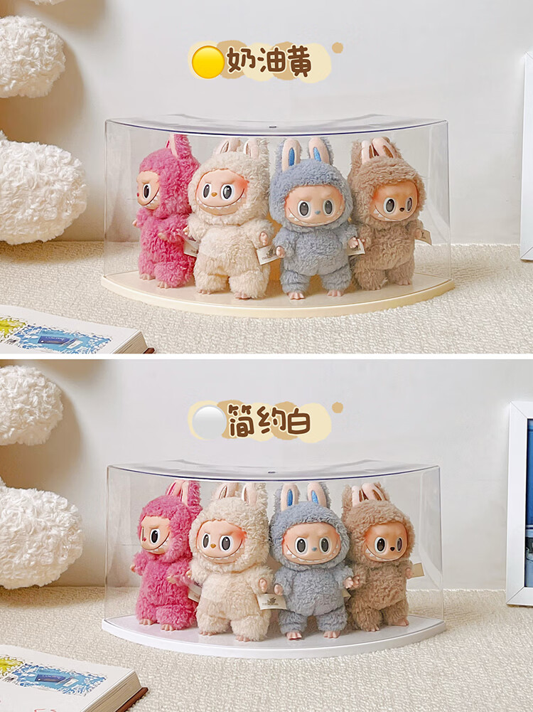 Labubu doll storage display stand blind box doll transparent acrylic bubble mart labubu display box cream yellow 2 pack labubu display box