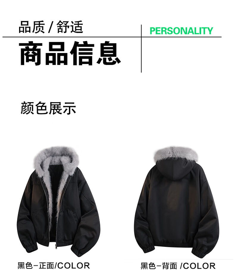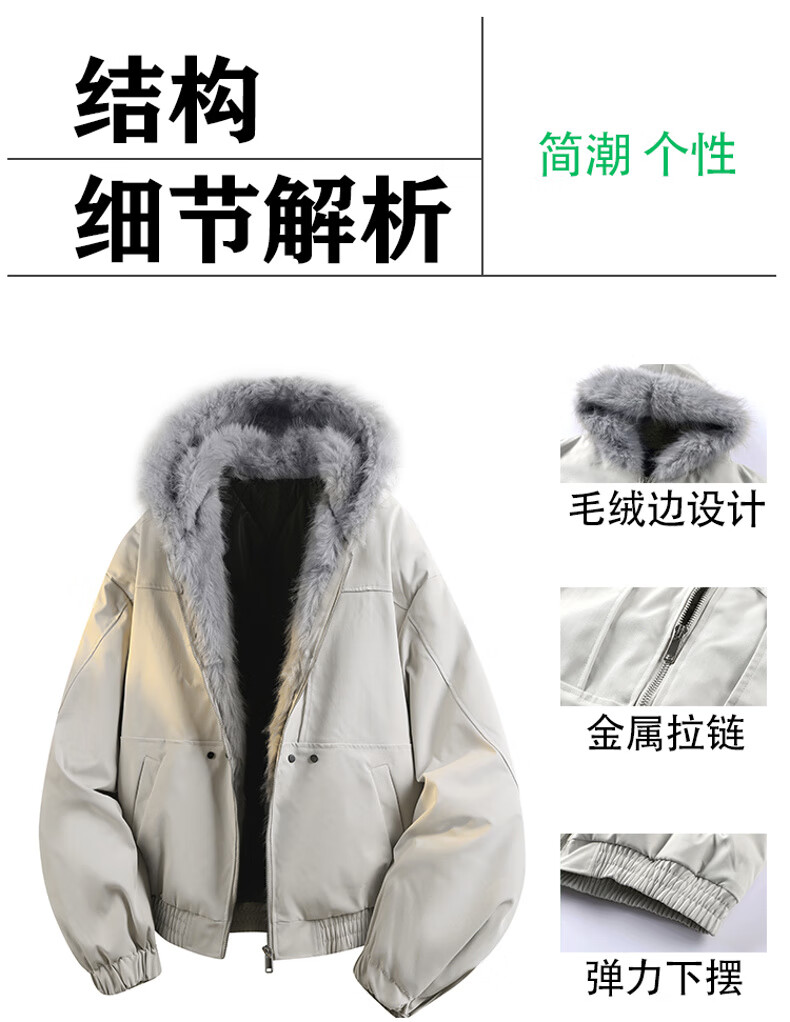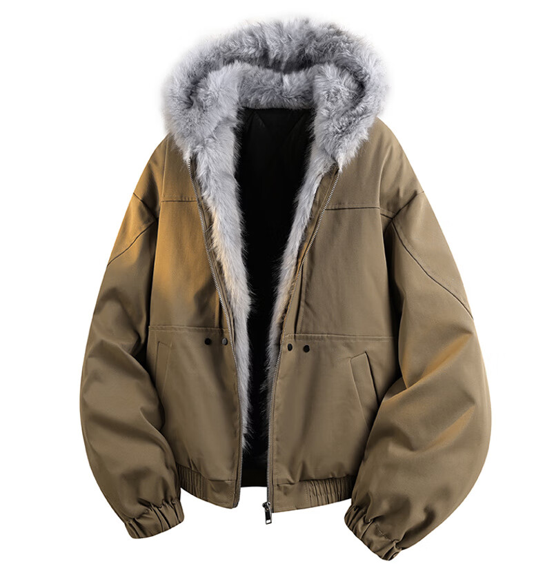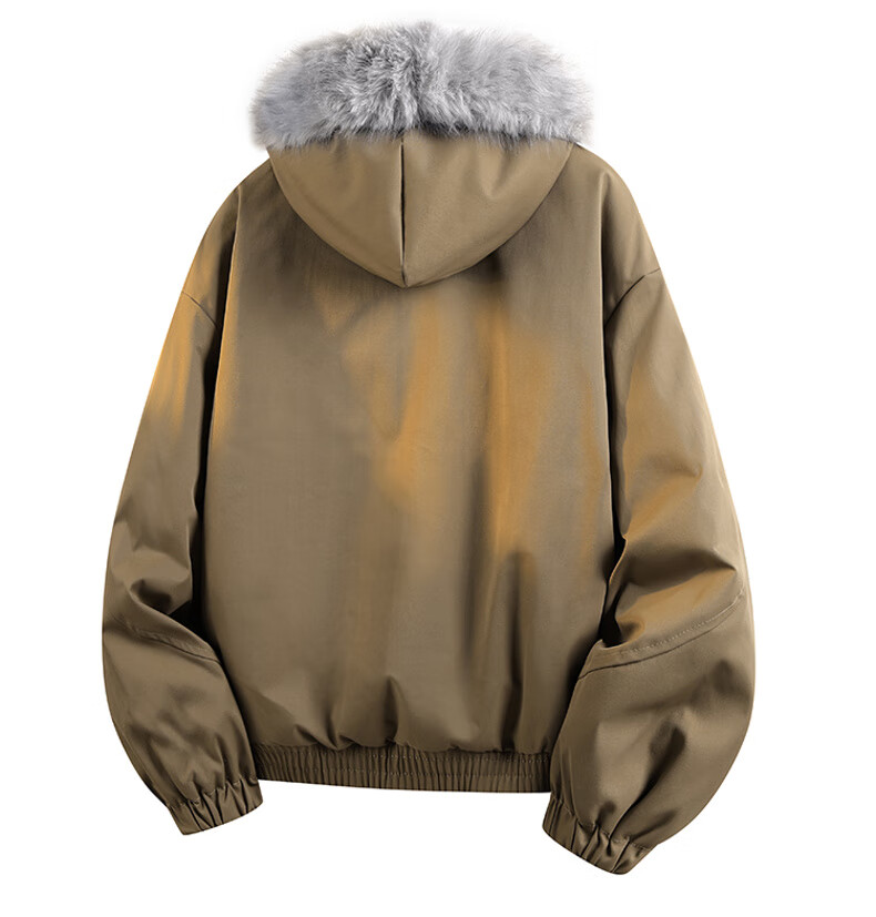 Guah mountain carving cotton coat men's winter velvet thickened men's coat American feather puffer coat warm loose trendy cotton coat black XL