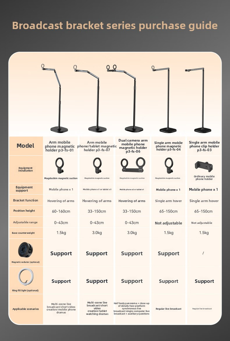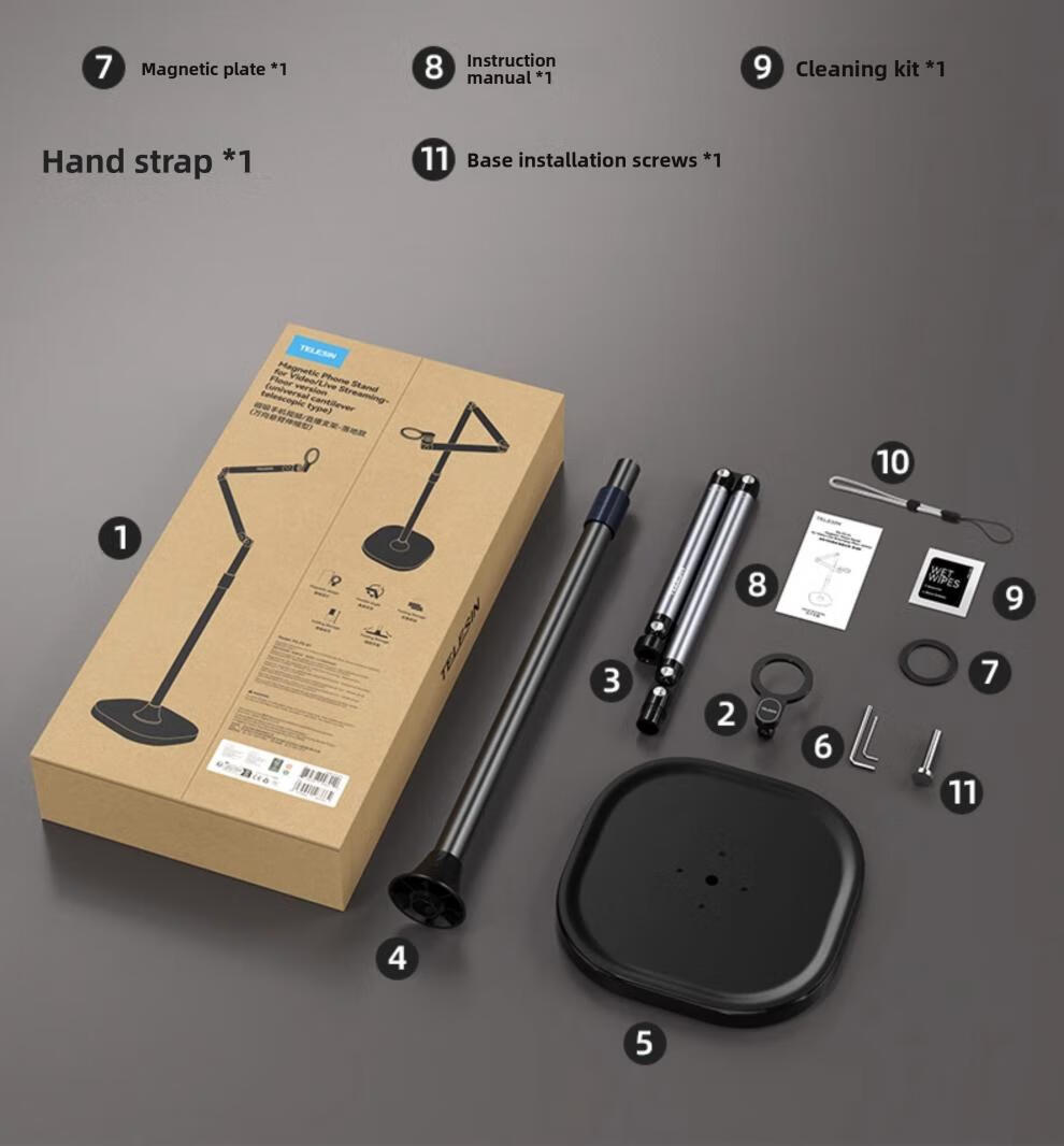 TELESINTelein Taiwan News mobile phone holder magnetic portable foldable drama lazy support bracket iPad tablet desktop anchor shooting floor radiator fill light single-arm mobile phone magnetic suction holder