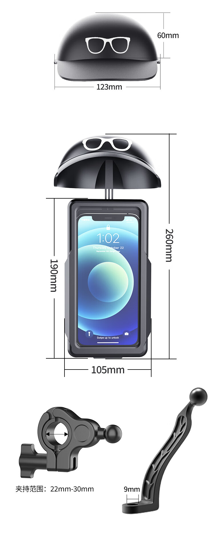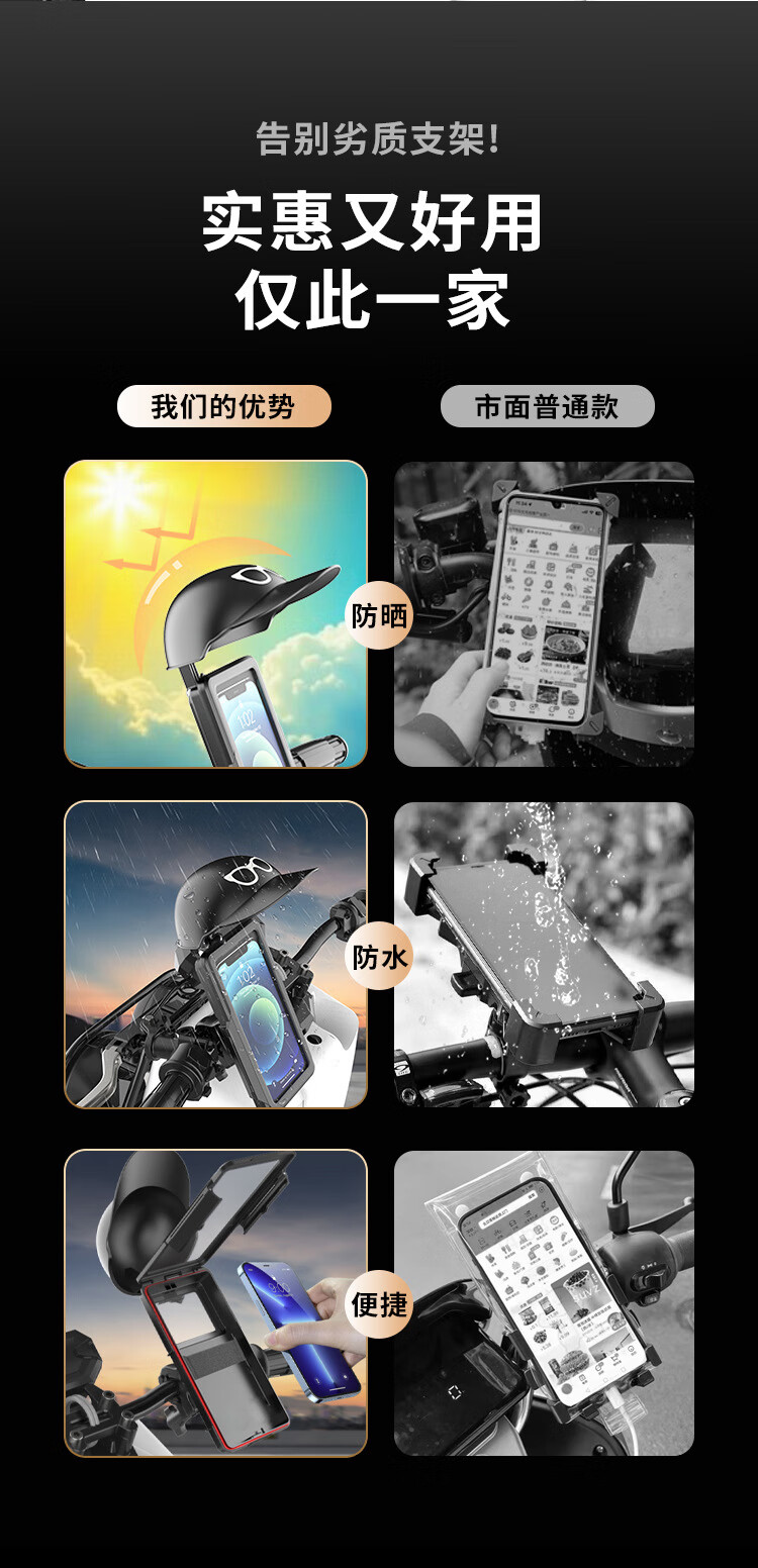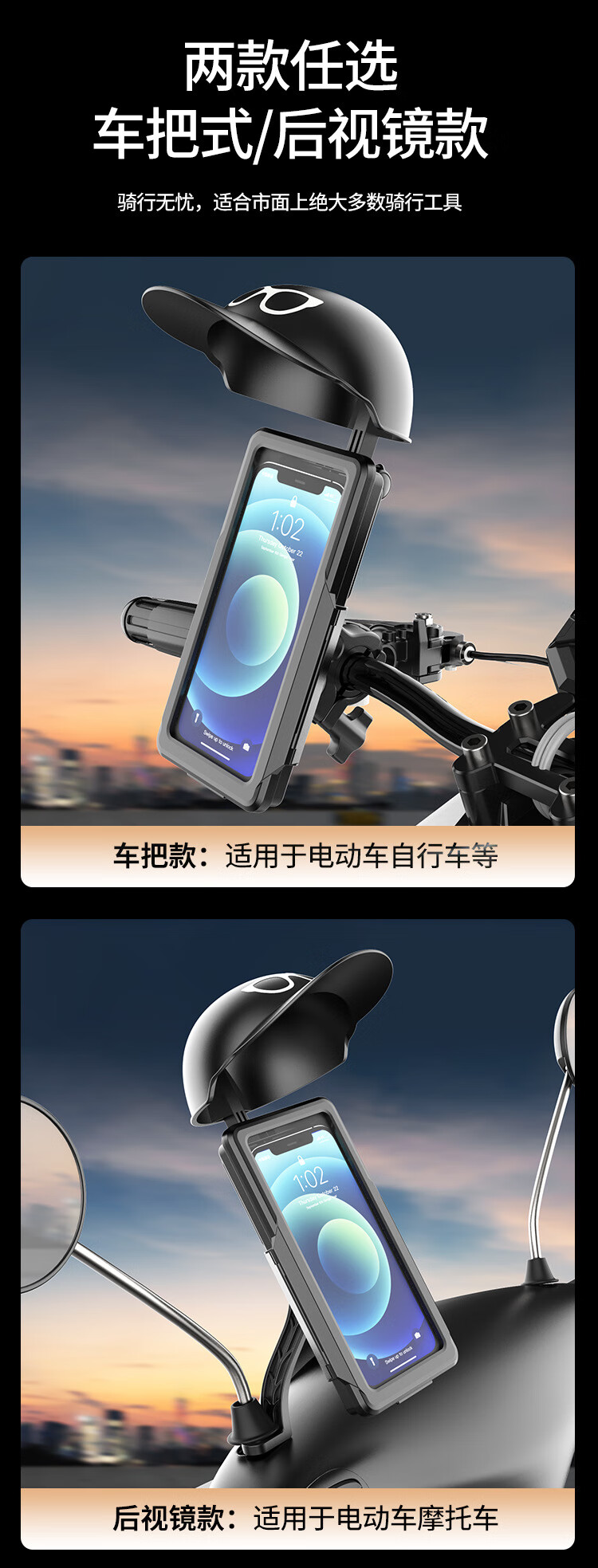 Yuanzu's new bicycle battery car waterproof car mobile phone holder with helmet sunshade special car holder for takeaway handlebar type mobile phone holder (with black small helmet)