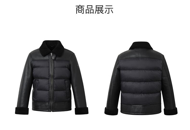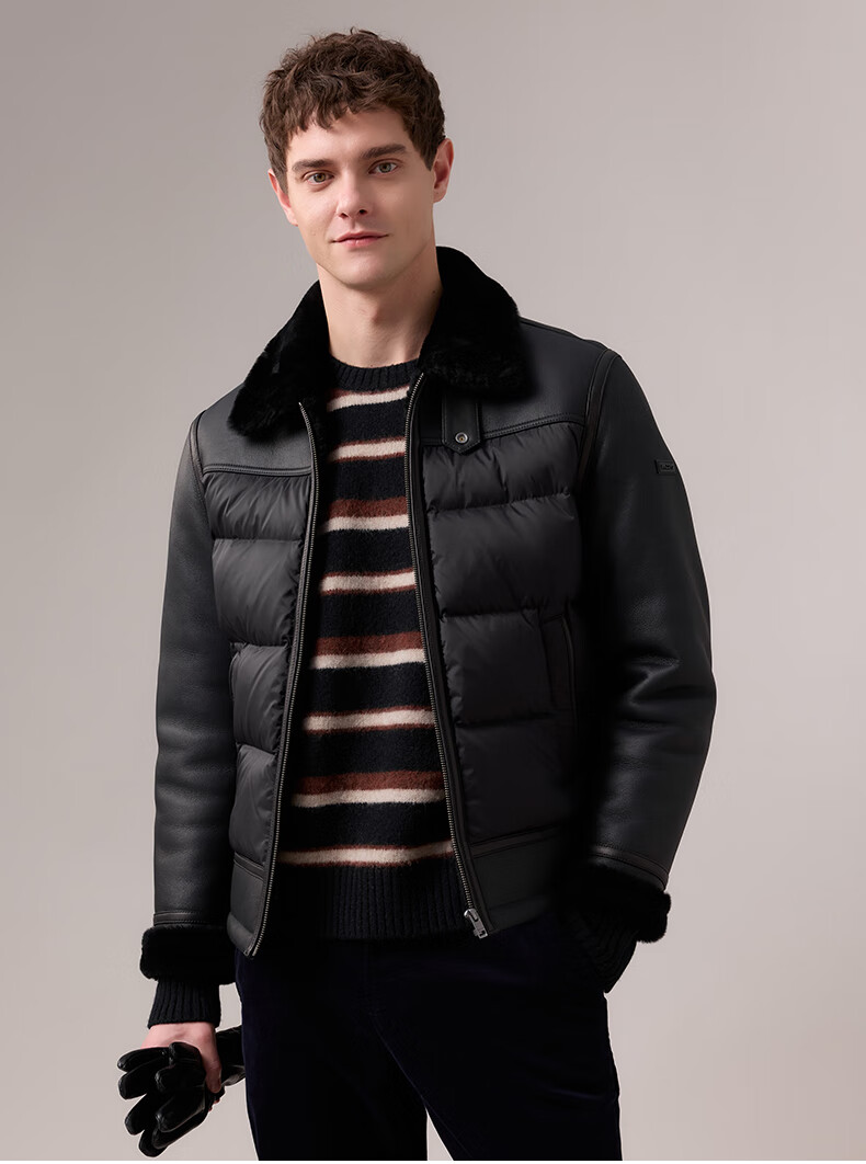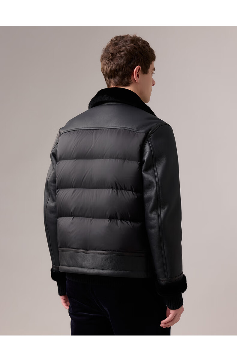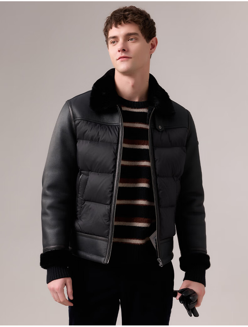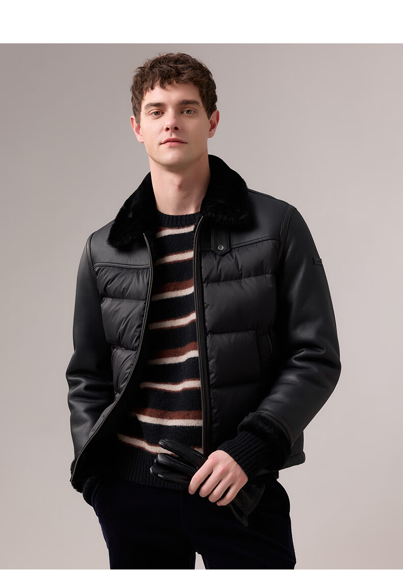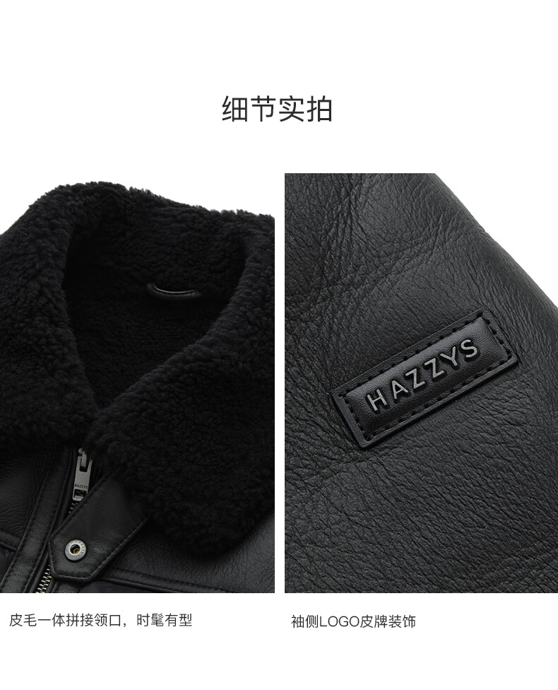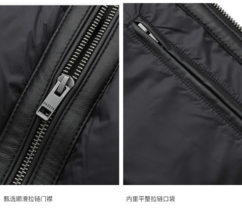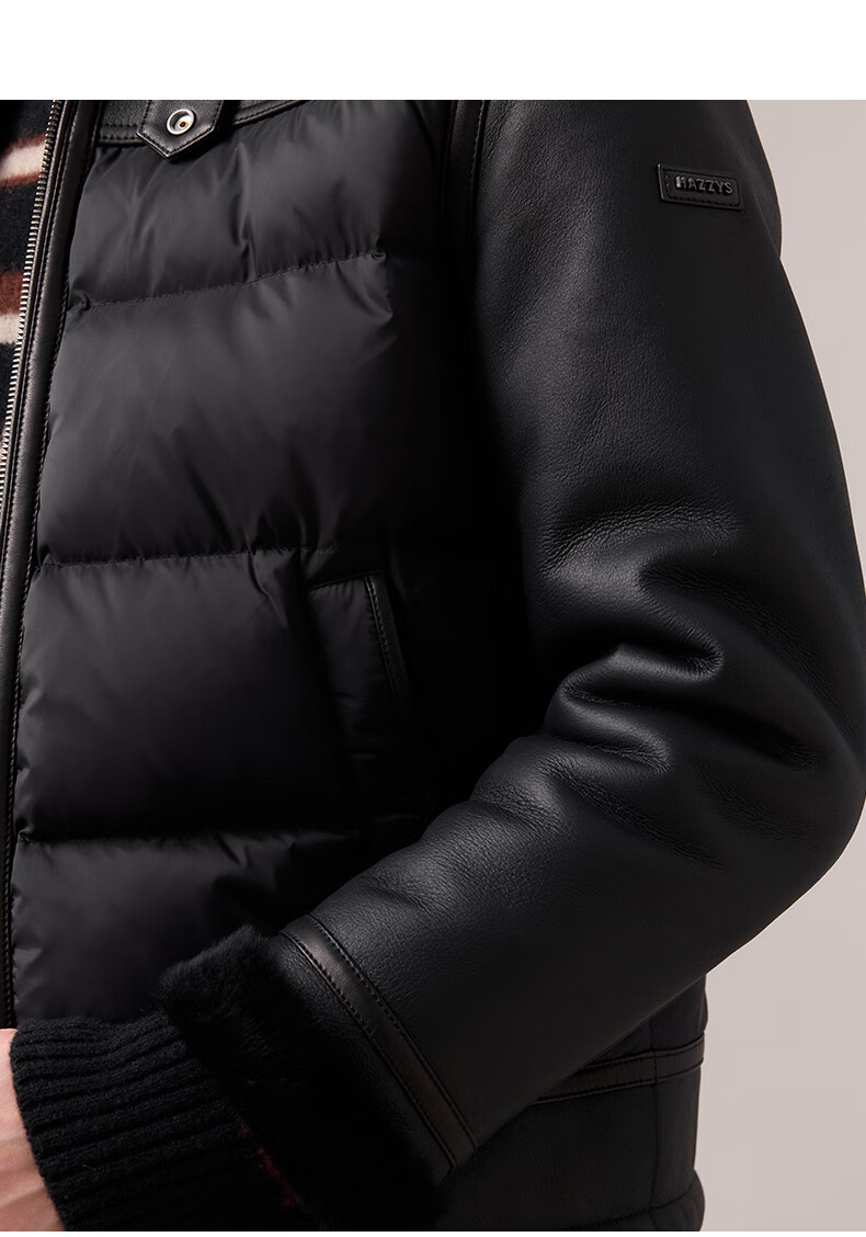 HAZZYS 2025 Autumn New Men's Lapel Leather Down Jacket Top Official Authentic Black L 175/96A 48