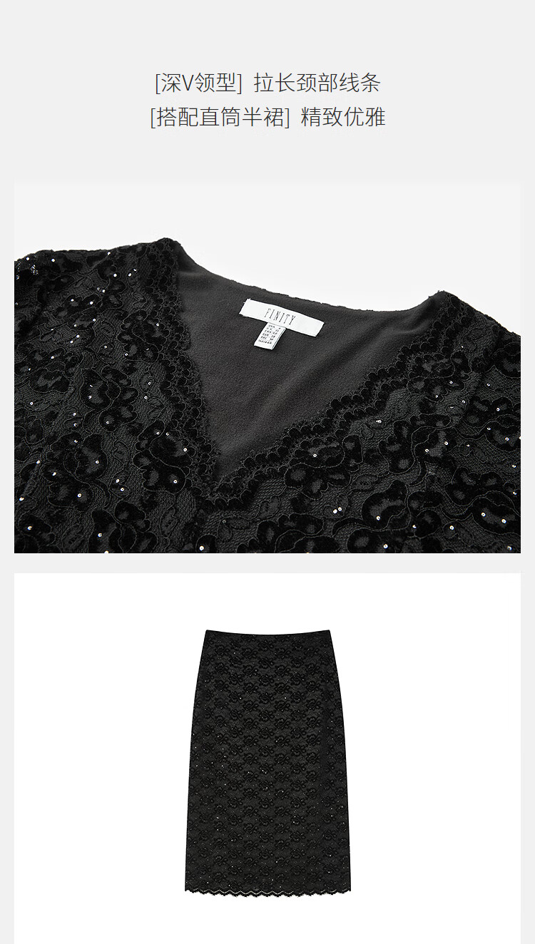 FINITY Fashion Suit 2025 Winter New Simple Elegant Deep V-Neck Temperament Two-piece Set for Women Black M