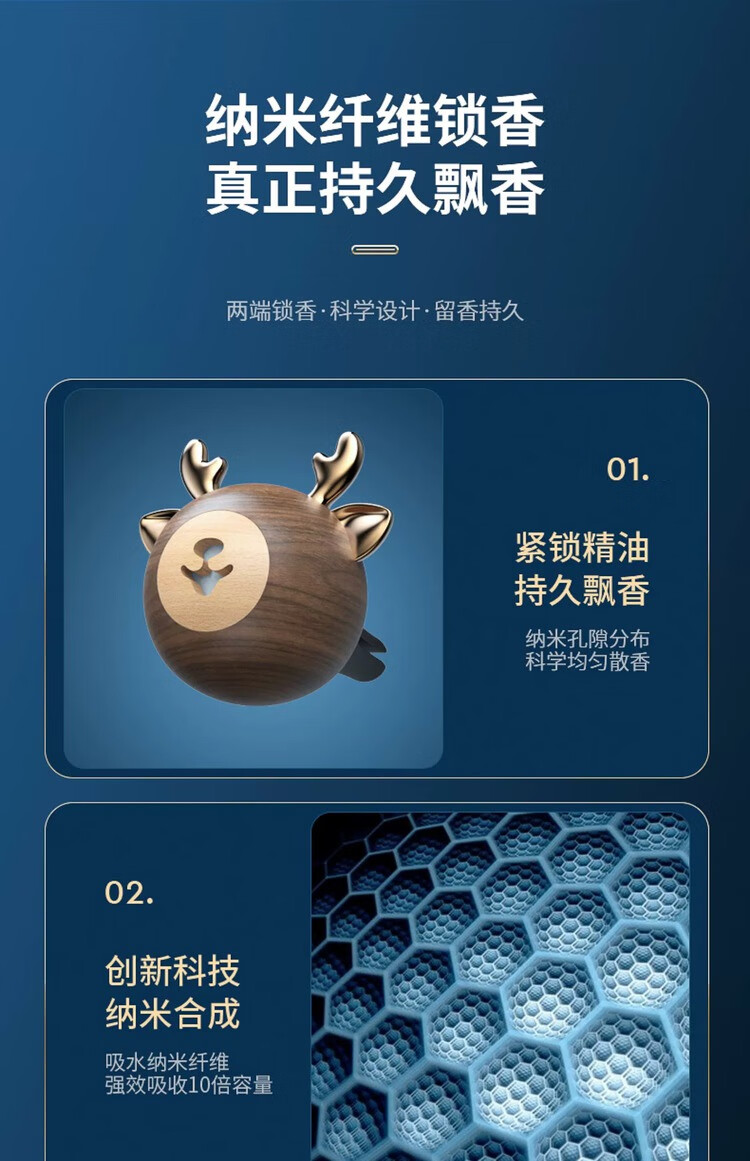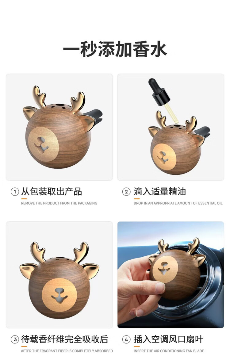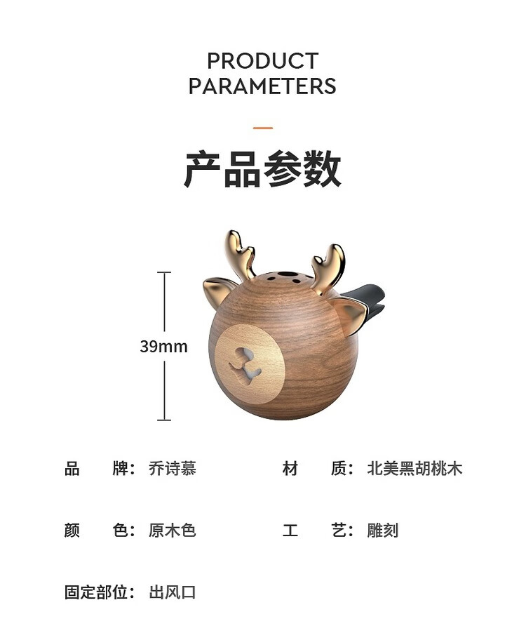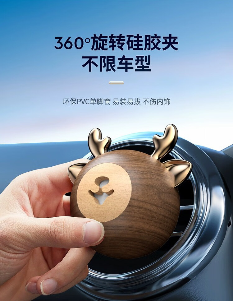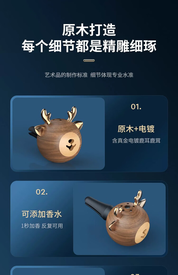 Yusenyi high-end black walnut car air conditioning outlet decoration aromatherapy car creative deer perfume ornaments car 8-Audi A6L/A7L/A8L/RS4/ Floral Fragrance