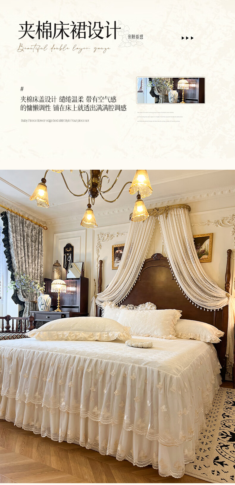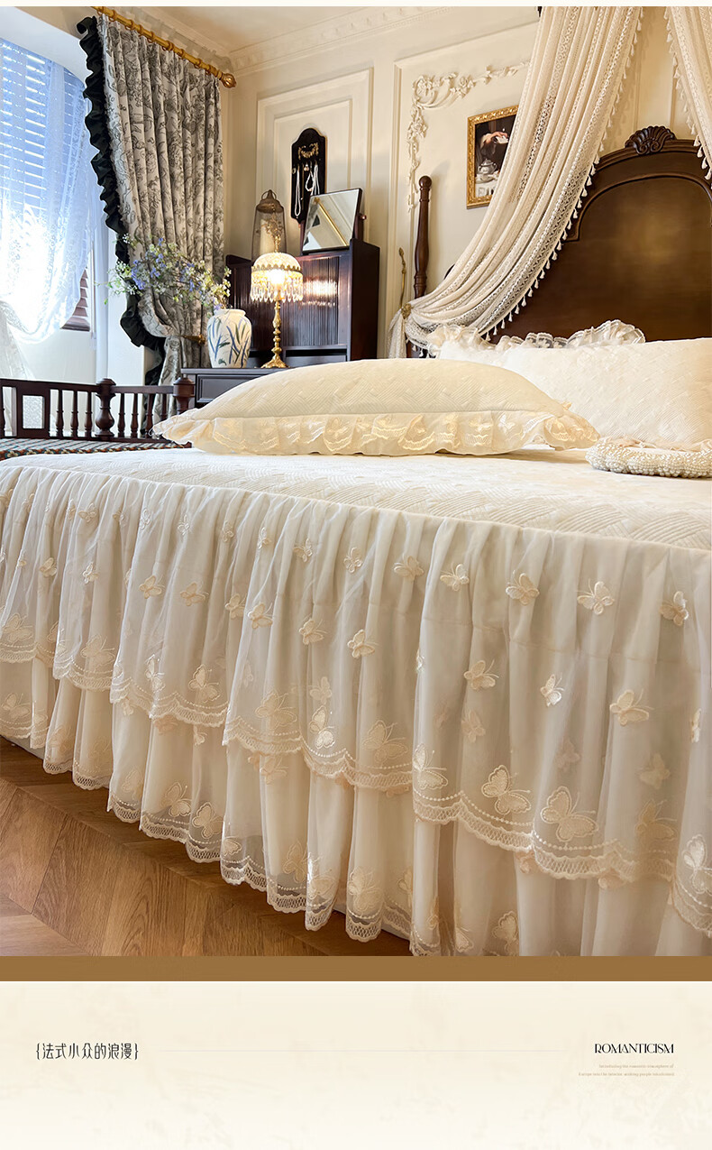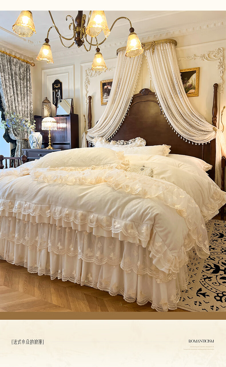Scarecrow French lace light luxury milk velvet four-piece bed skirt style winter coral velvet big red lace quilt cover bed cover Xiangshe Liying-China Red Baby Velvet Lace Padded 2m bed skirt style four-piece set-quilt cover 200*230cm