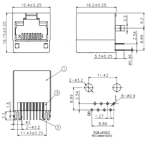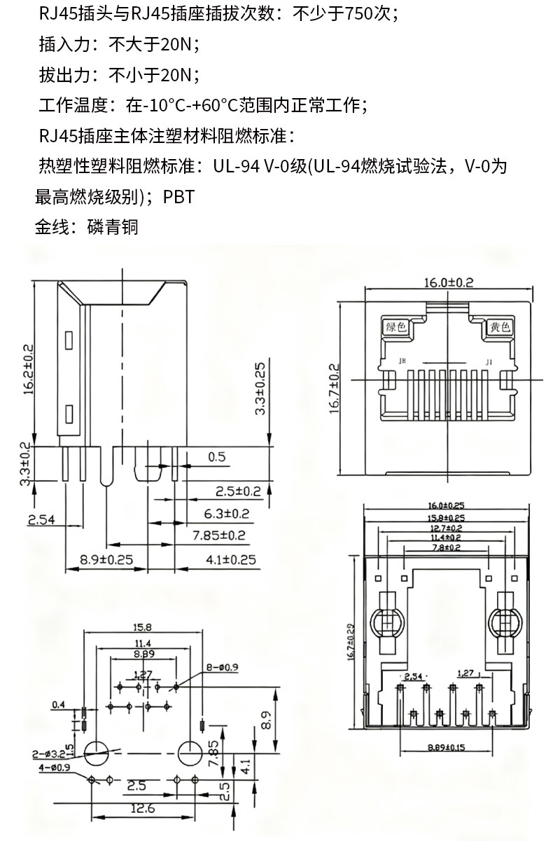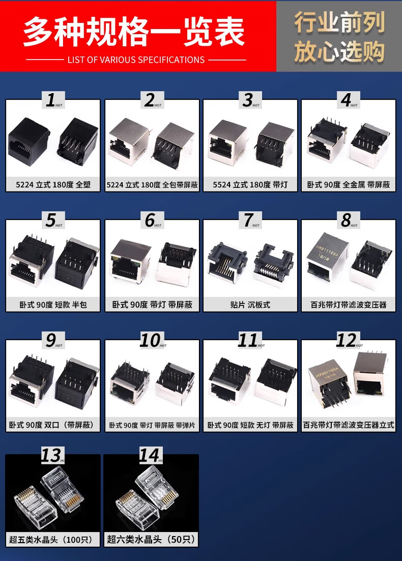 RJ45 network socket network cable 56/58/59 network port interface 8P8C crystal head base female horizontal/vertical illuminated RJ45 socket vertical illuminated rear foot with shielding 1 piece No Specifications
