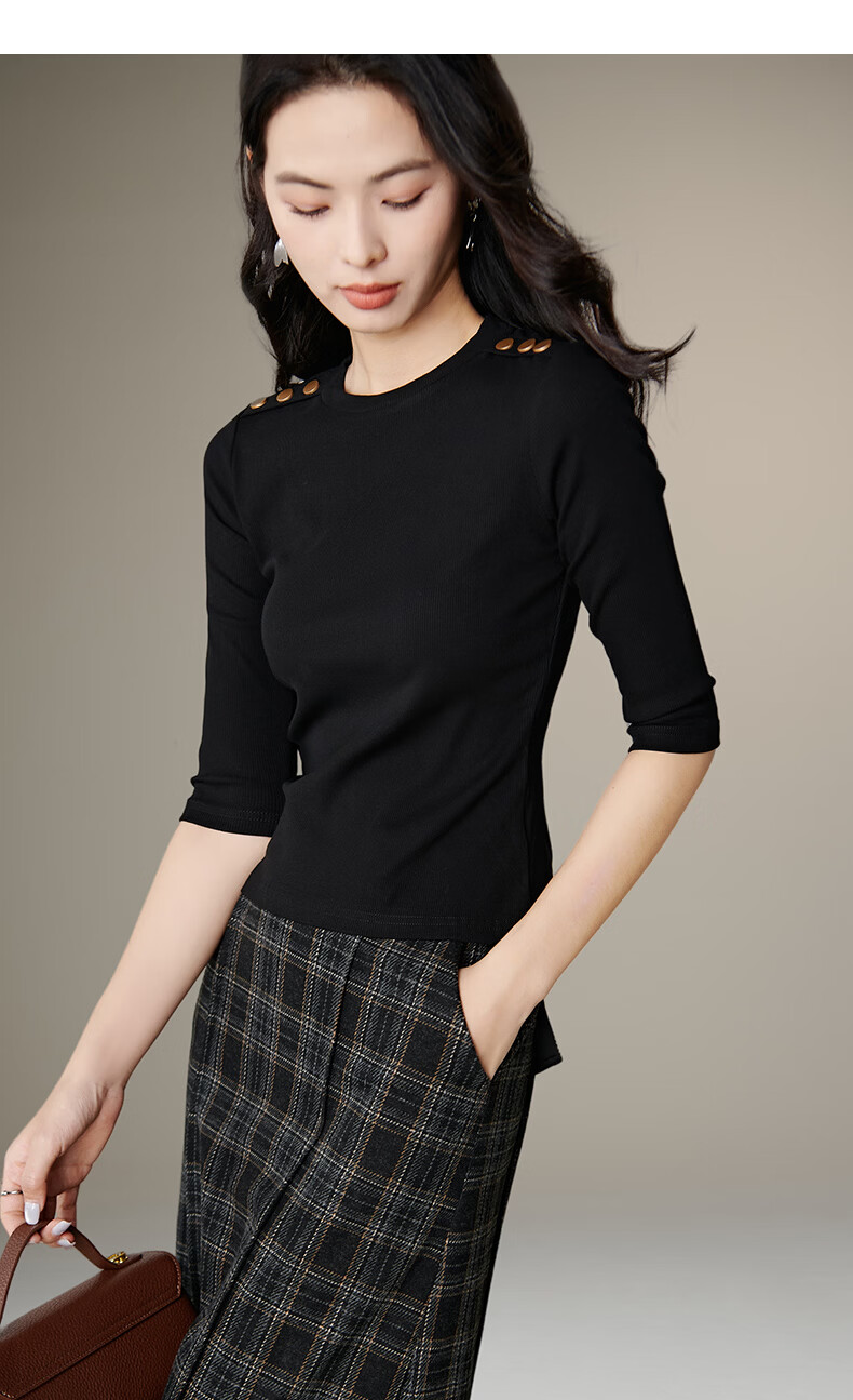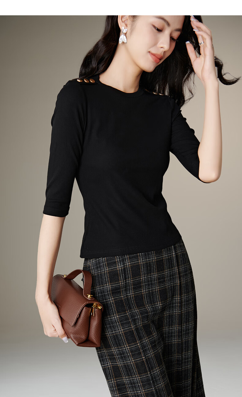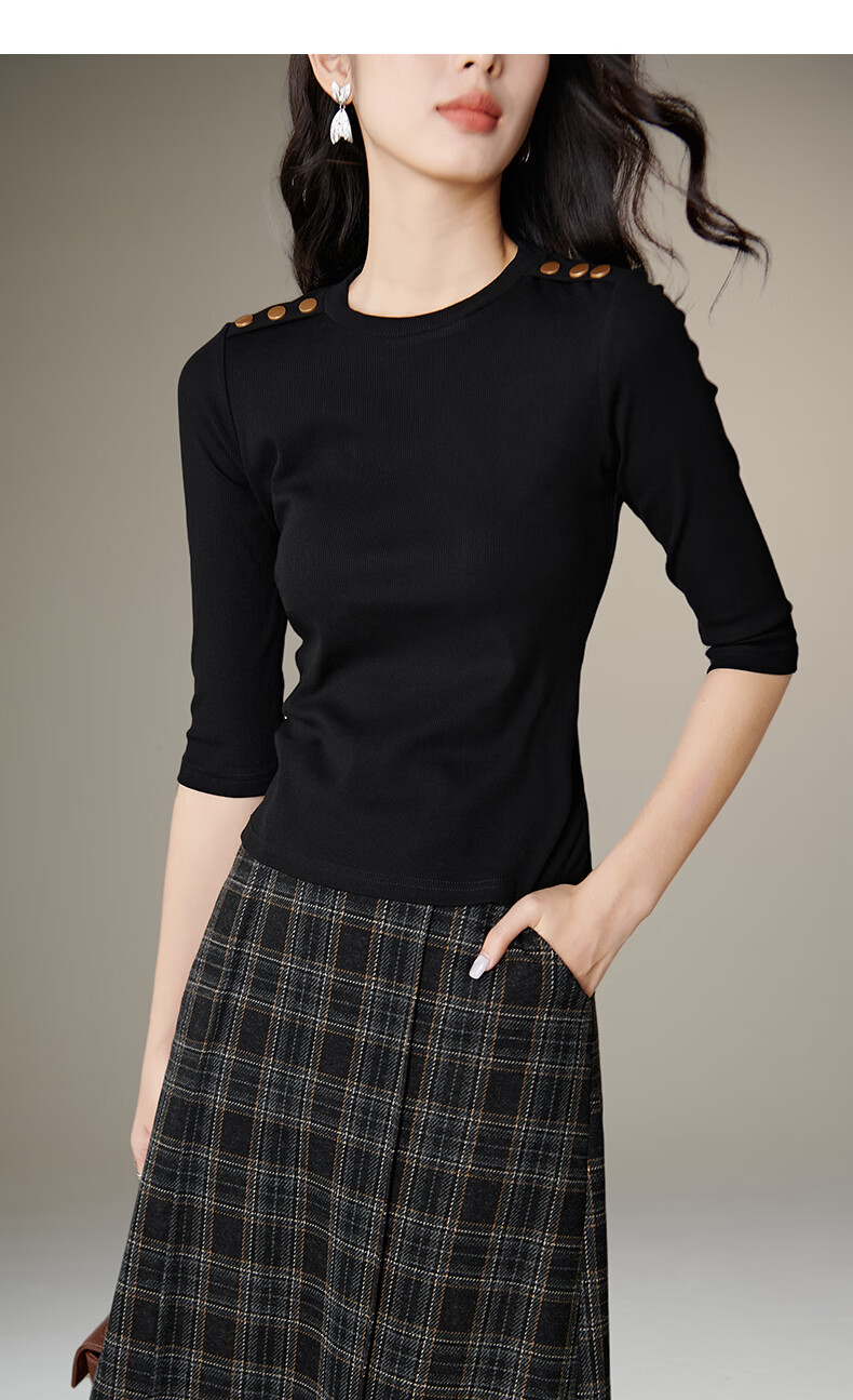 Late White New Product 2026 Spring Model Slim Fit Can be Weared Inside and Outside Tops Temperament Versatile Bottoming Shirt Women Black M