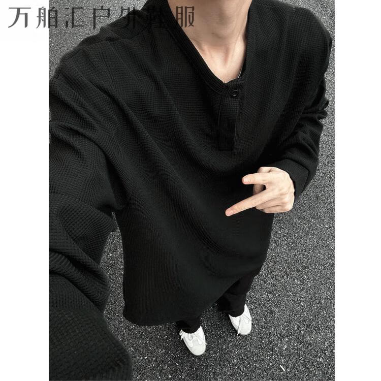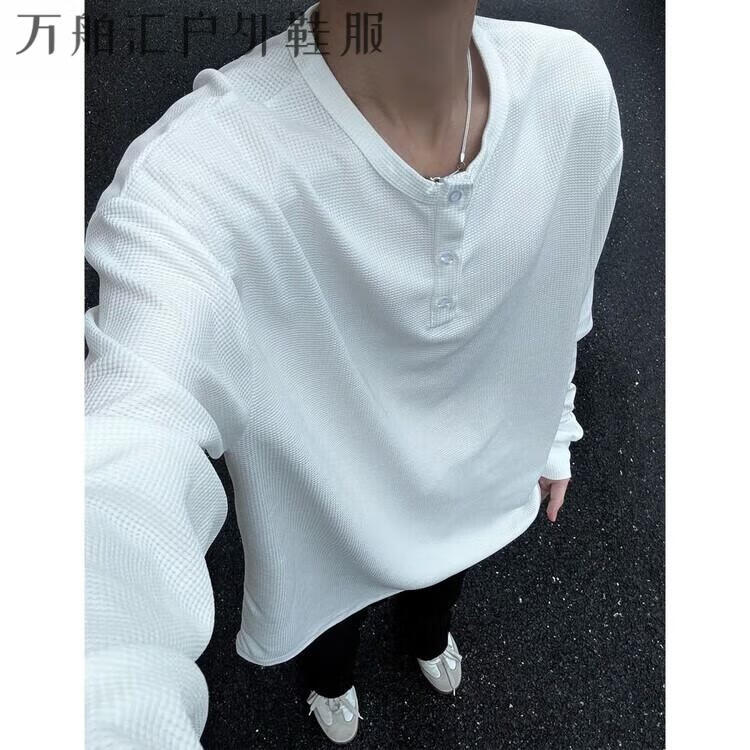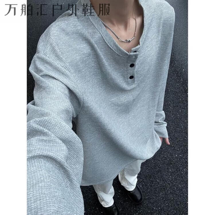 Pupan long-sleeved T-shirt men's Henry collar bottoming shirt heavy-weight long-sleeved T-shirt men's spring and autumn American street fashion brand high-end loose gray 2XL 145-165Jin Jin equals 0.5 kg