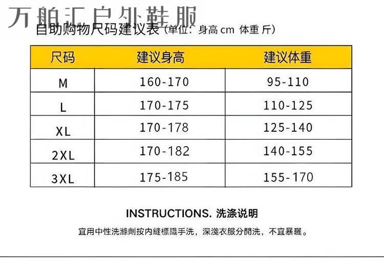 China (cm) 165 / 88-90 170 / 96-98 175 / 108-110 180 / 118-122 185 / 126-130