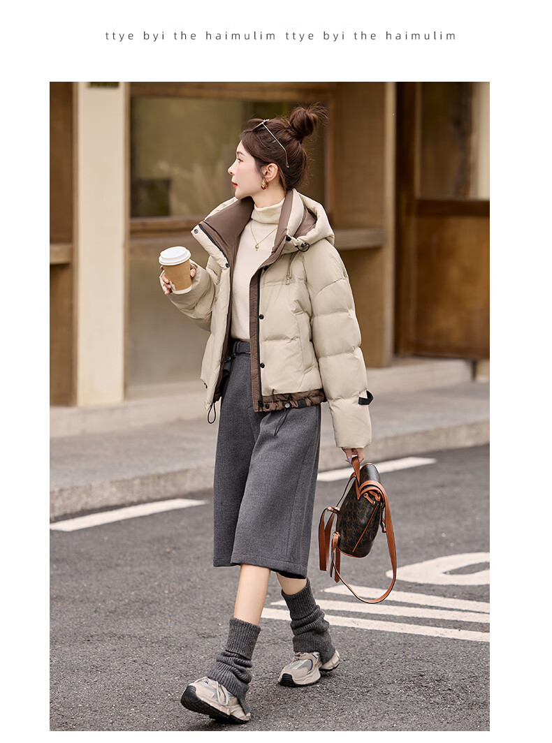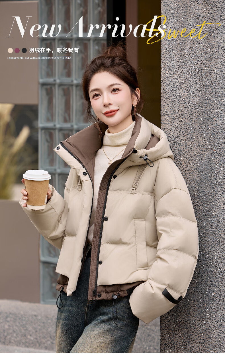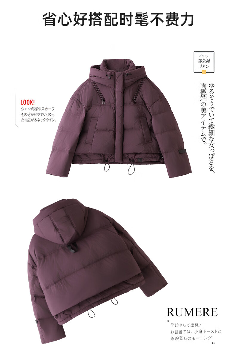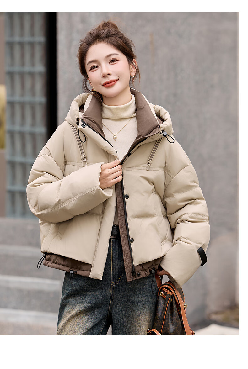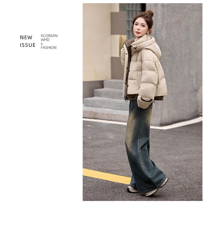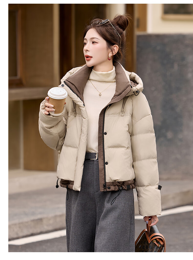 ROMON down jacket women's short 2025 winter new style small high-end fashion foreign style age-reducing slimming white duck down jacket off-white M