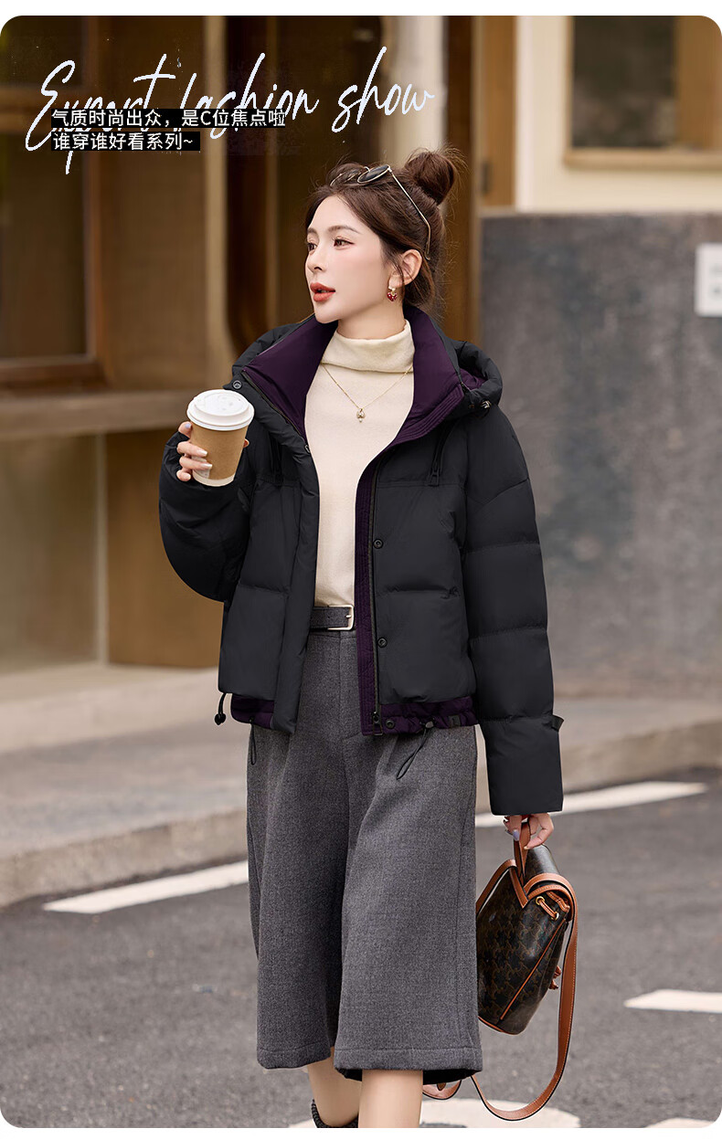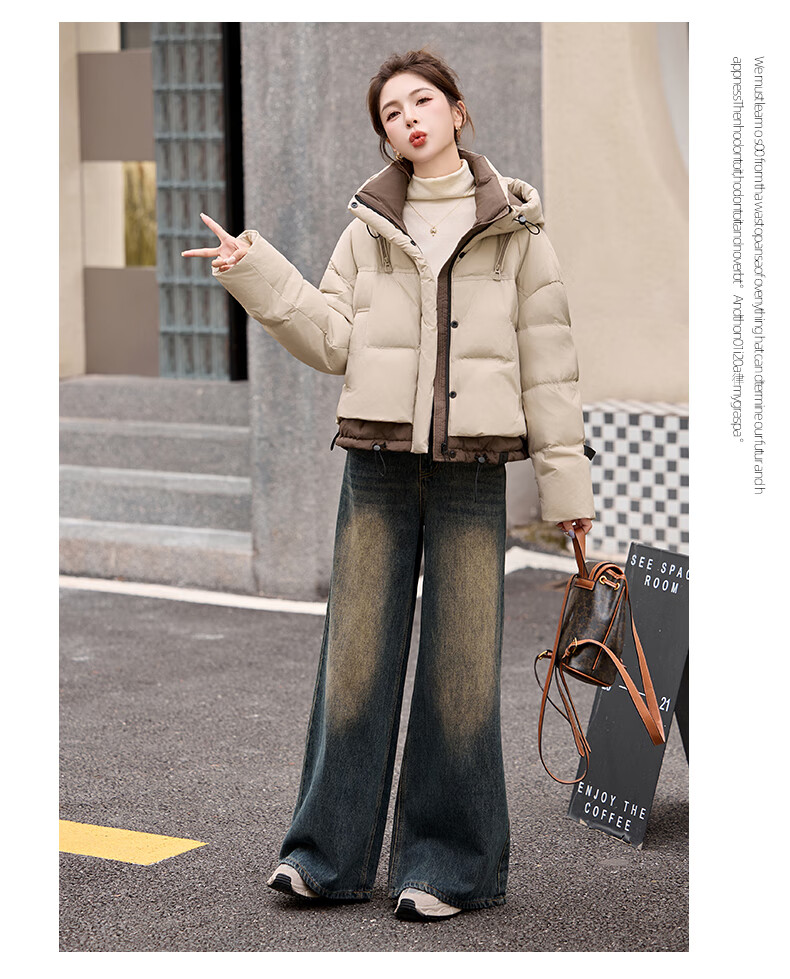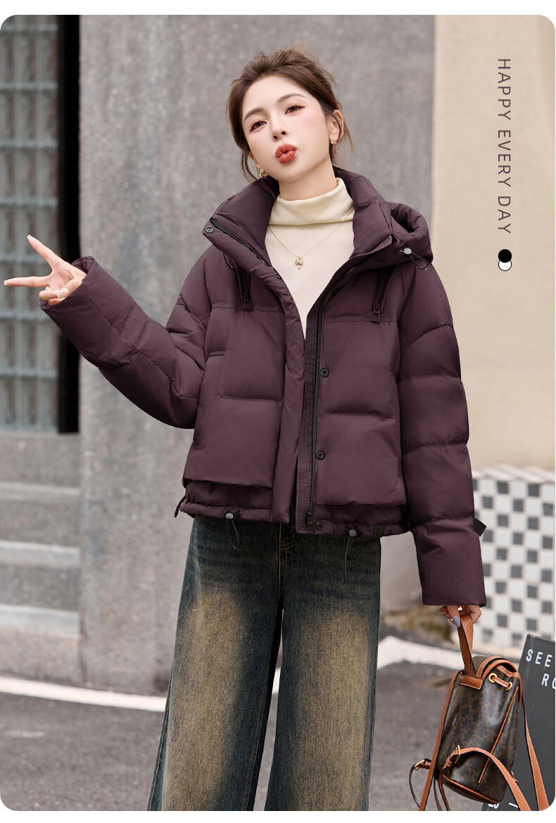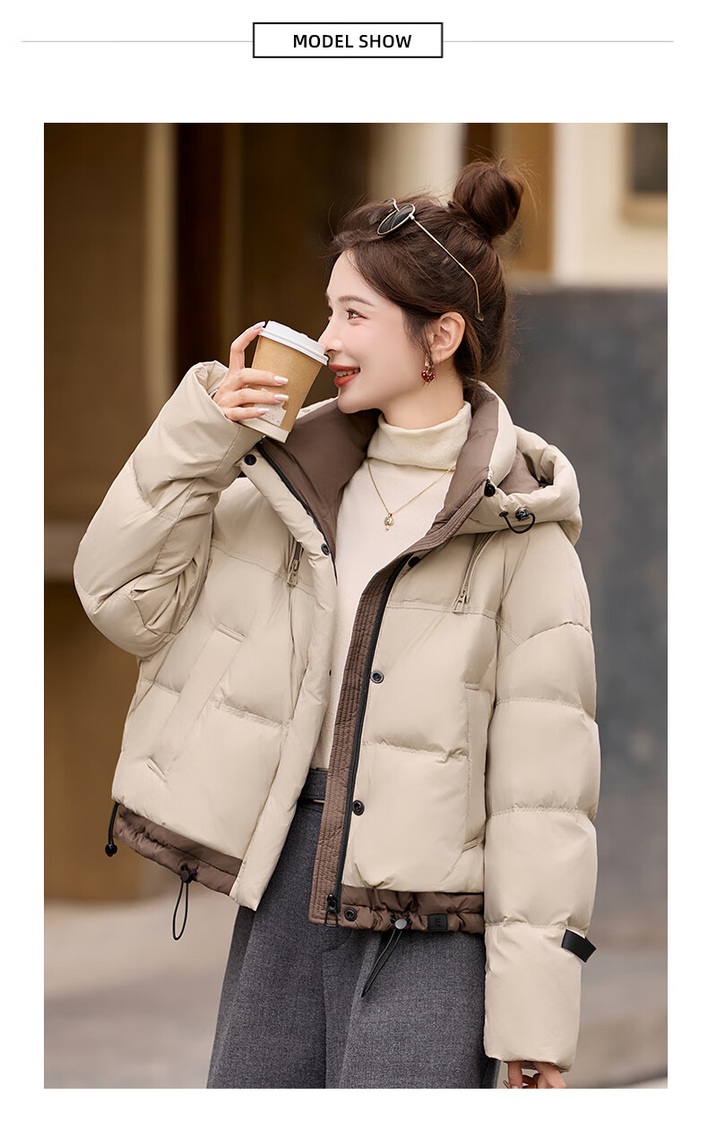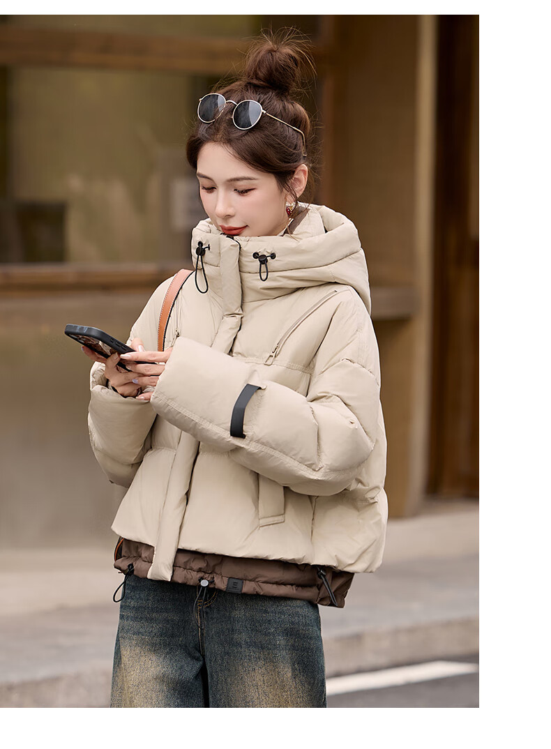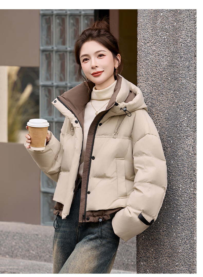 ROMON down jacket women's short 2025 winter new style small high-end fashion foreign style age-reducing slimming white duck down jacket off-white M