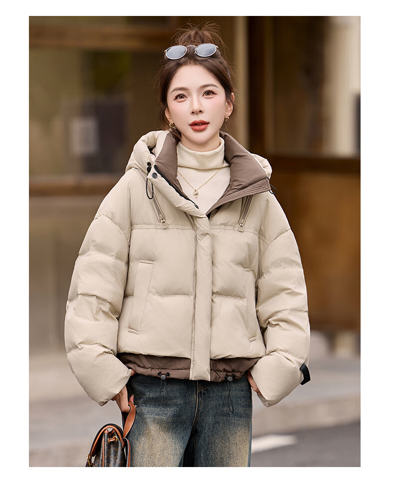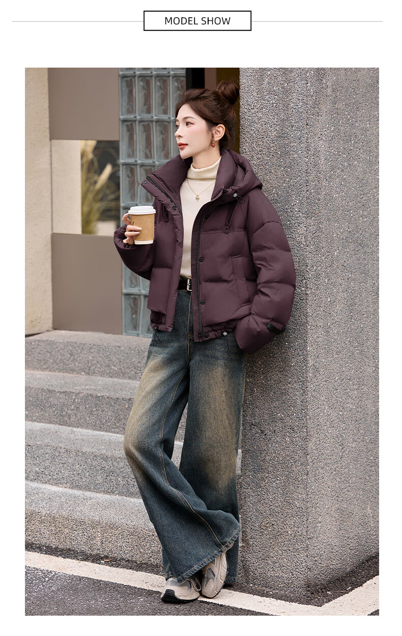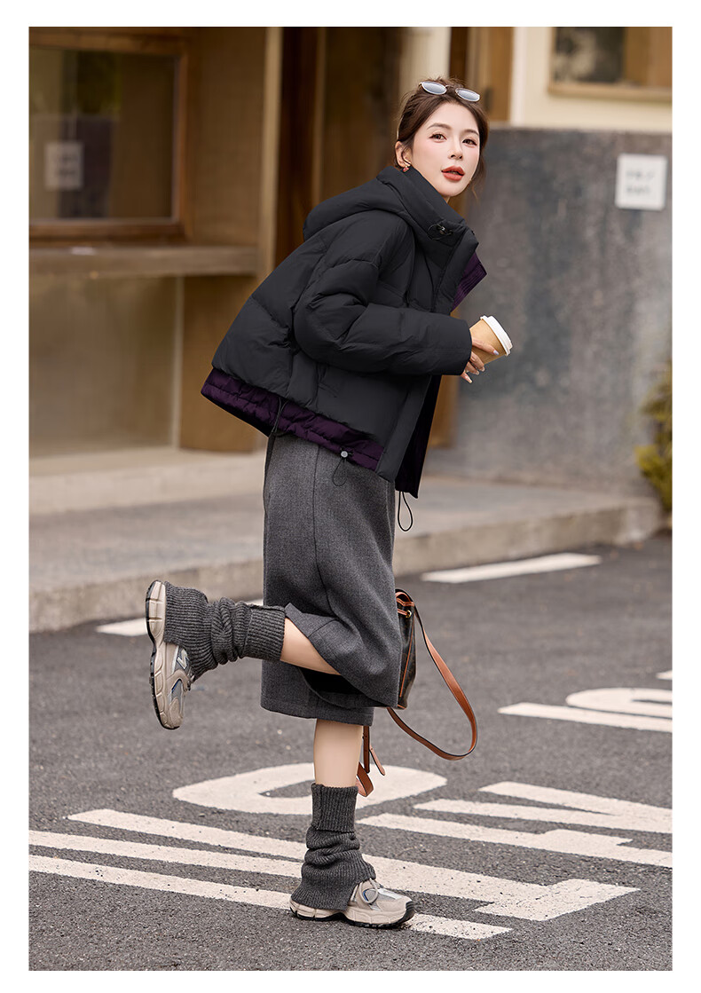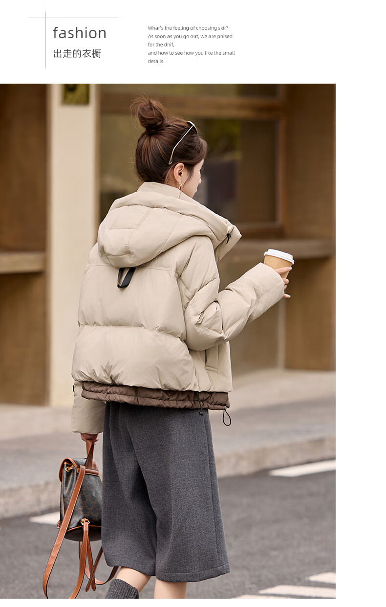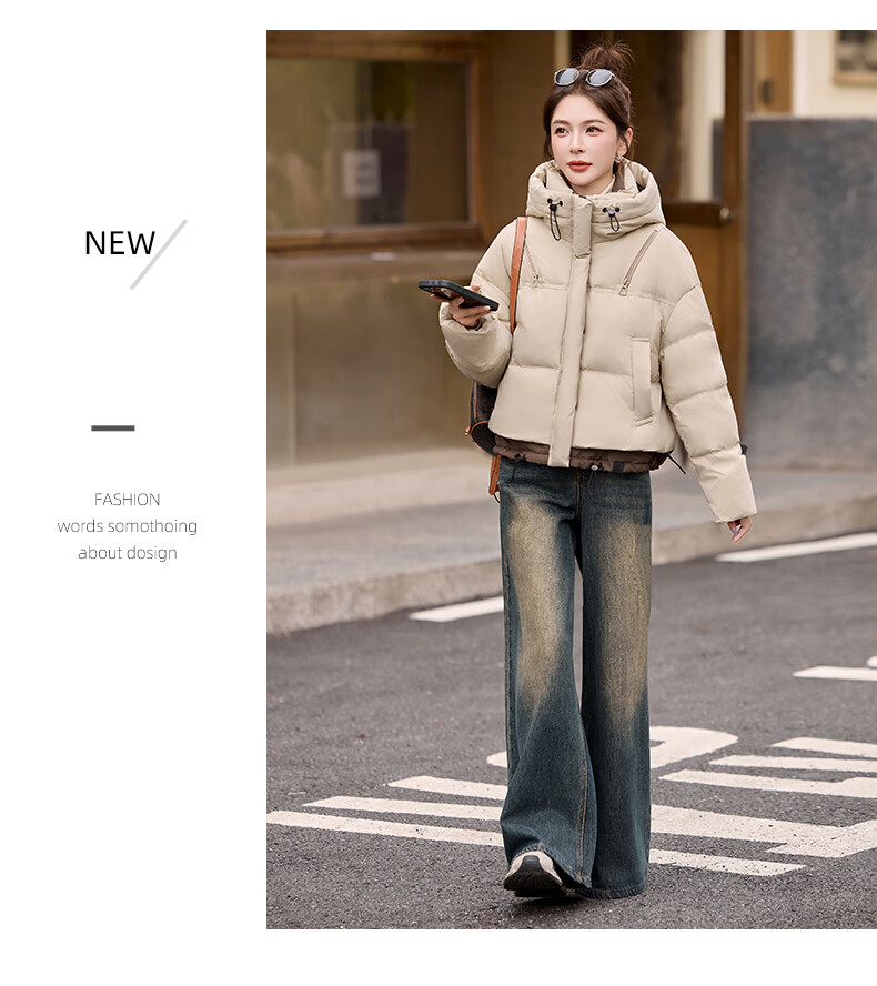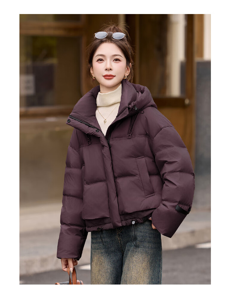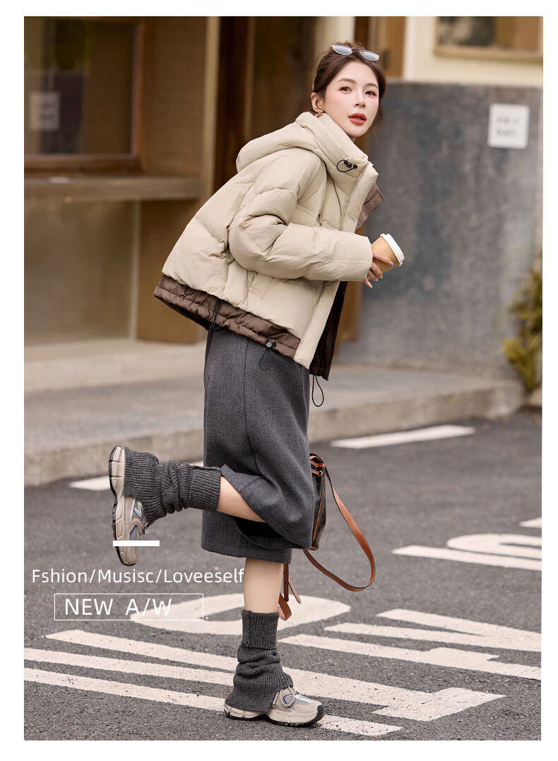 ROMON down jacket women's short 2025 winter new style small high-end fashion foreign style age-reducing slimming white duck down jacket off-white M