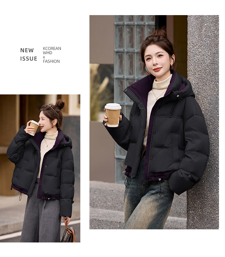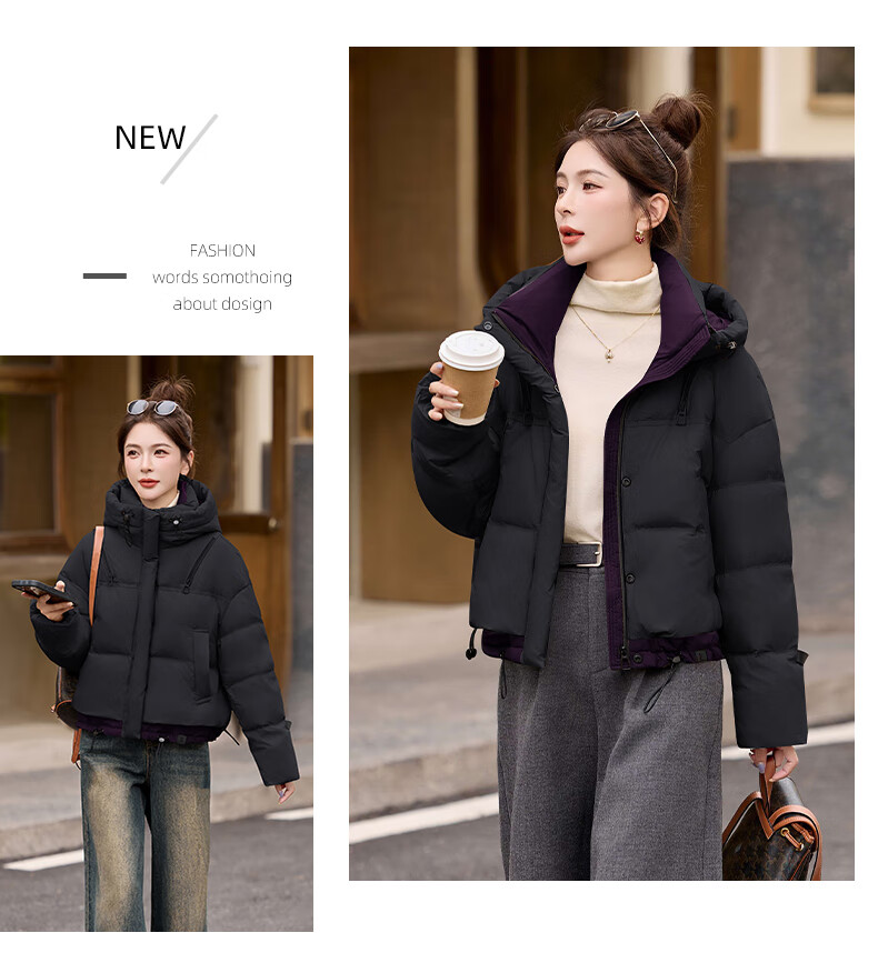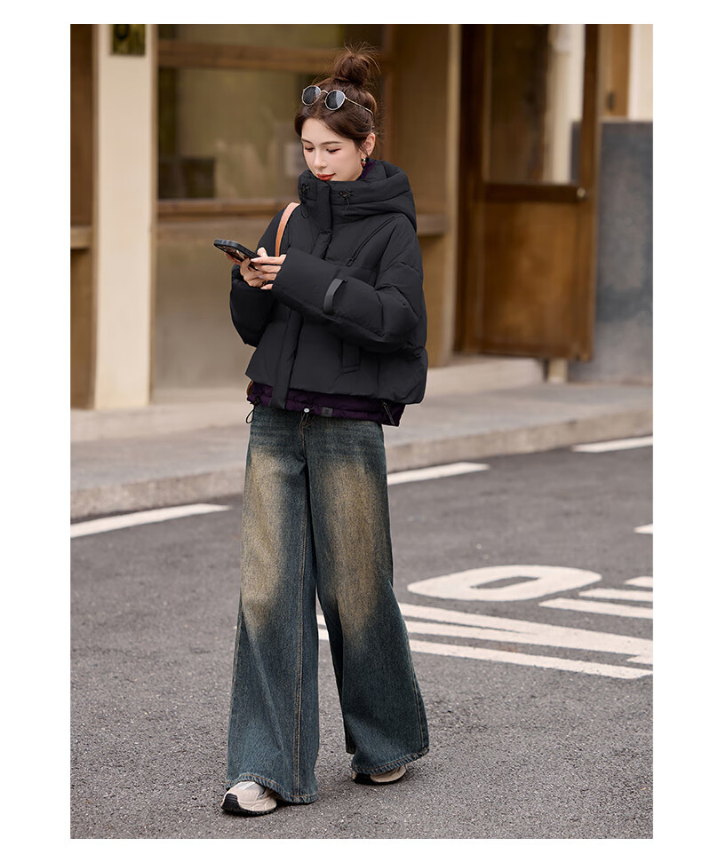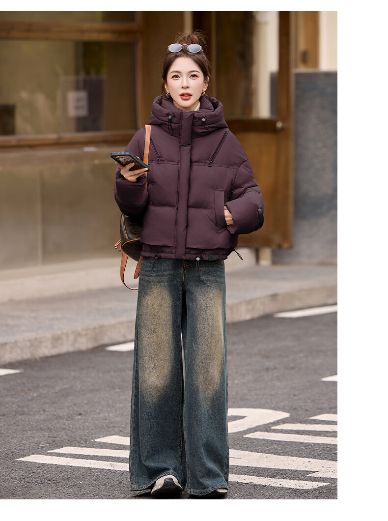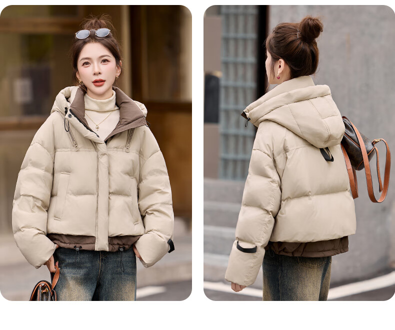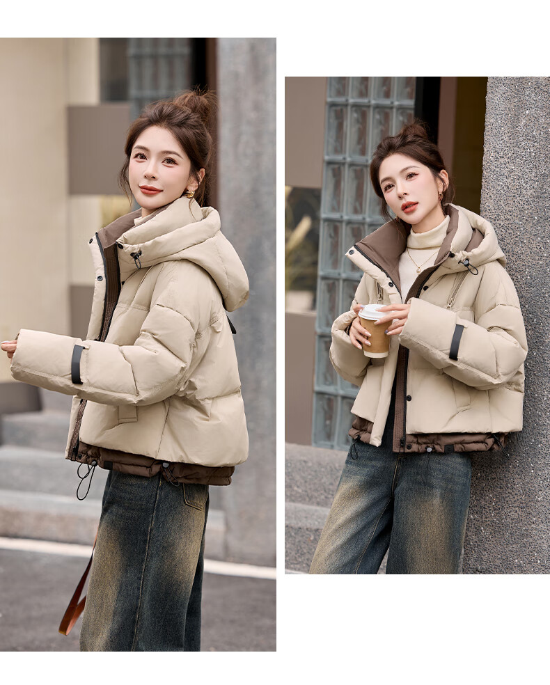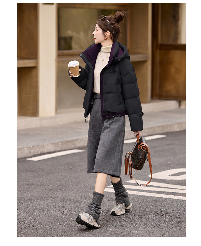 ROMON down jacket women's short 2025 winter new style small high-end fashion foreign style age-reducing slimming white duck down jacket off-white M