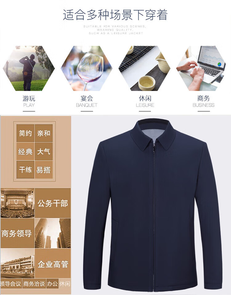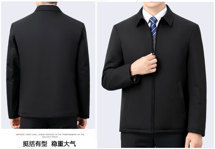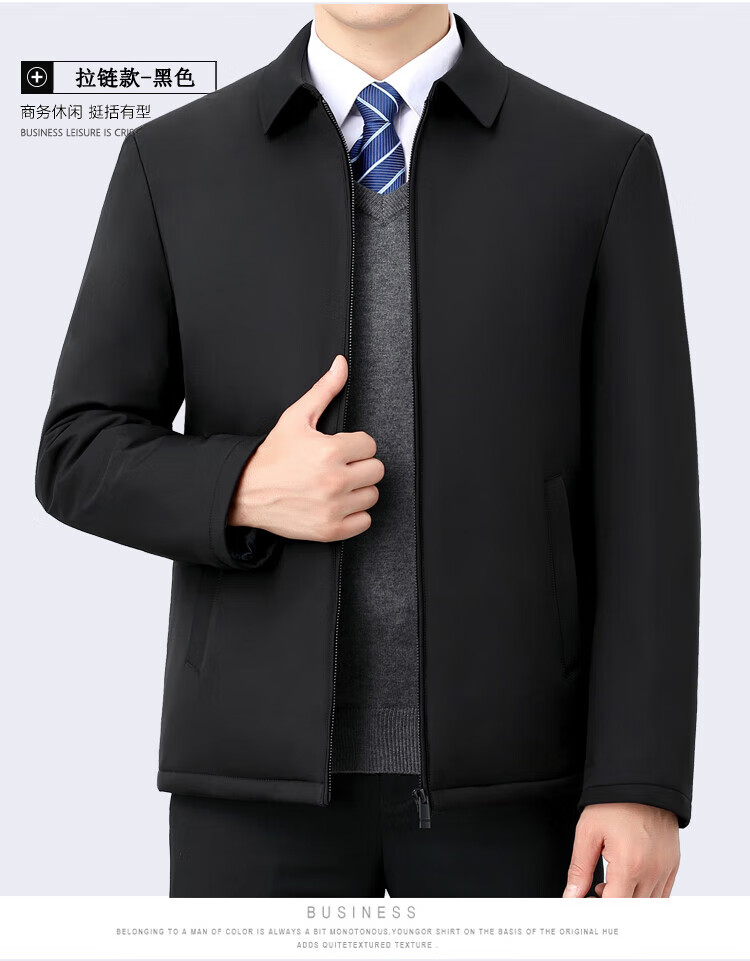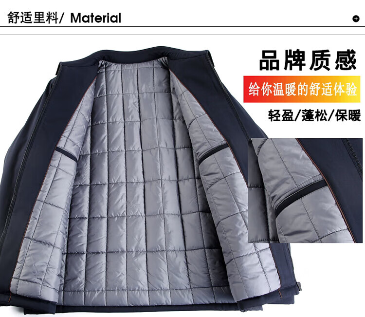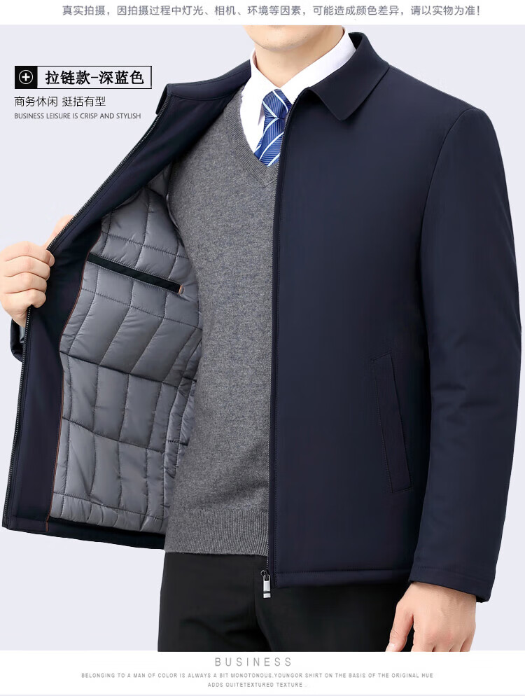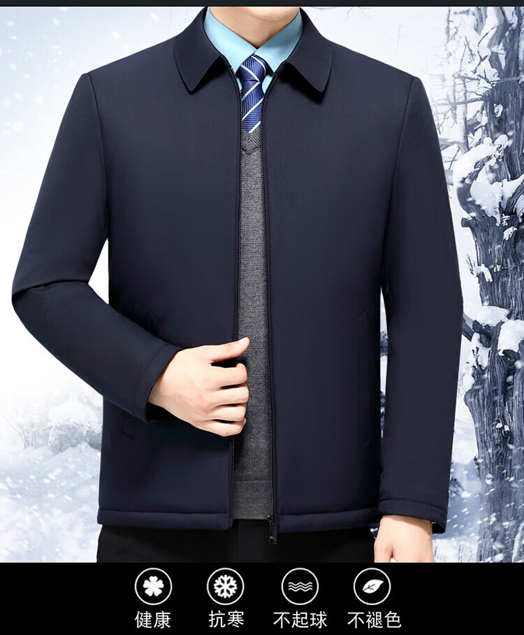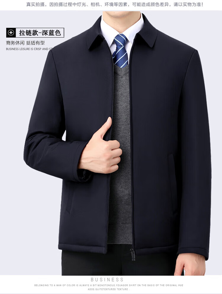 Middle-aged men's cotton-padded jackets, middle-aged dad's clothes, autumn and winter thickened administrative jackets, thin cotton-padded jackets, zipper style, navy blue/cotton 2XL Recommended weight 130 Jin Jin equals 0.5 kg -150 Jin Jin equals 0.5 kg
