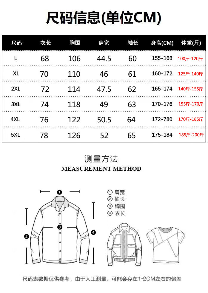 China (cm) 165 / 88-90 170 / 96-98 175 / 108-110 180 / 118-122 185 / 126-130