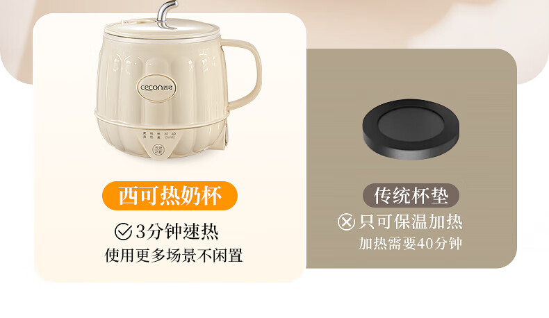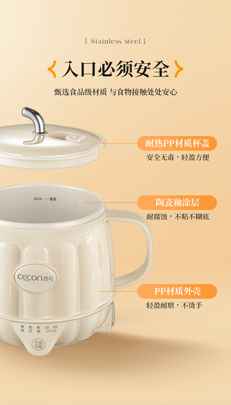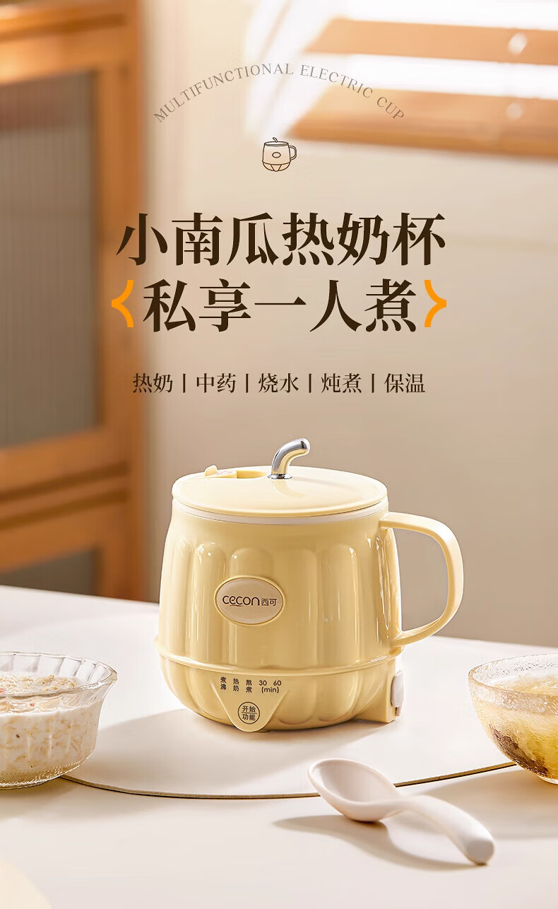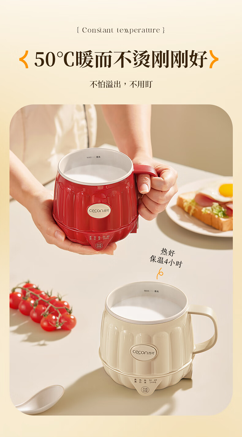Japan's MUJU hot milk cup, home health cup, electric stew cup, multi-function boiling cup, office constant temperature milk cup, cream white upgraded digital display model, with tea leakage storage bag 0.9L